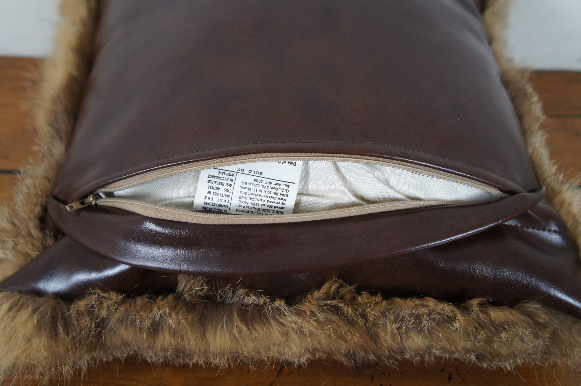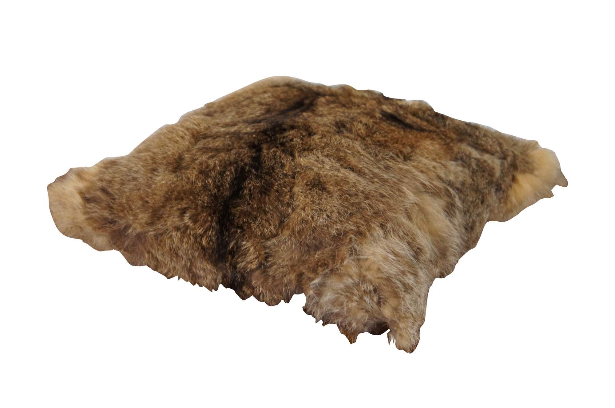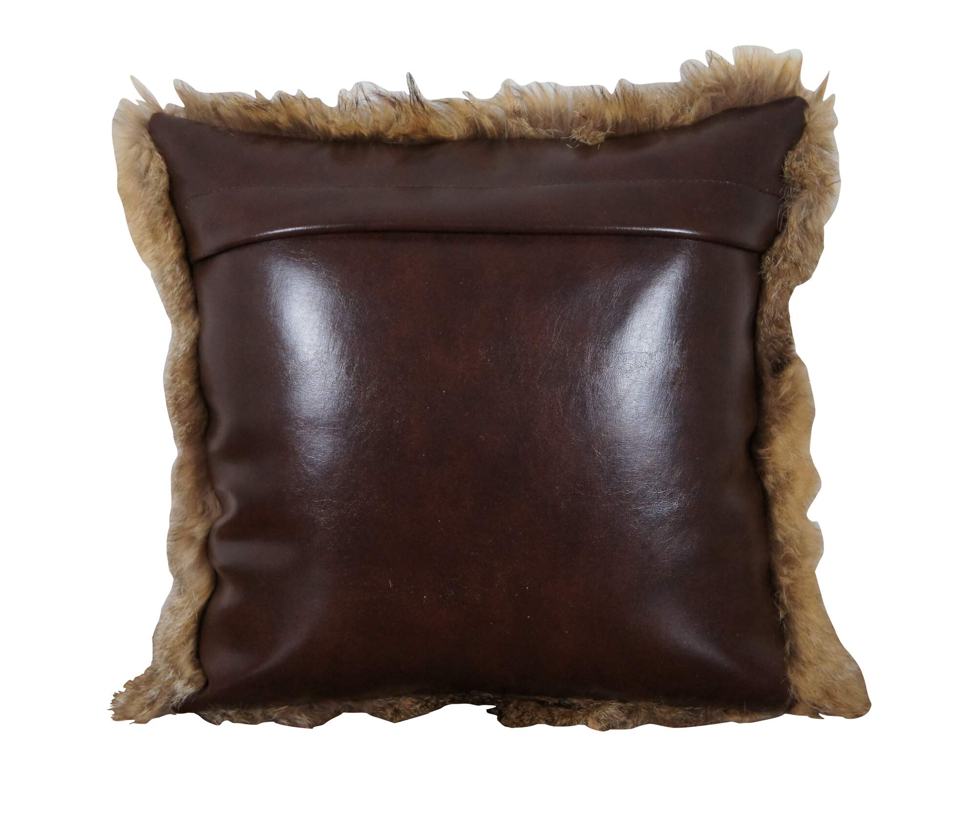 Vintage real coyote fur / pelt throw pillow in shades of light brown with streaks of black, backed with mahogany brown leather. Kapok filled pillow form.