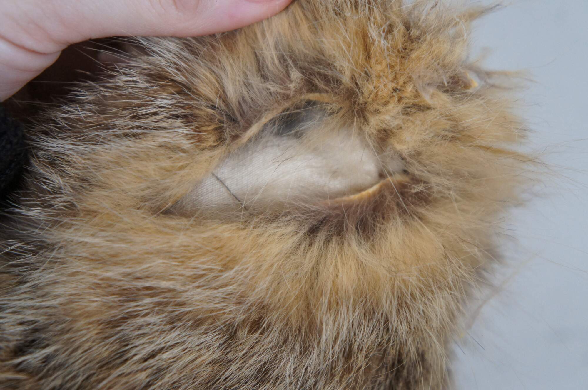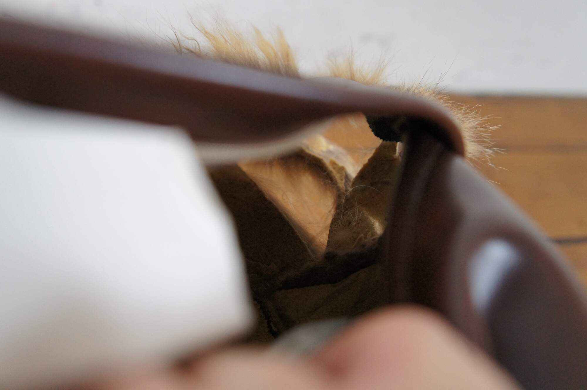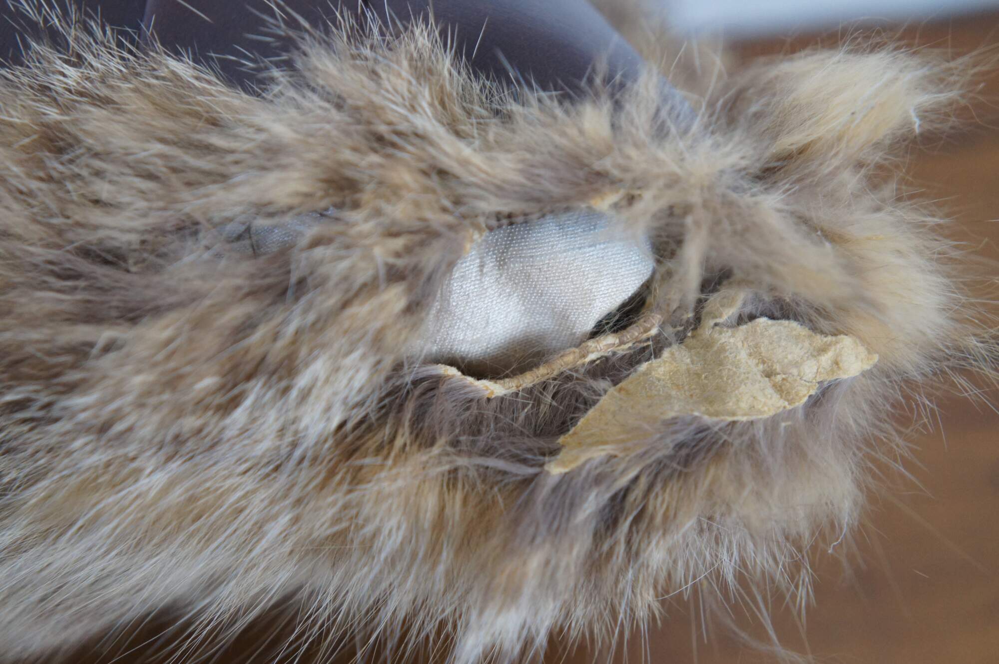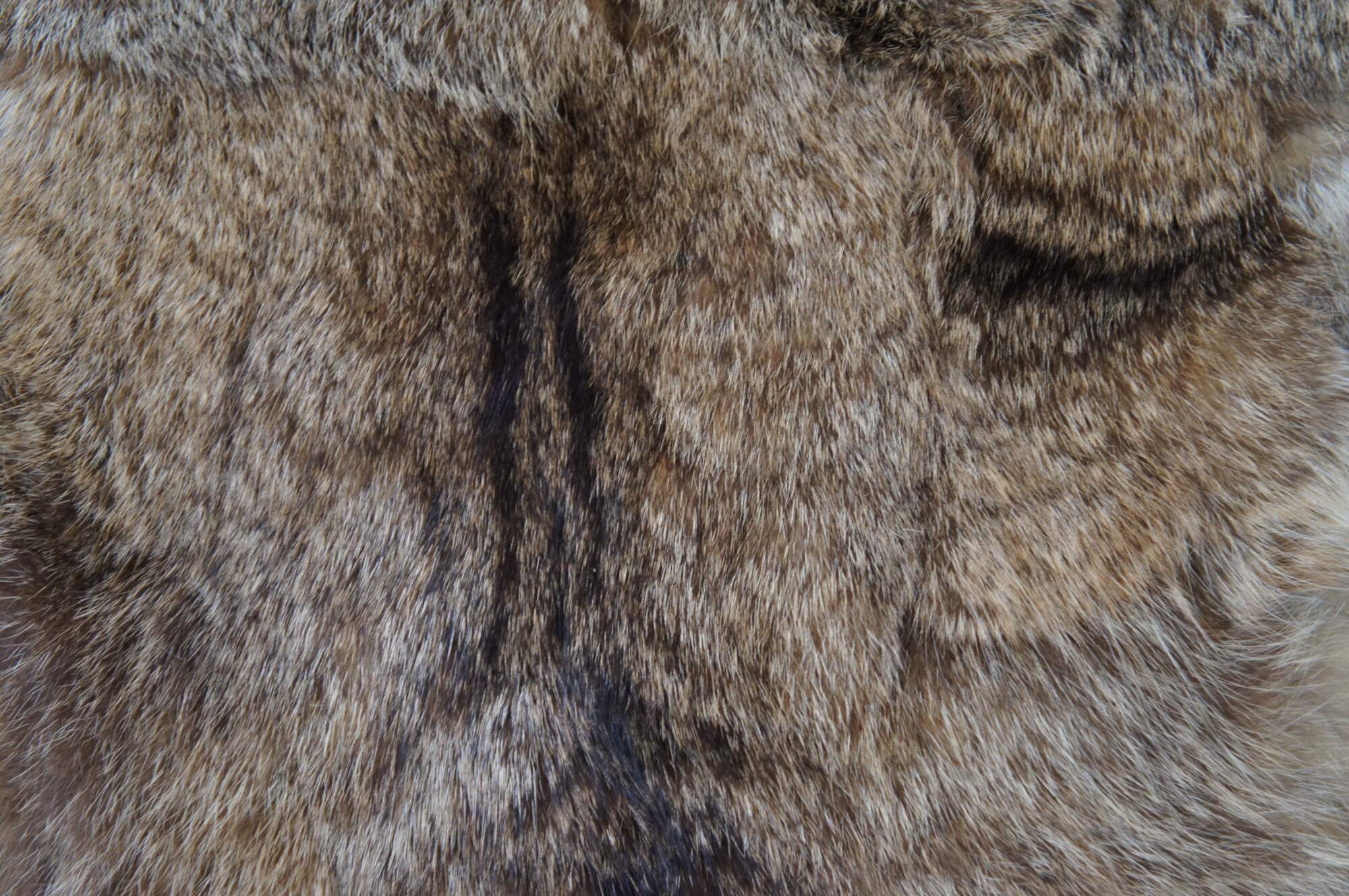 Vintage real coyote fur / pelt throw pillow in shades of light brown with streaks of black, backed with mahogany brown leather. Kapok filled pillow form.