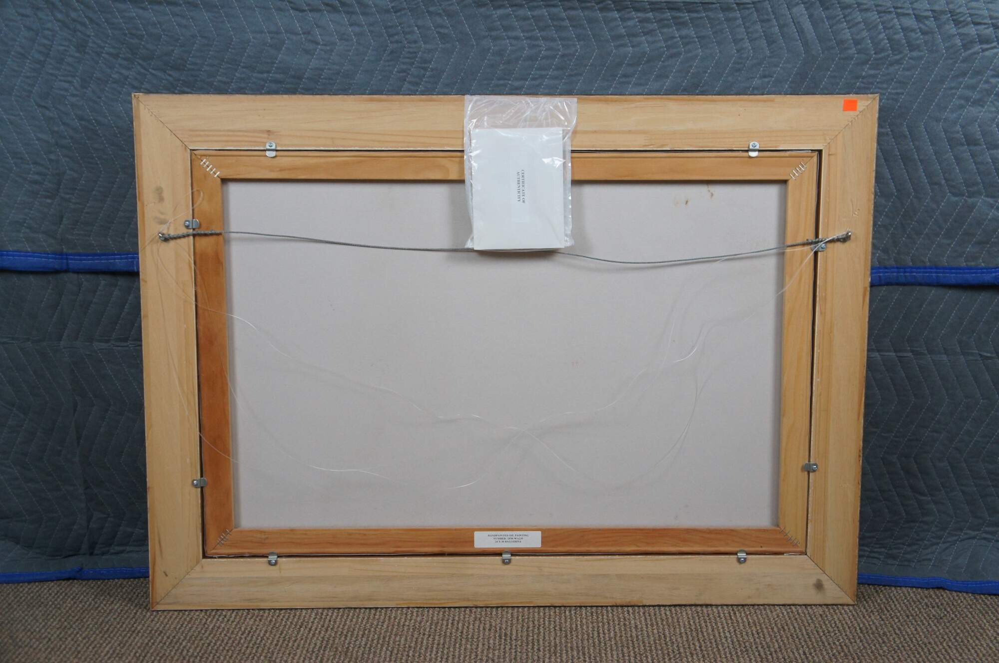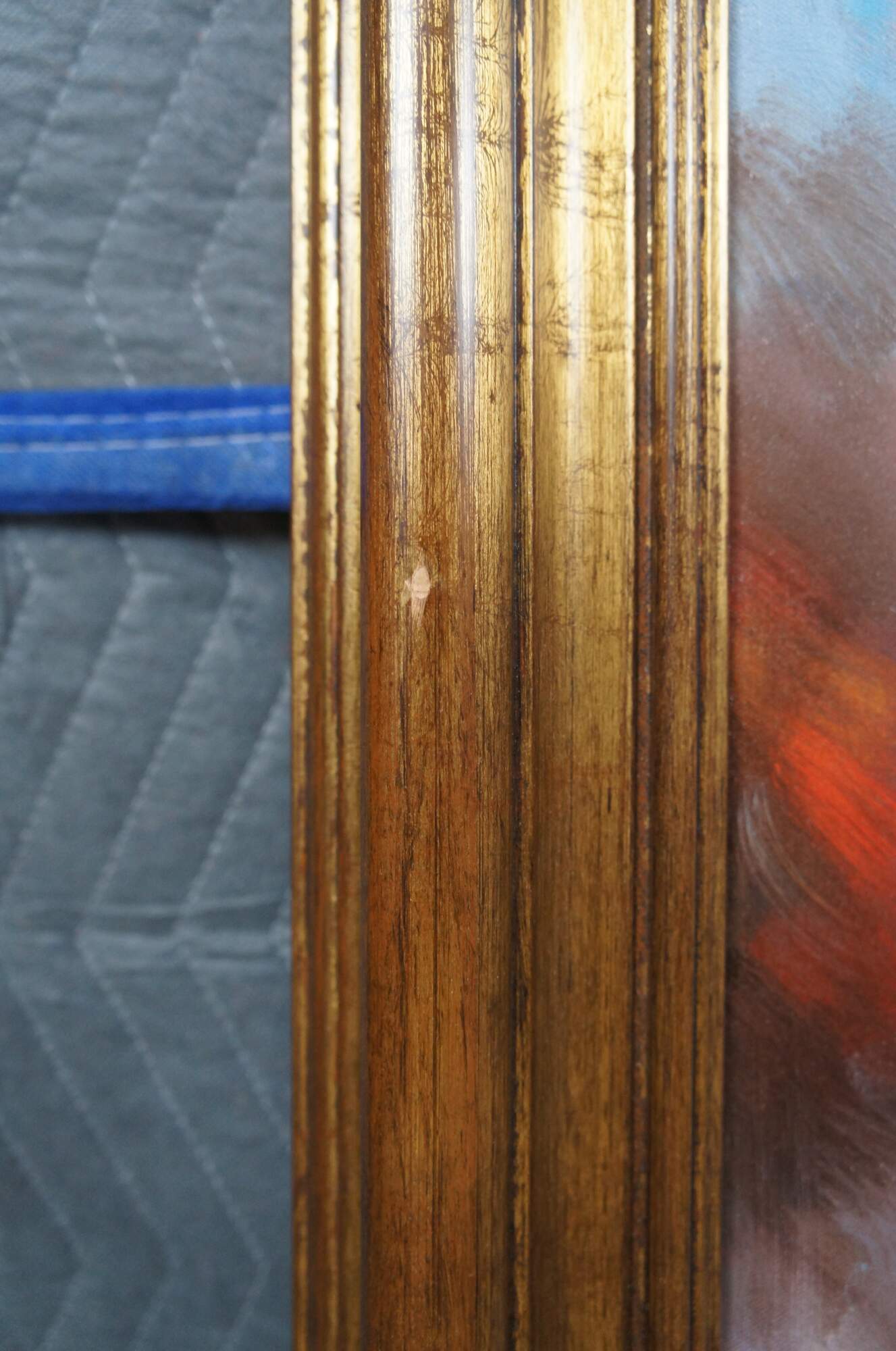 Very Good; Gently Used. Darkish color vertical mark on canvas between the top of her arm and lower leg