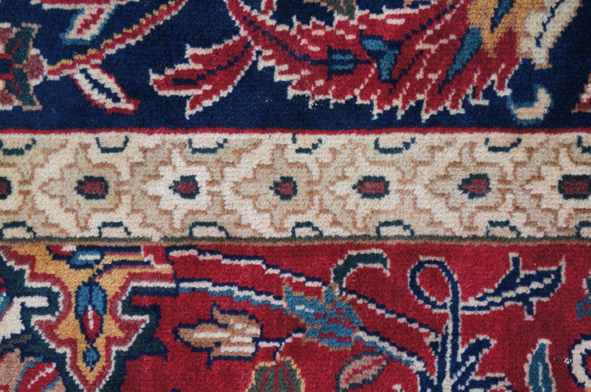 Genuine Hand woven Indian Agra Jaipur design area rug. Made from 100% wool with a field of red and blue. MSRP $9480