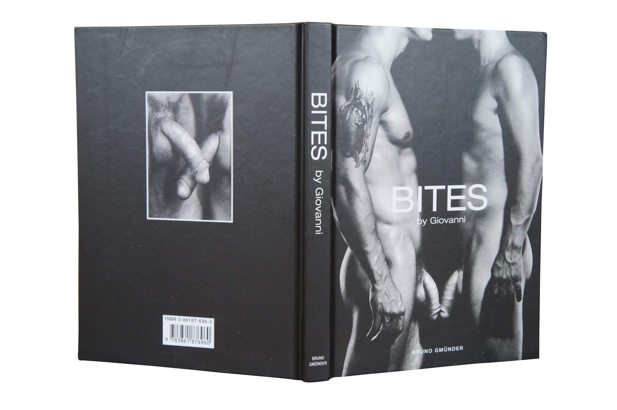 Hard cover art photography / male pornography book “Bites” by Giovanni – Edited & Design by Claus Kiessling – Cover Design by Dolph Caesar - Published by Bruno Gmunder 2005 – Printed in Italy - ISBN: 3-86187-696-5.