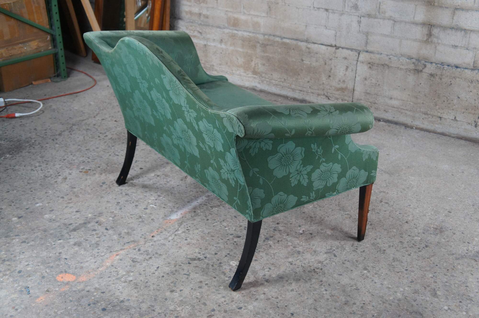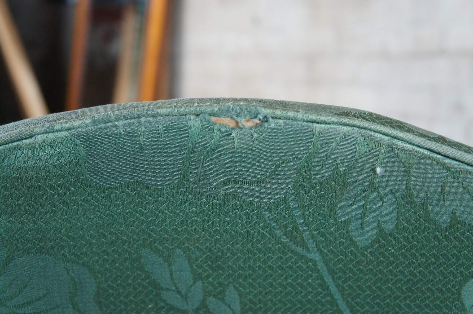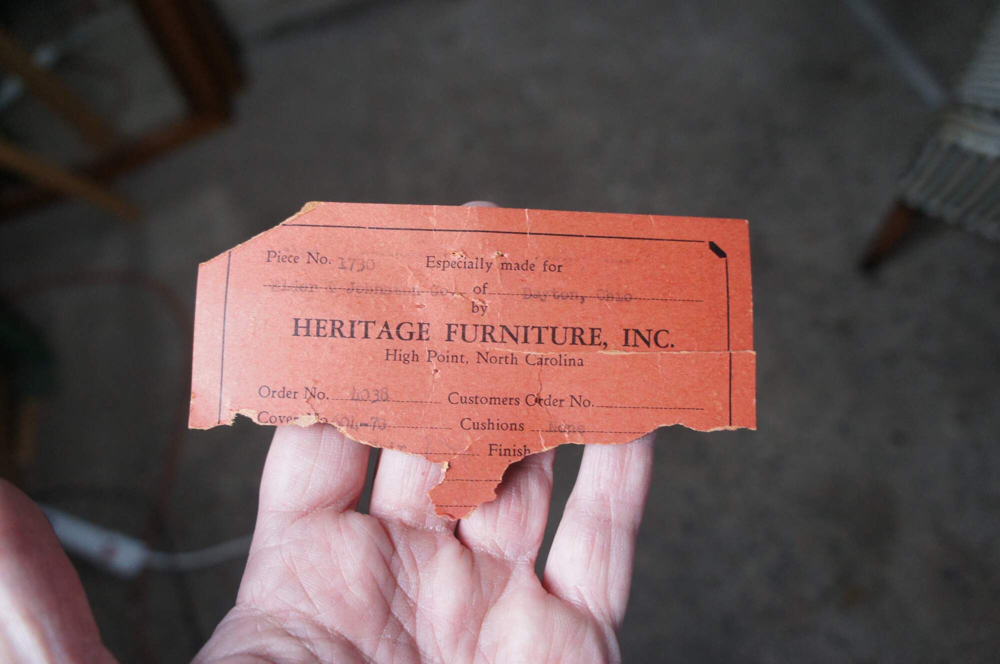 Good Vintage Condition; Wear commensurate with age. Some staining to the lower side of the front legs. Leg of one settee is painted black, the other settee has two black legs along the back. Edge wear. Tear to the top of the back of one settee by the cording. Tear to the back arm of one slip cover