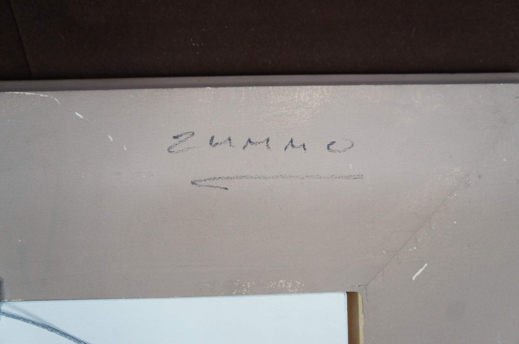 Good condition, wear and distressing commensurate with age and use, few paint spots, one by signature, scuffing to frame.