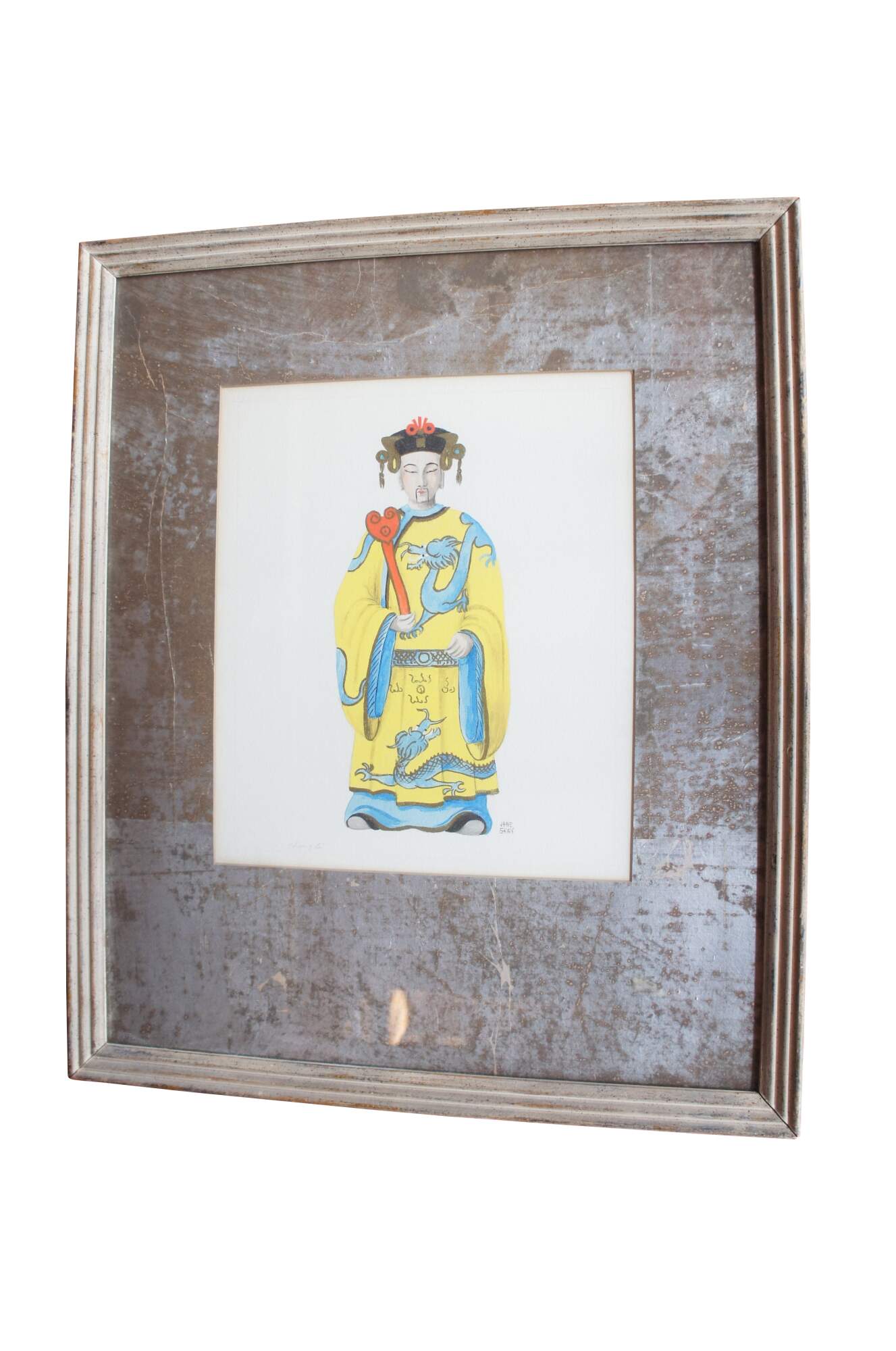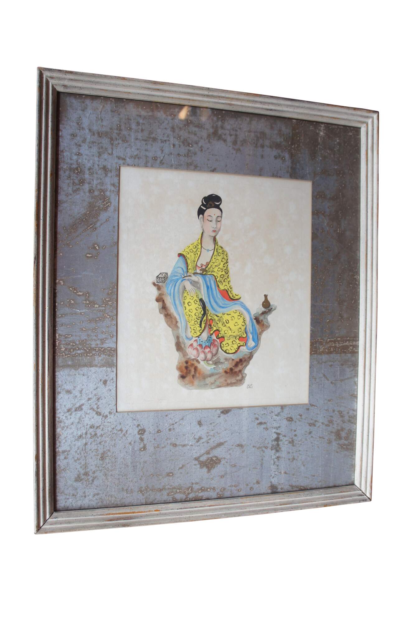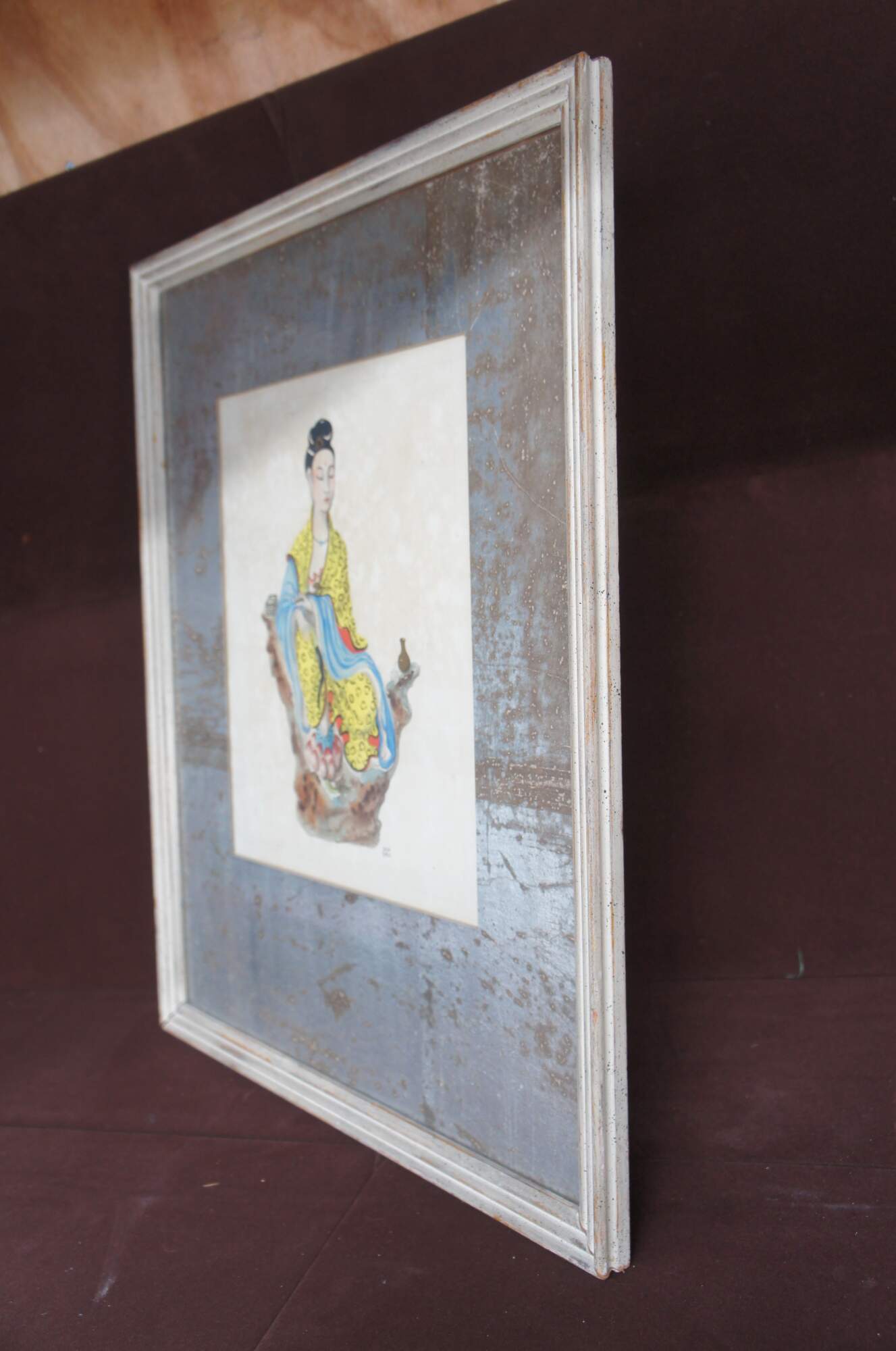 Pair of two vintage Jane Gray watercolor portrait paintings of Kuan Yin and Chung Li.