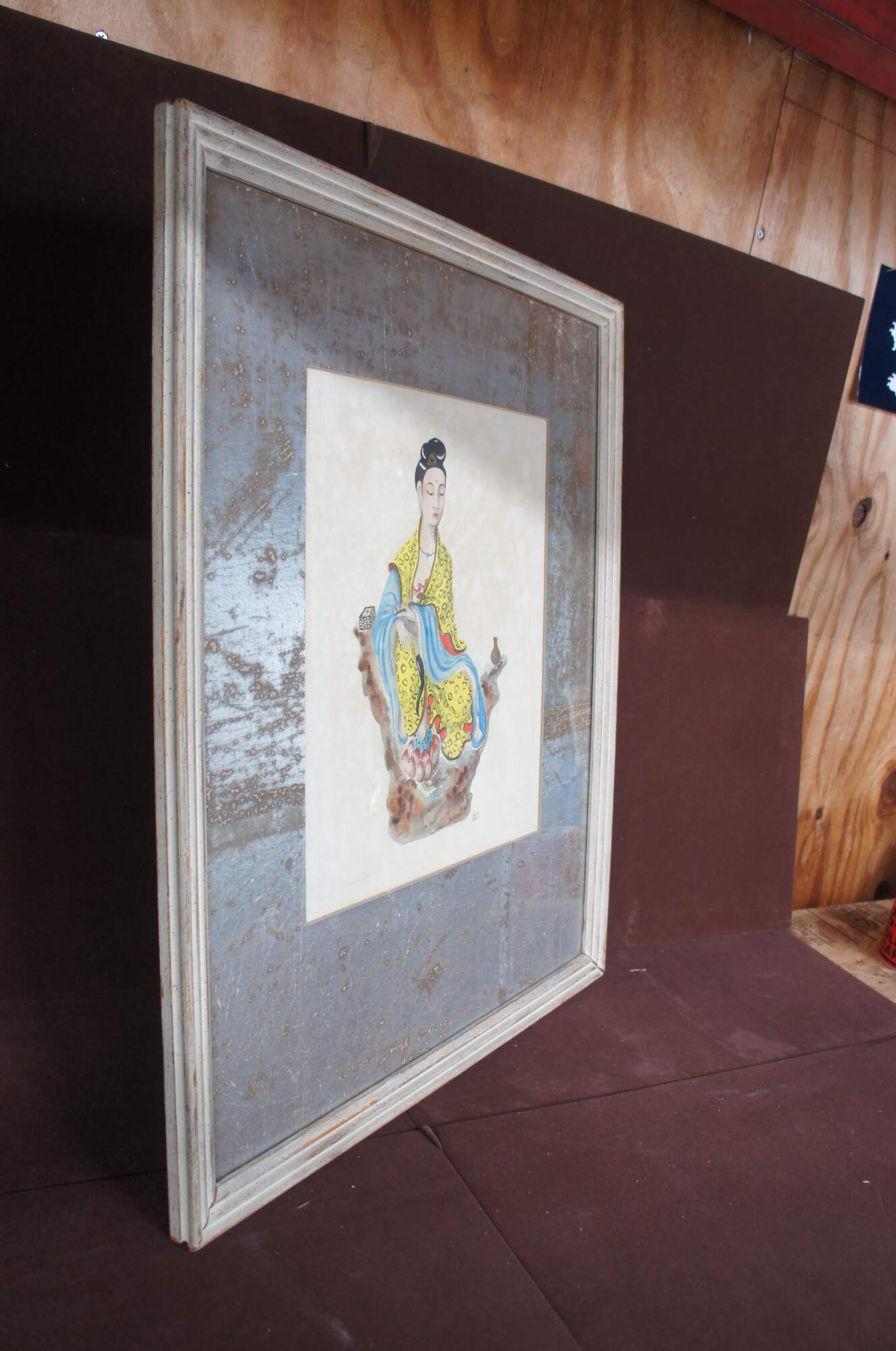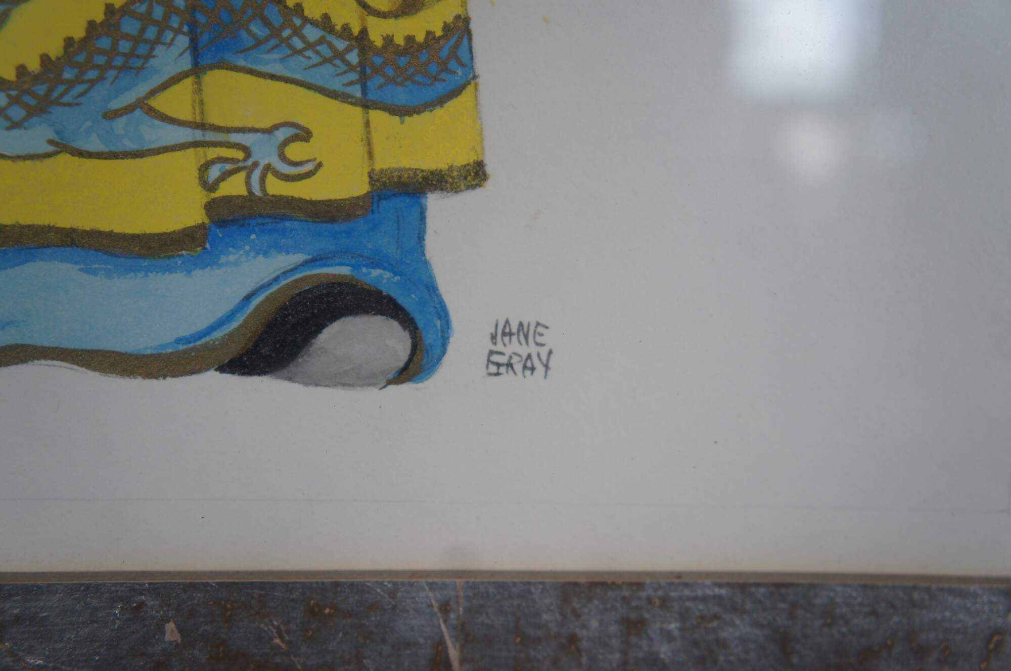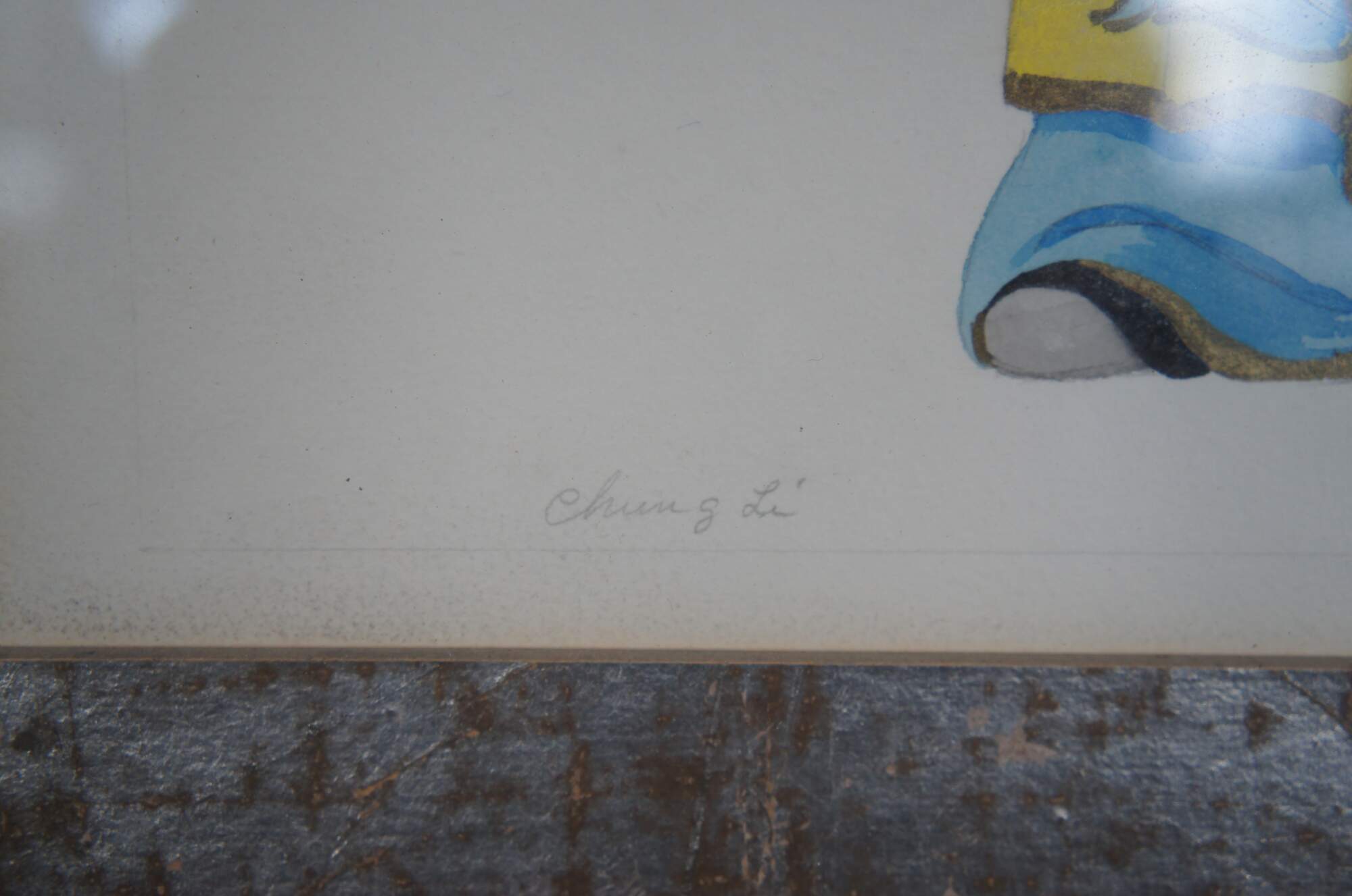 Pair of two vintage Jane Gray watercolor portrait paintings of Kuan Yin and Chung Li.
