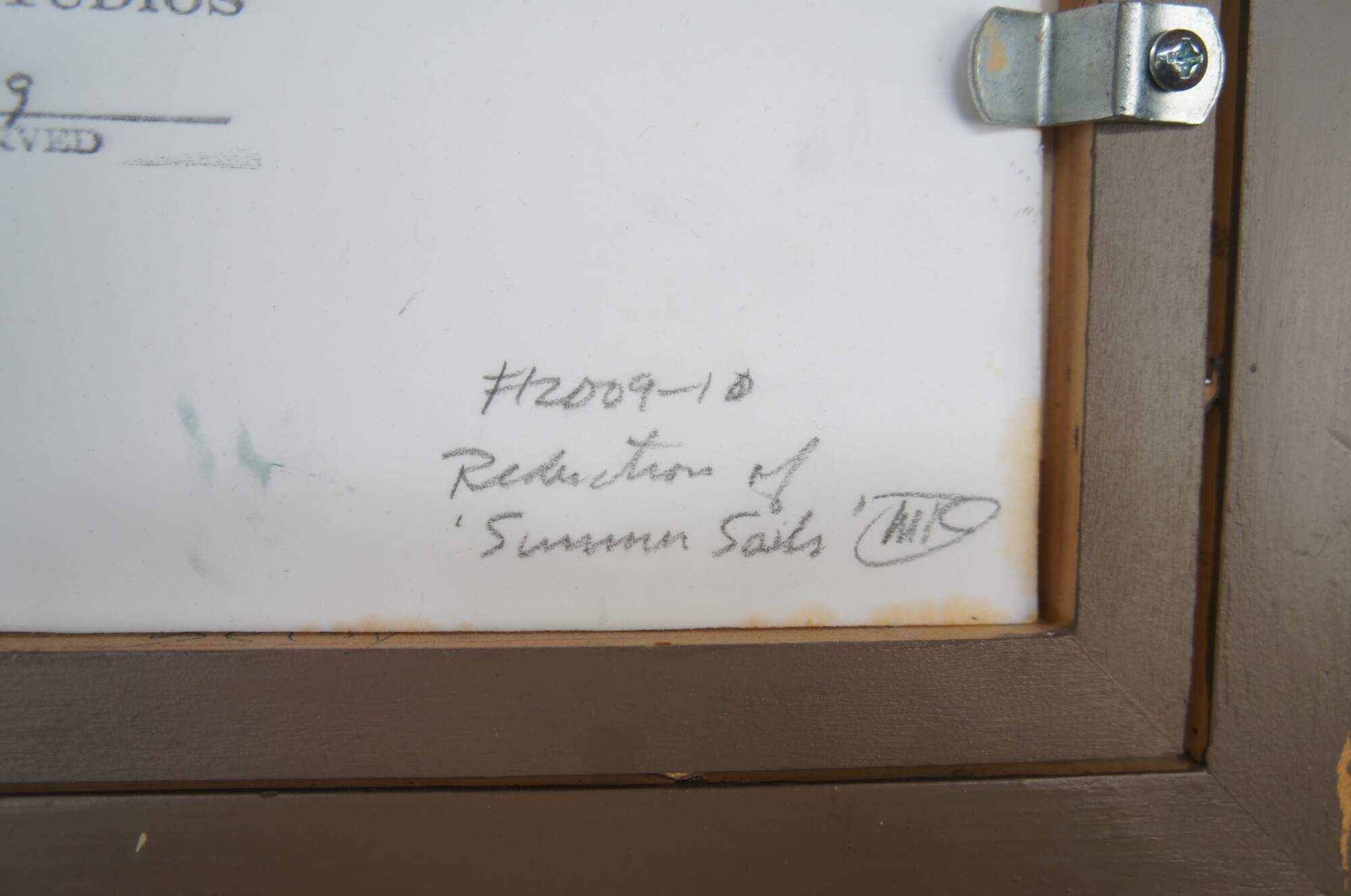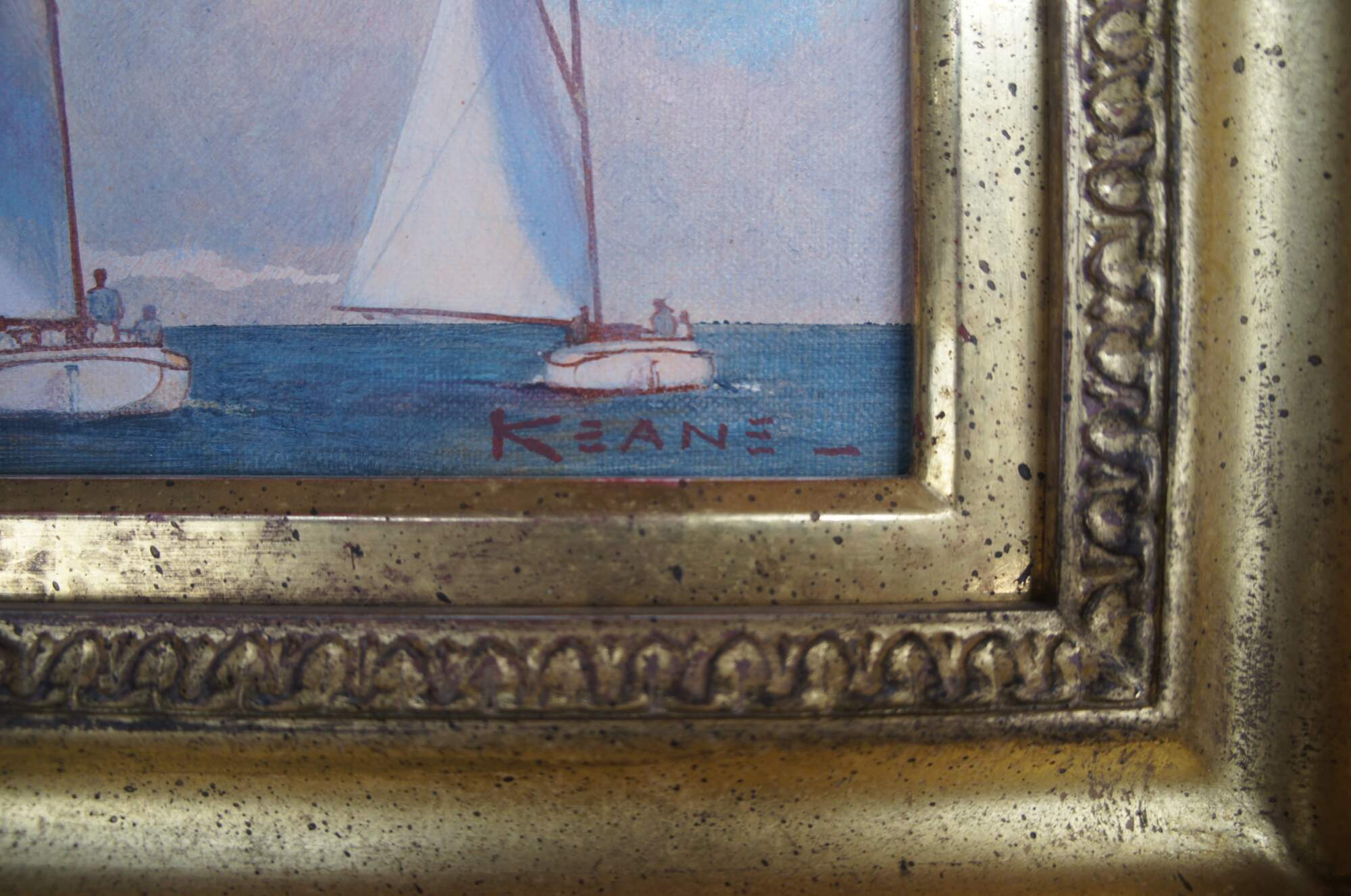 Vintage Michael Keane (b.1948 - 2015) Nantucket ""Summer Sails - Reduction"" nautical maritime boat / ship oil painting featuring a trio of sailboats on the ocean. Circa 2009. Quidley & Company.
