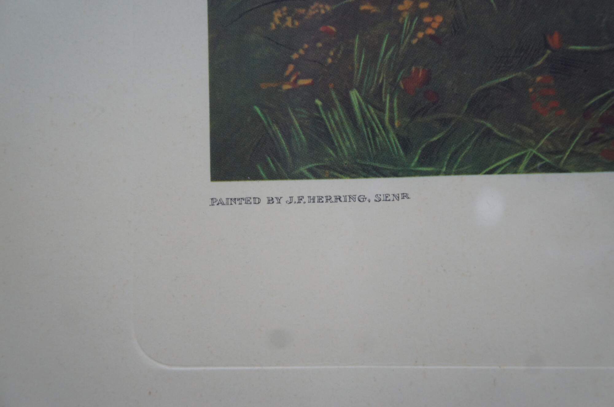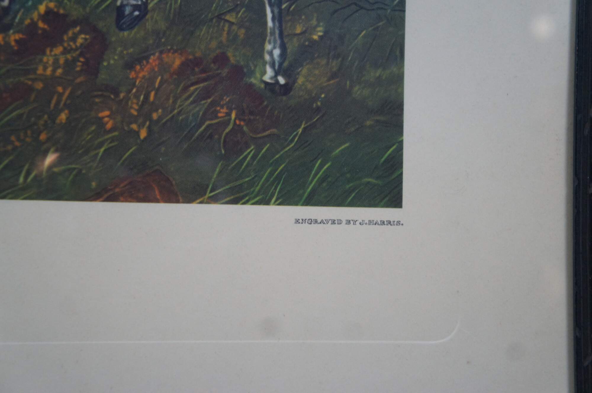 A Large format vintage re-strike of the popular Plate, circa mid 20th century. The original prints were struck from engraved steel plates don by J. Harris, printed by a variety of publishers,and then hand-colored. Harris directly copied the engraving from the painting done bu J.F. Herring SENR (There were a father and son working on similar scenes at the same time.). The majority of these pieces are 30"" or smaller in frame. With a larger 41"" presence this piece offers a stately vibe making it perfect for a library, office or study.