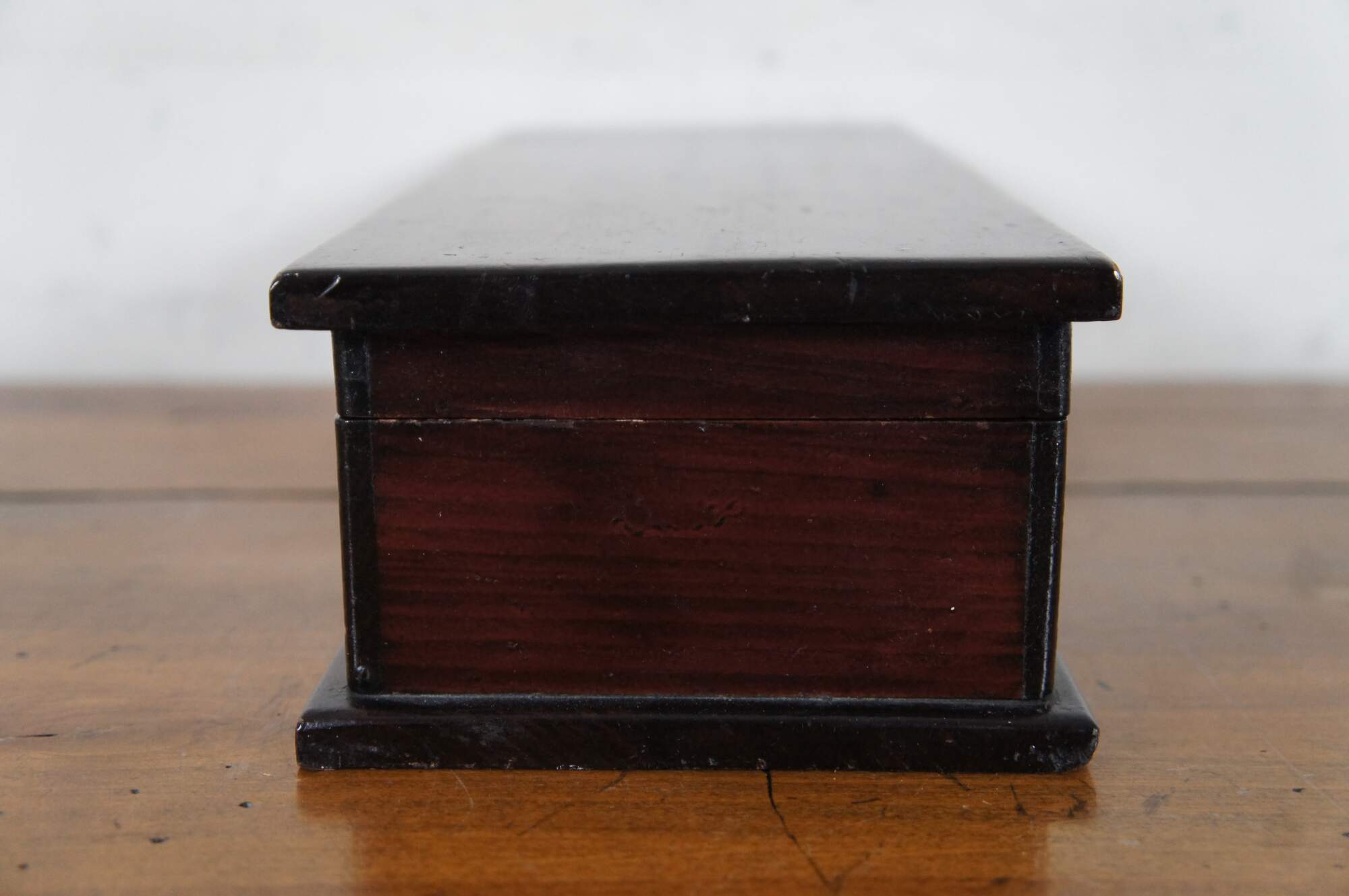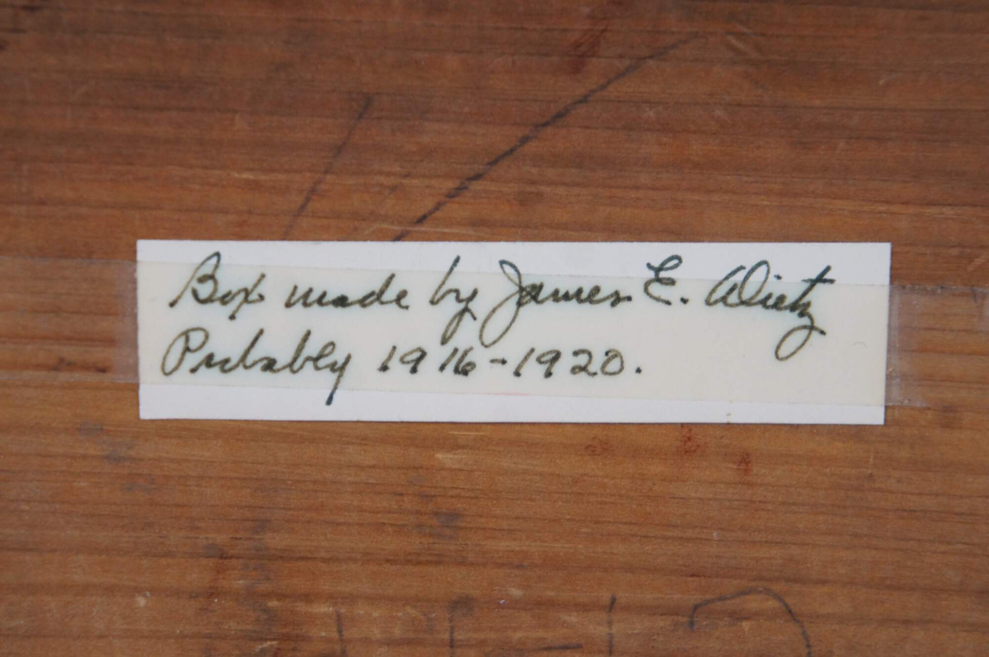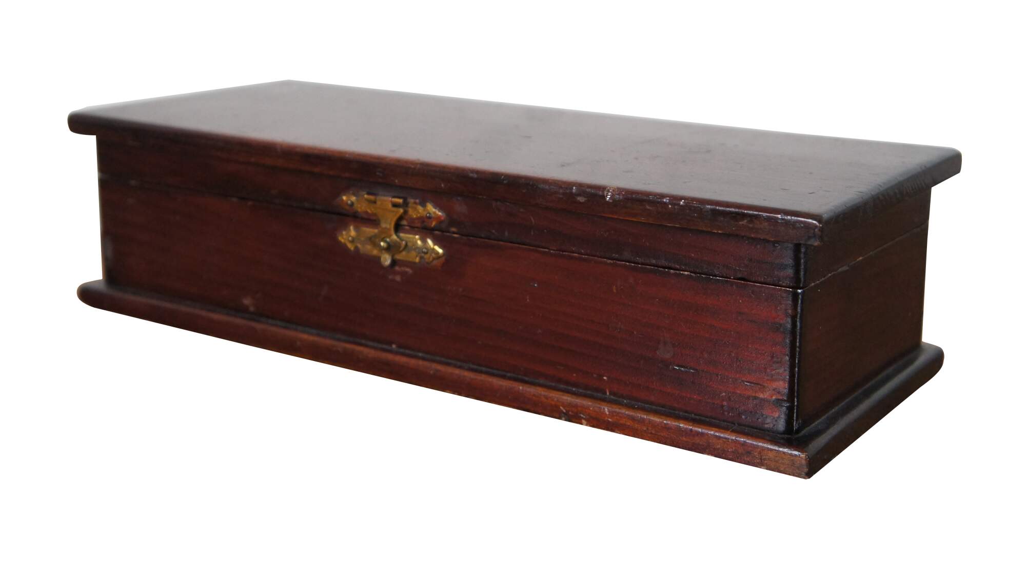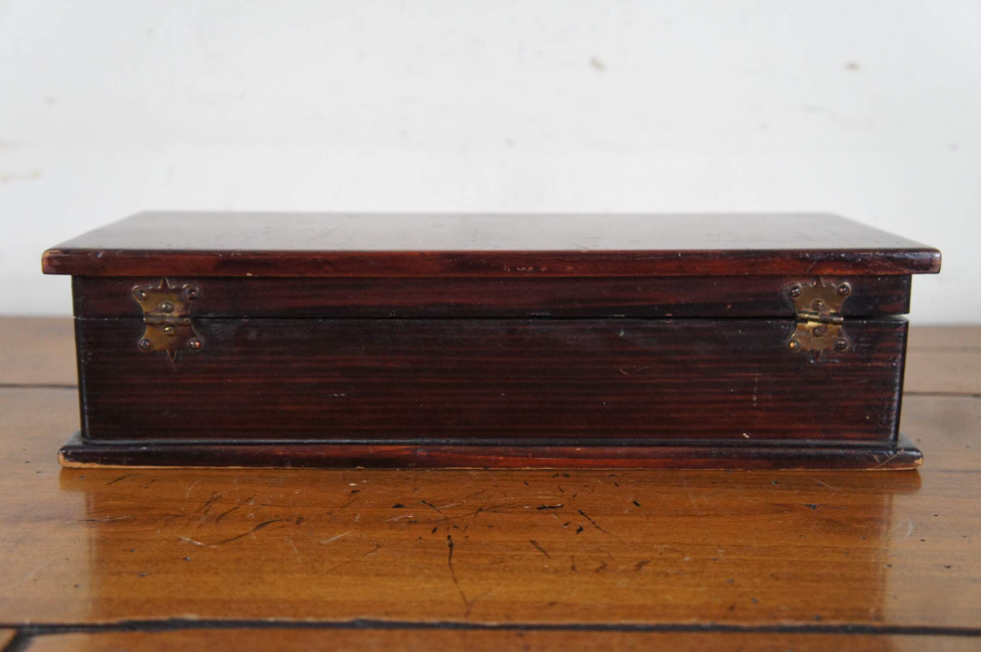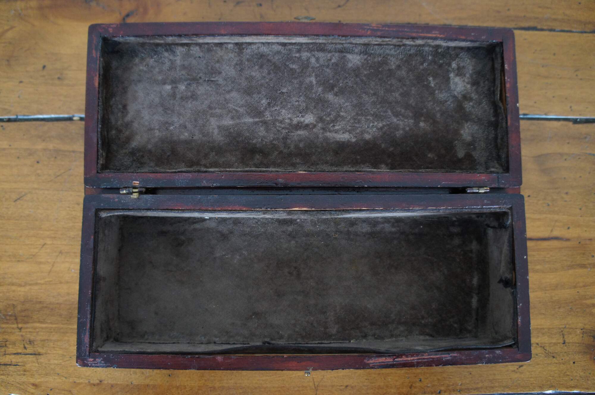 Antique early 20th century mahogany trinket / jewelry / letter or glove box, lined with brown velvet. Made by James E. Dietz, circa 1916-1920.