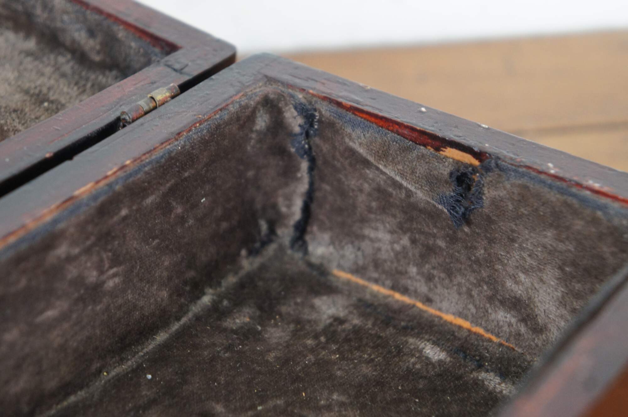 Good Antique Condition - Some scuffs/dings; wear/stains to velvet