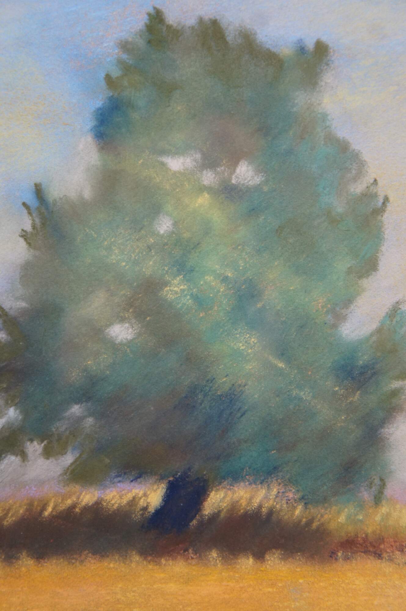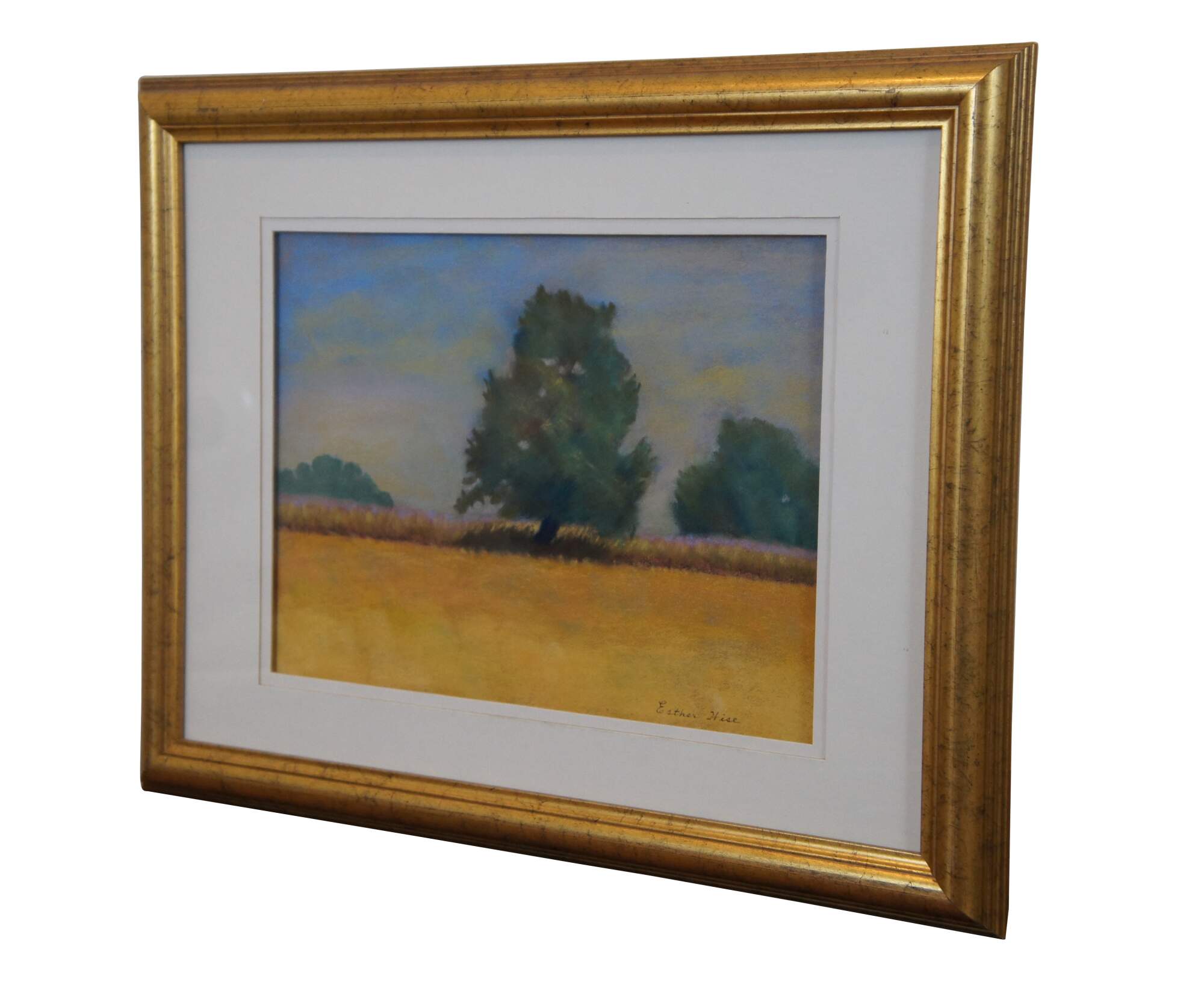 Vintage original pastel landscape painting by Dayton artist Esther Wise titled “Golden Field.”