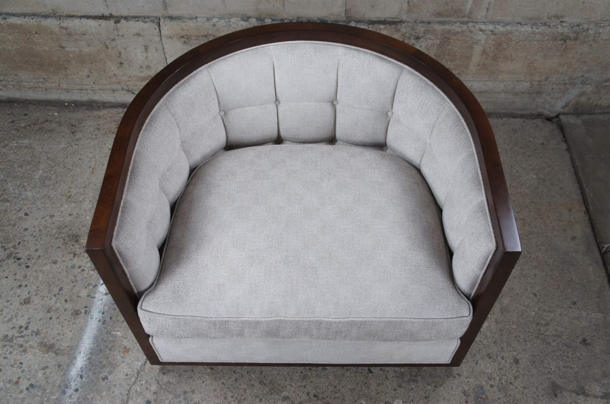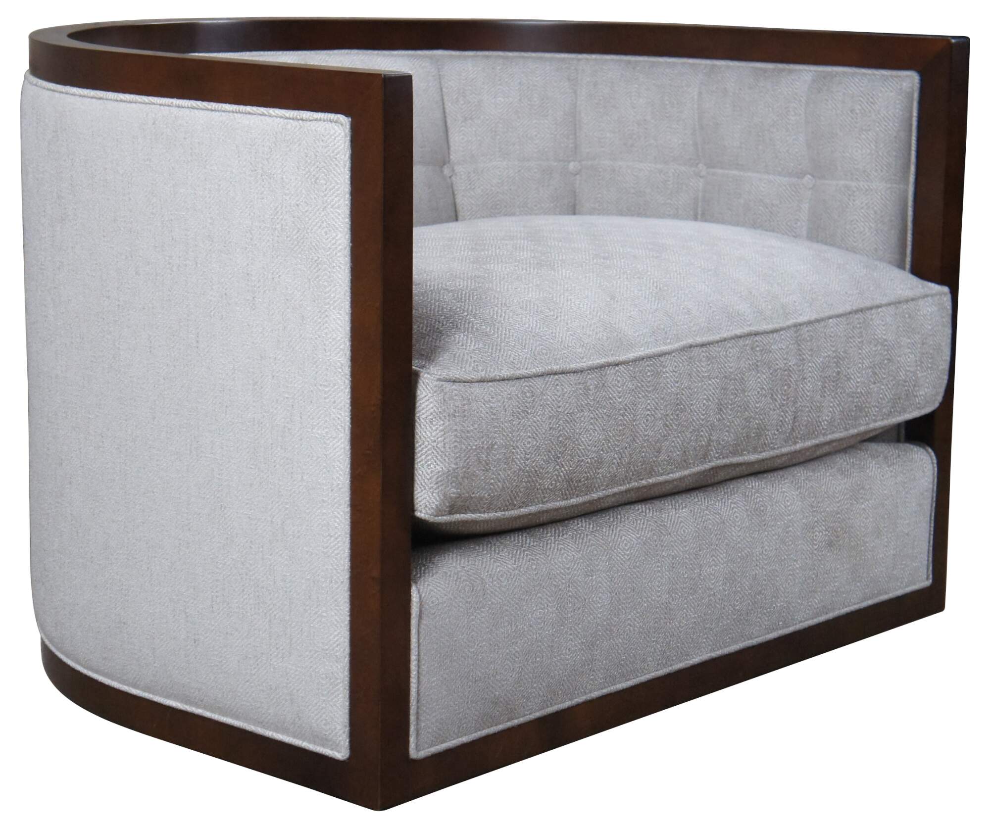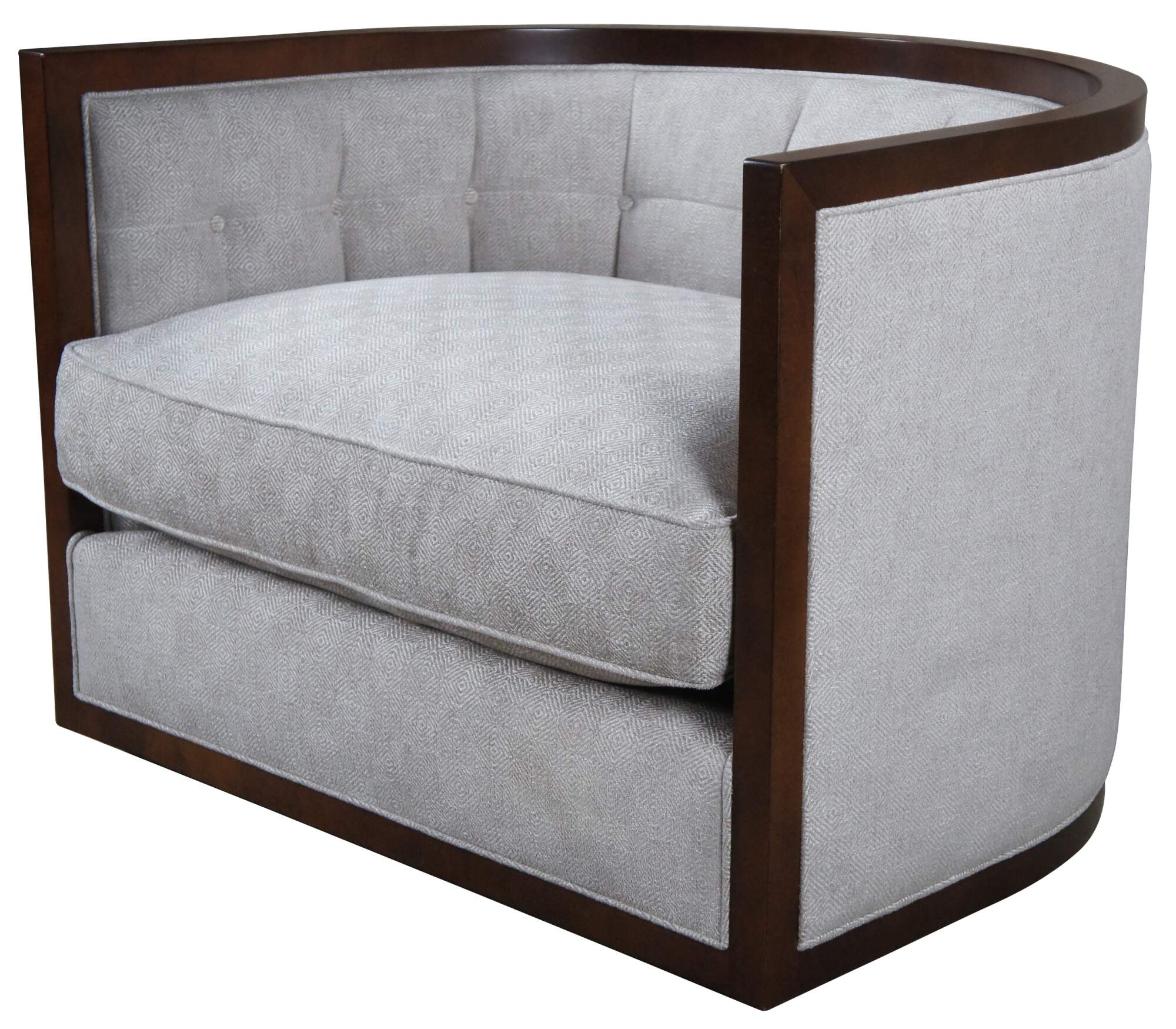 Sink into the comforting Baker Archetype Round Tufted Club Chair that will add style to any contemporary space. Wood banded frame. Tufted back over a loose seat. An updated barrel back chair. It thrives in both traditional and more contemporary settings. The Baker Originals Archetype Round Tufted Club Chair is ideal for any casual or professional working area. It provides comfortable support with a cozy and convenient design.