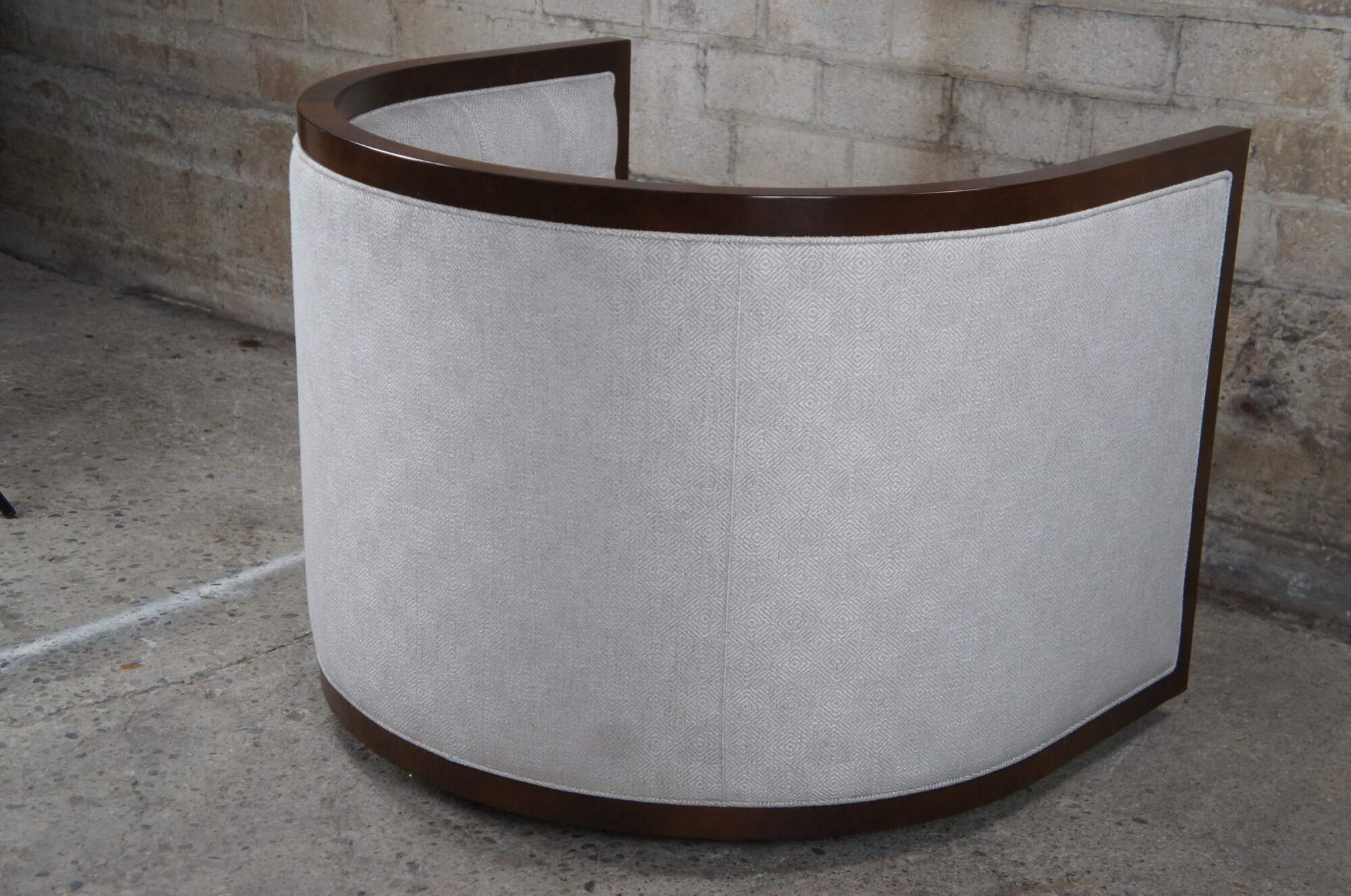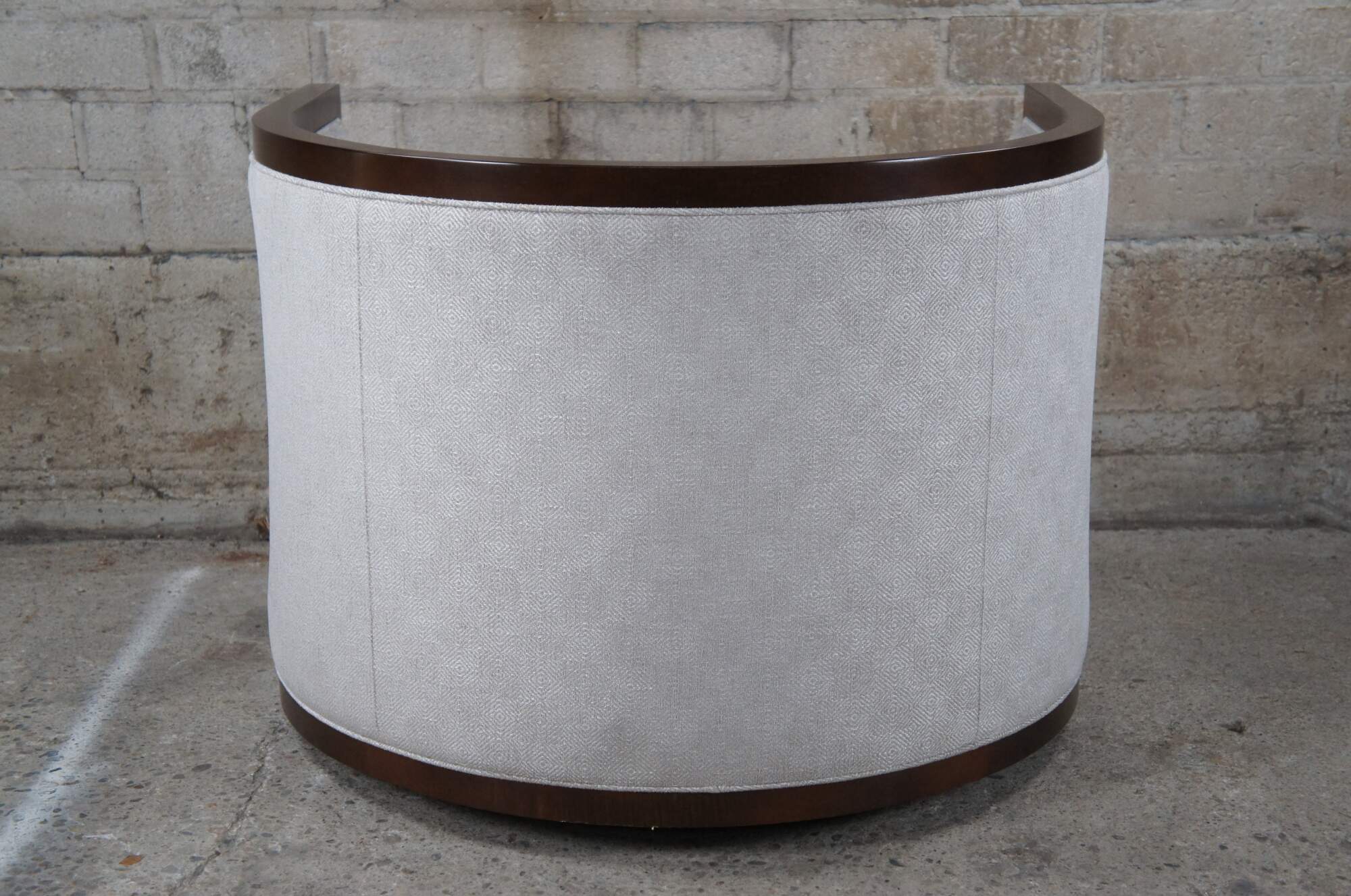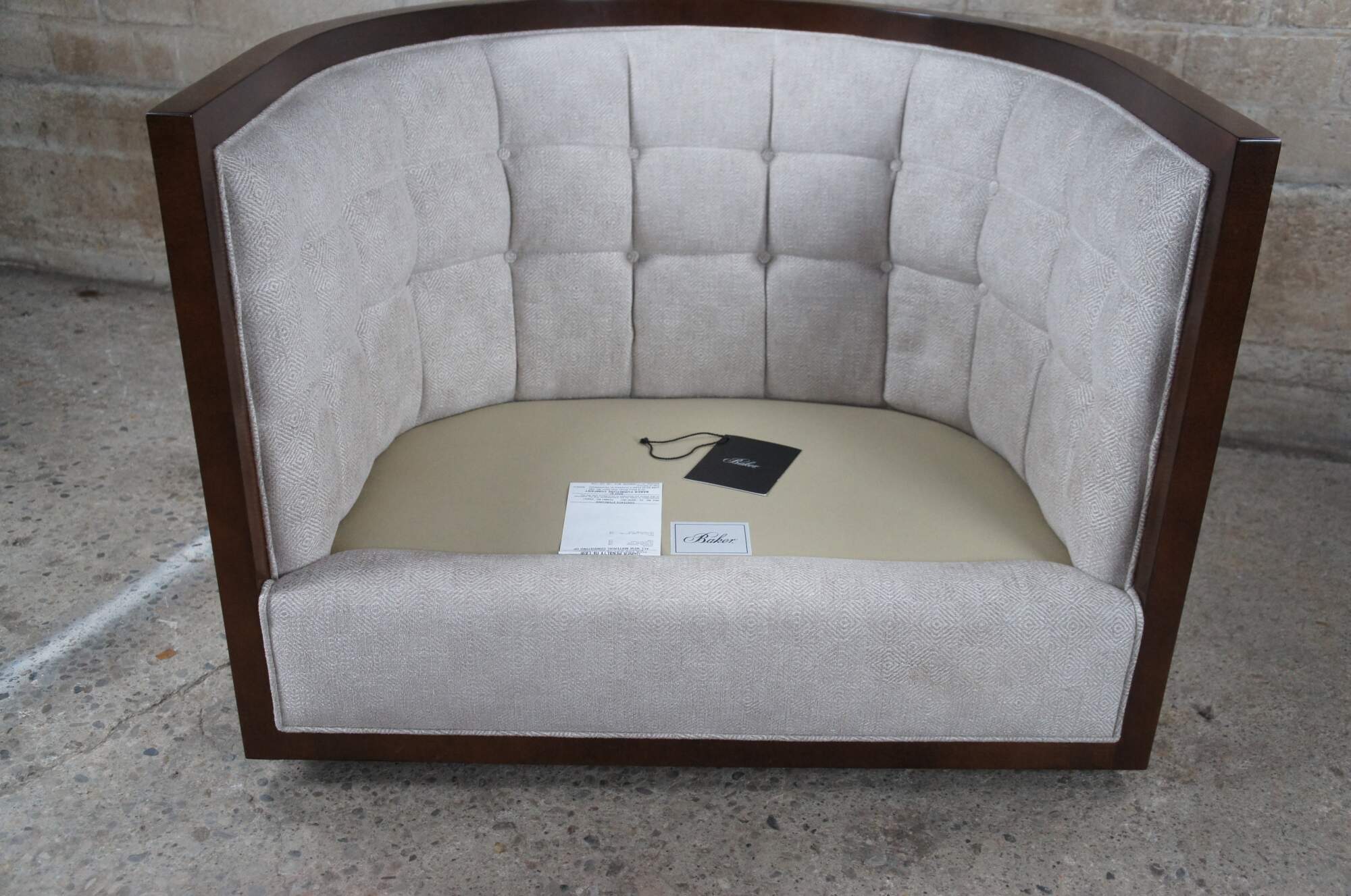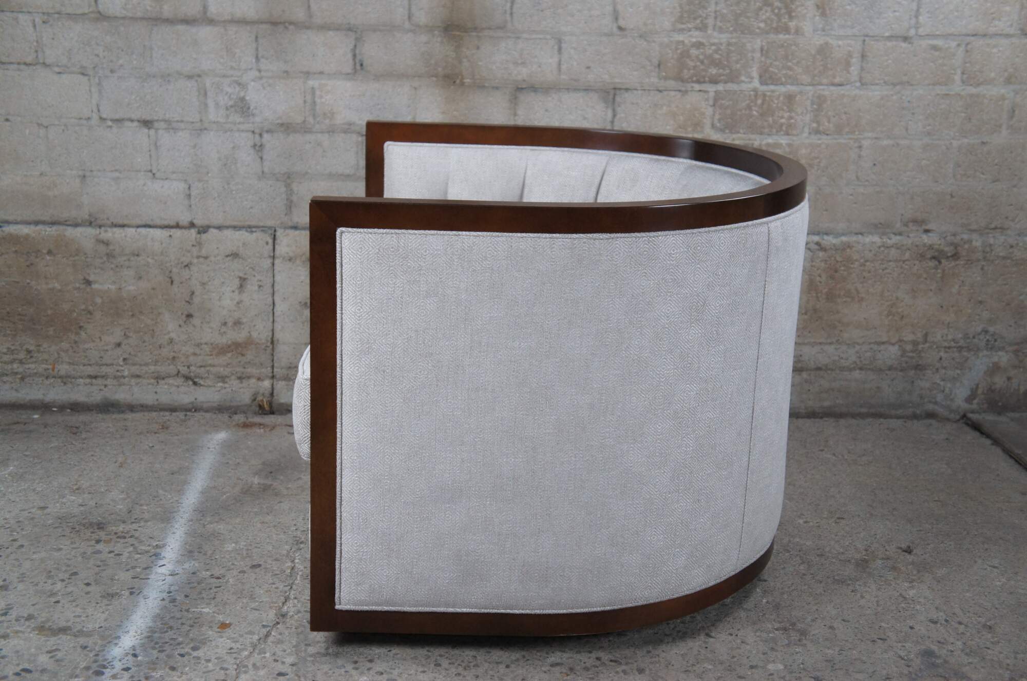 Sink into the comforting Baker Archetype Round Tufted Club Chair that will add style to any contemporary space. Wood banded frame. Tufted back over a loose seat. An updated barrel back chair. It thrives in both traditional and more contemporary settings. The Baker Originals Archetype Round Tufted Club Chair is ideal for any casual or professional working area. It provides comfortable support with a cozy and convenient design.
