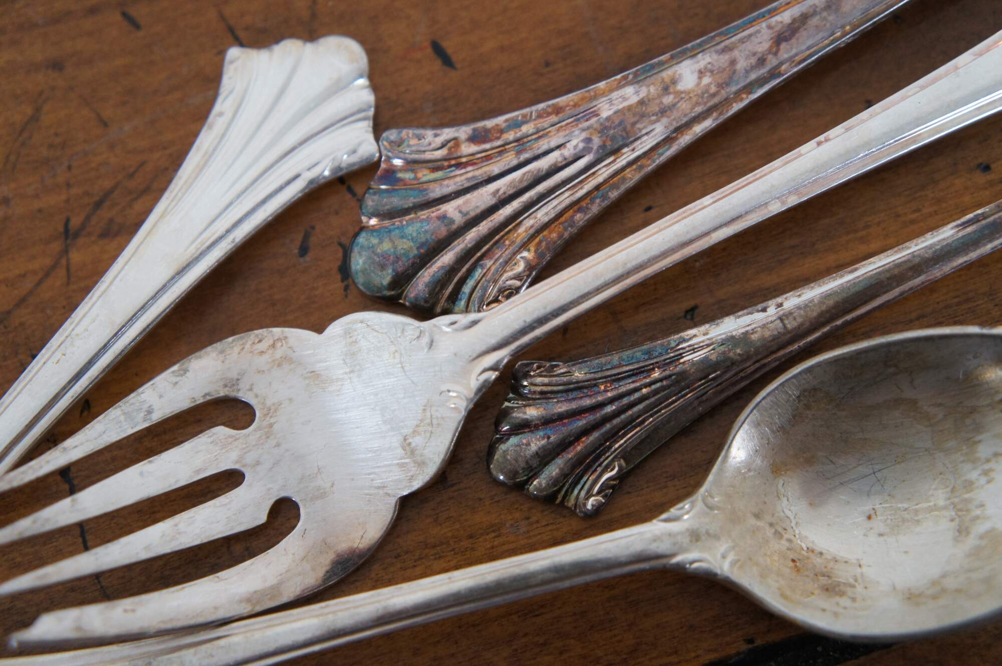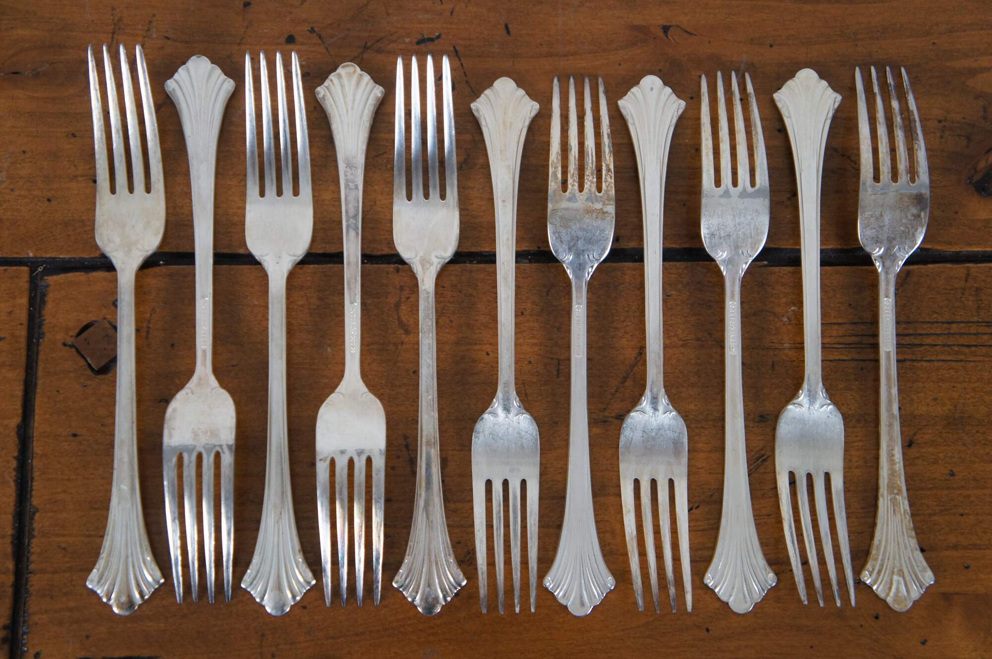 Vintage sixty five piece set of Reed and Barton silver plate flatware in the Highlands pattern (introduced in 1994) including service for 12, several serving utensils, and storage box.