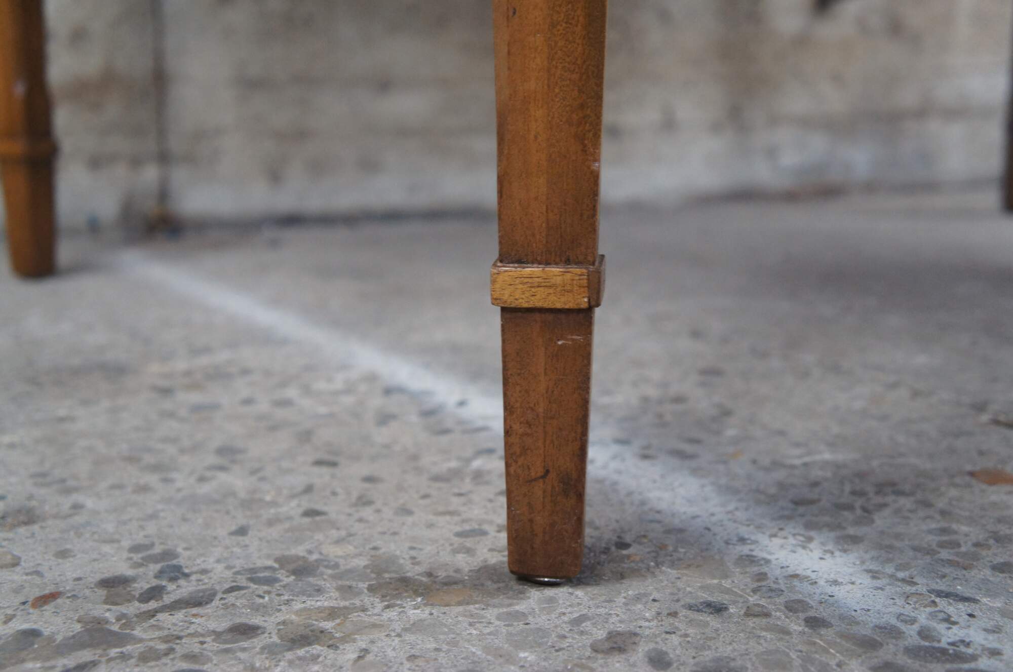 Good Vintage Condition; gentle wear commensurate with age. Some marking to the table top from use. Edge wear to some of the table leaves. Light sun fading to the table top, leaves slightly darker than table.