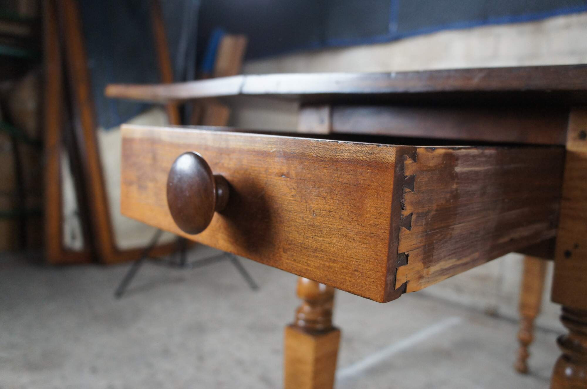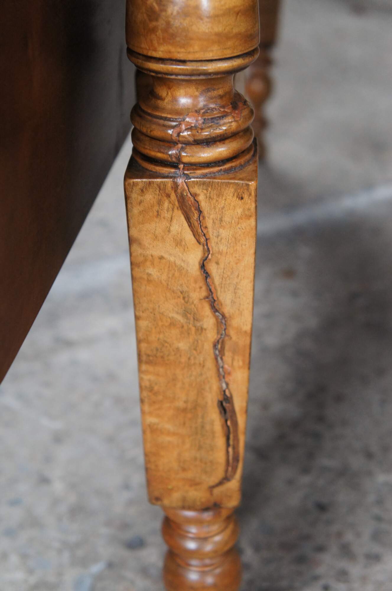 Good Antique Condition; bowing to the leaves from age as well as a past repaired split along one leg