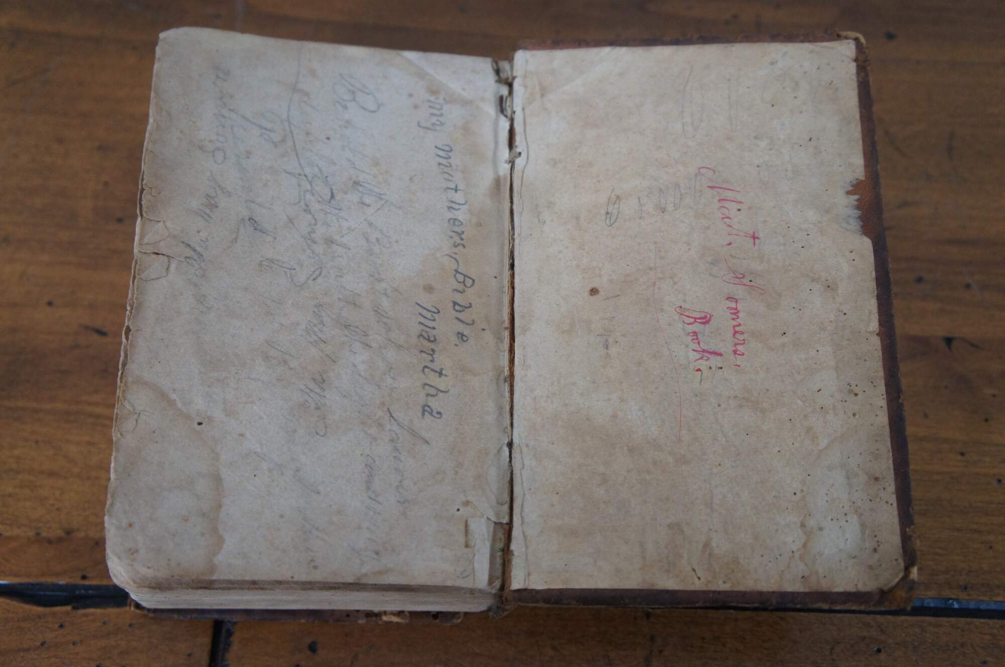 Good Antique Condition - Stains/slight warping/damaged spots to cover; foxing / stains throughout pages; some torn edges/pencil annotations