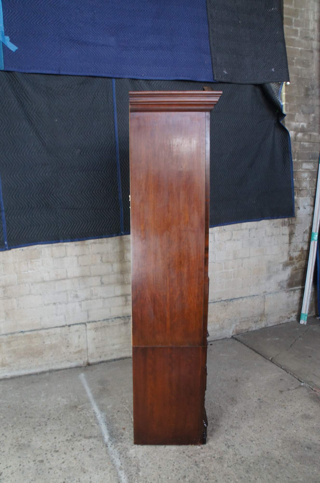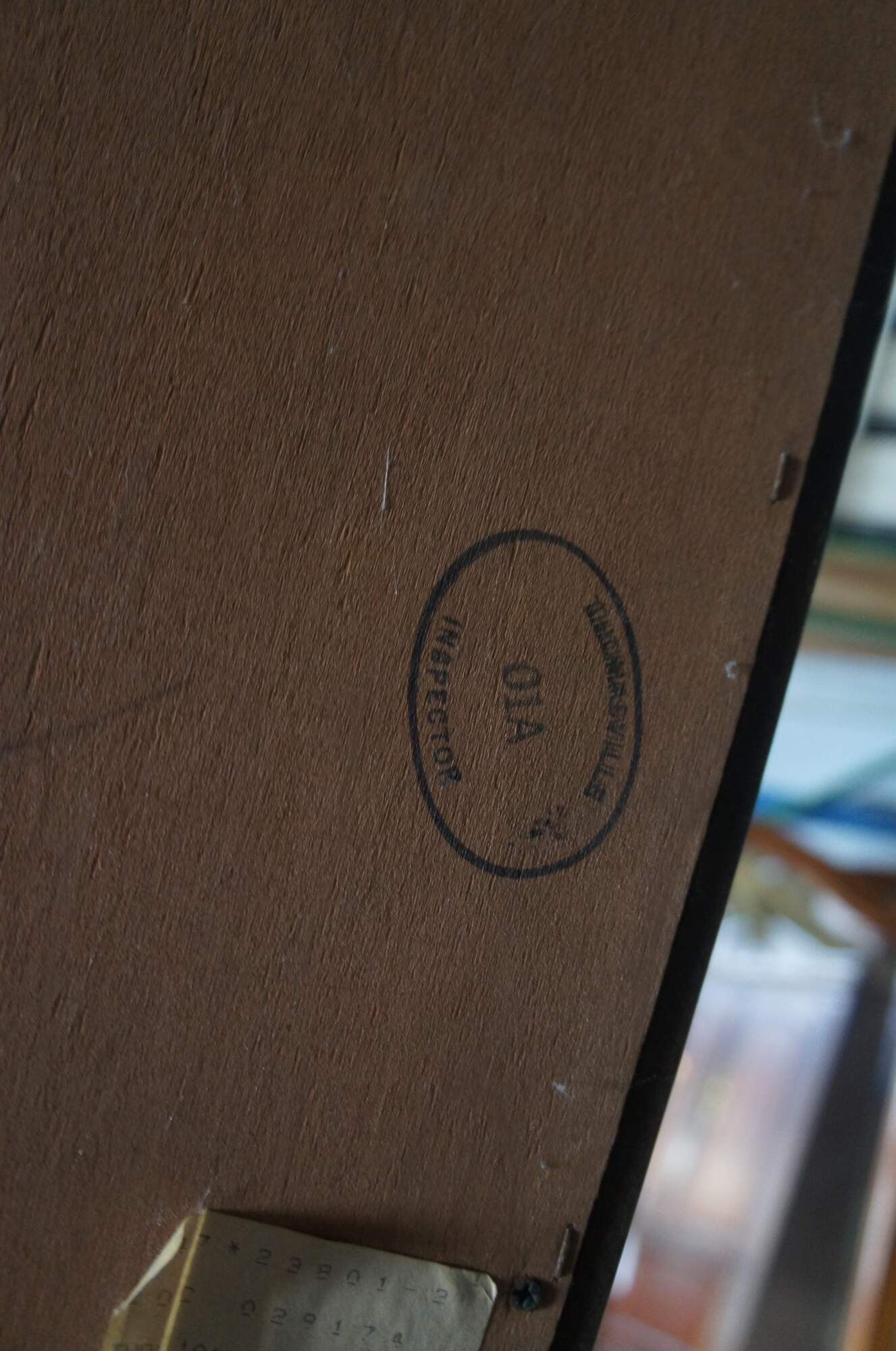 Fair; structurally solid. Distressing and marking from use and age. Veneer damage / lifting / loss and finish wear to drawers, lower molding and bottom edges of the side of case