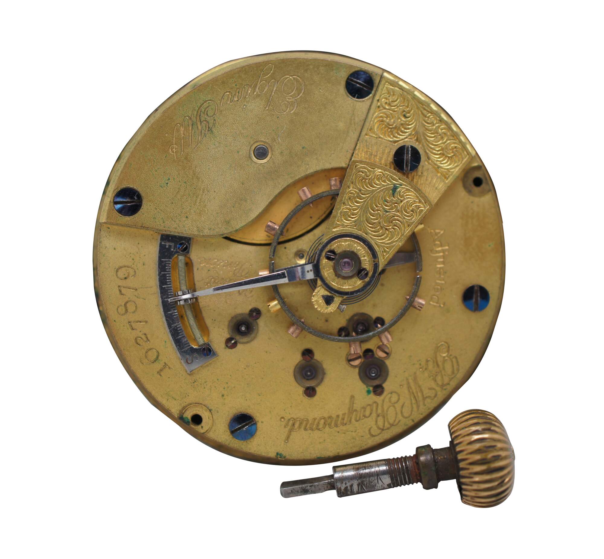 Antique circa 1885 pocket watch face by Elgin National Watch Co with B.W. Raymond works, numbered 1627879. Grade 70, 15 jewels, 18s
