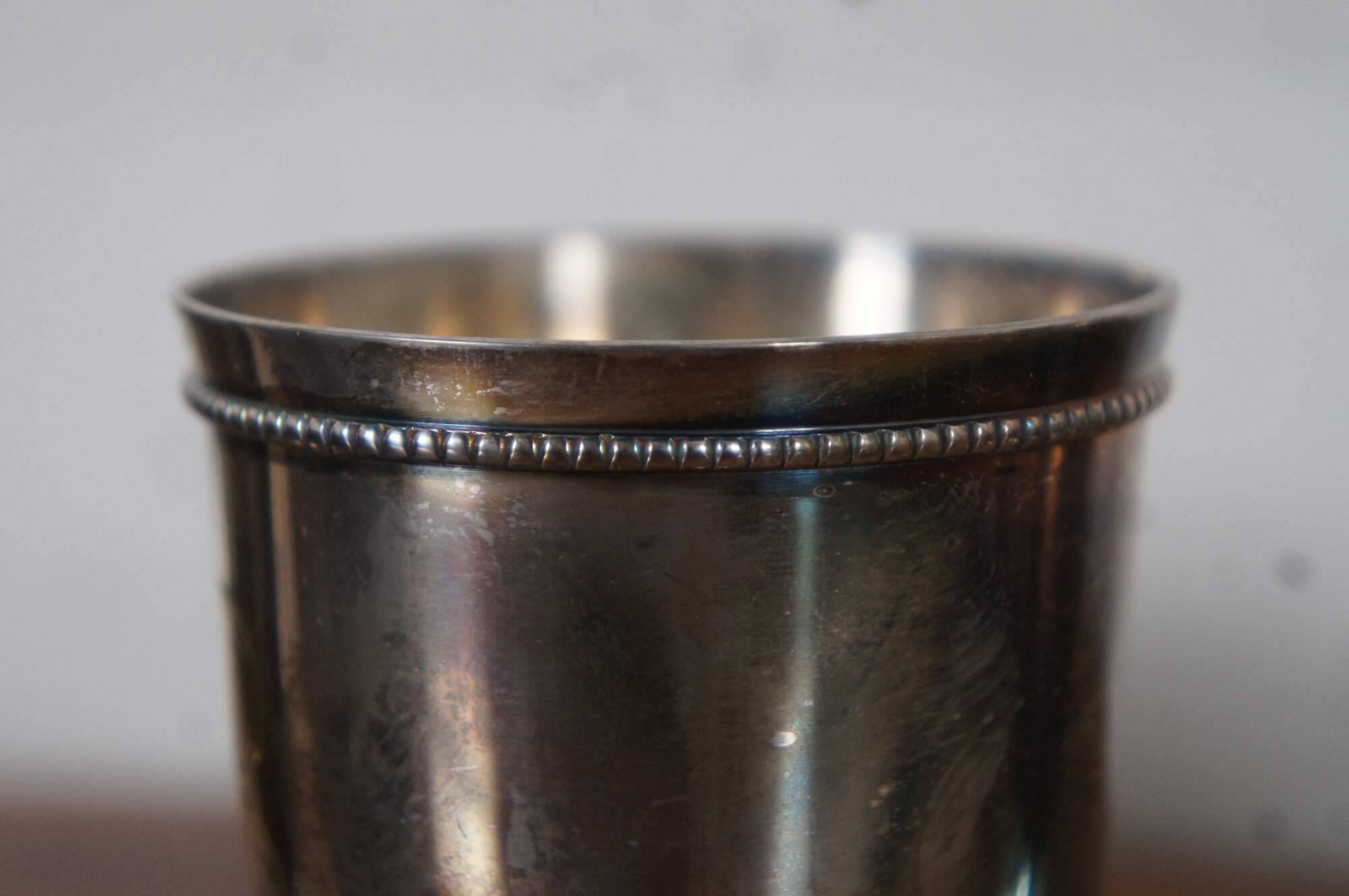 Set of six vintage silver plate wine goblets / chalices with beaded edges and monogrammed with the letter B. Made in India.