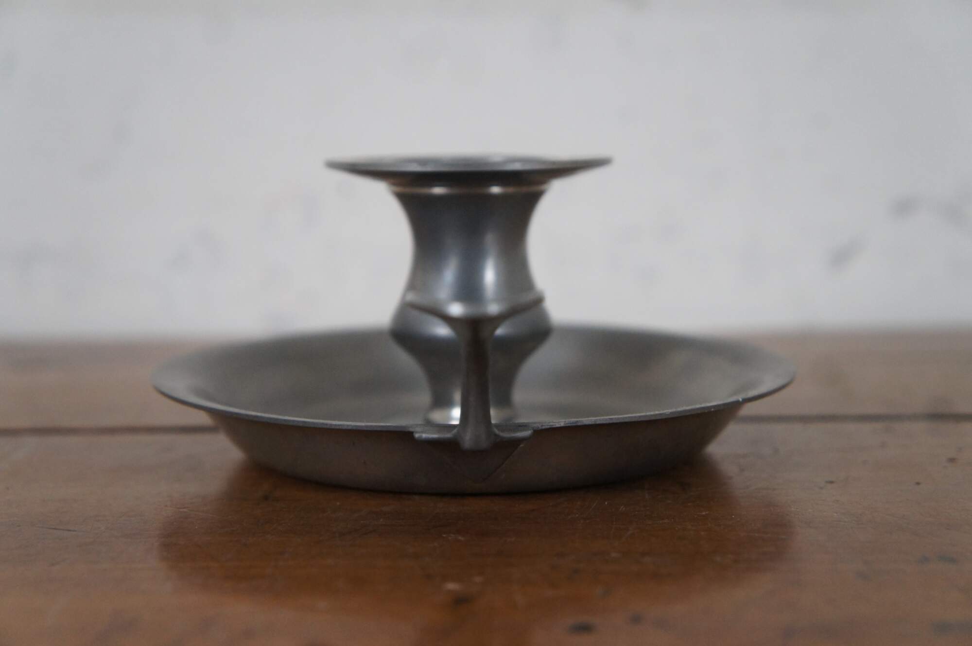 Vintage American Colonial style pewter chamber stick / cndle holder by Les Etain du Manoir.