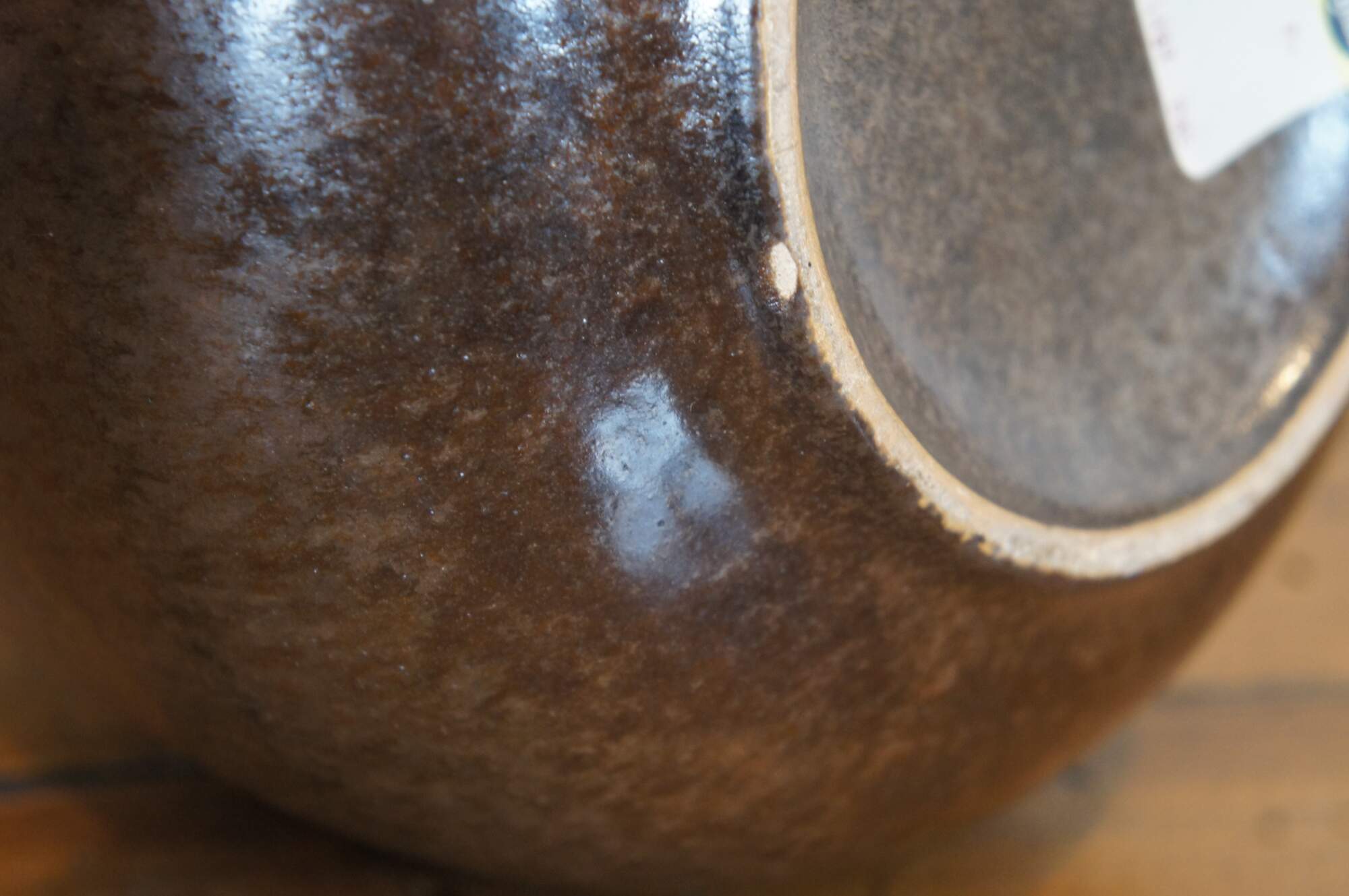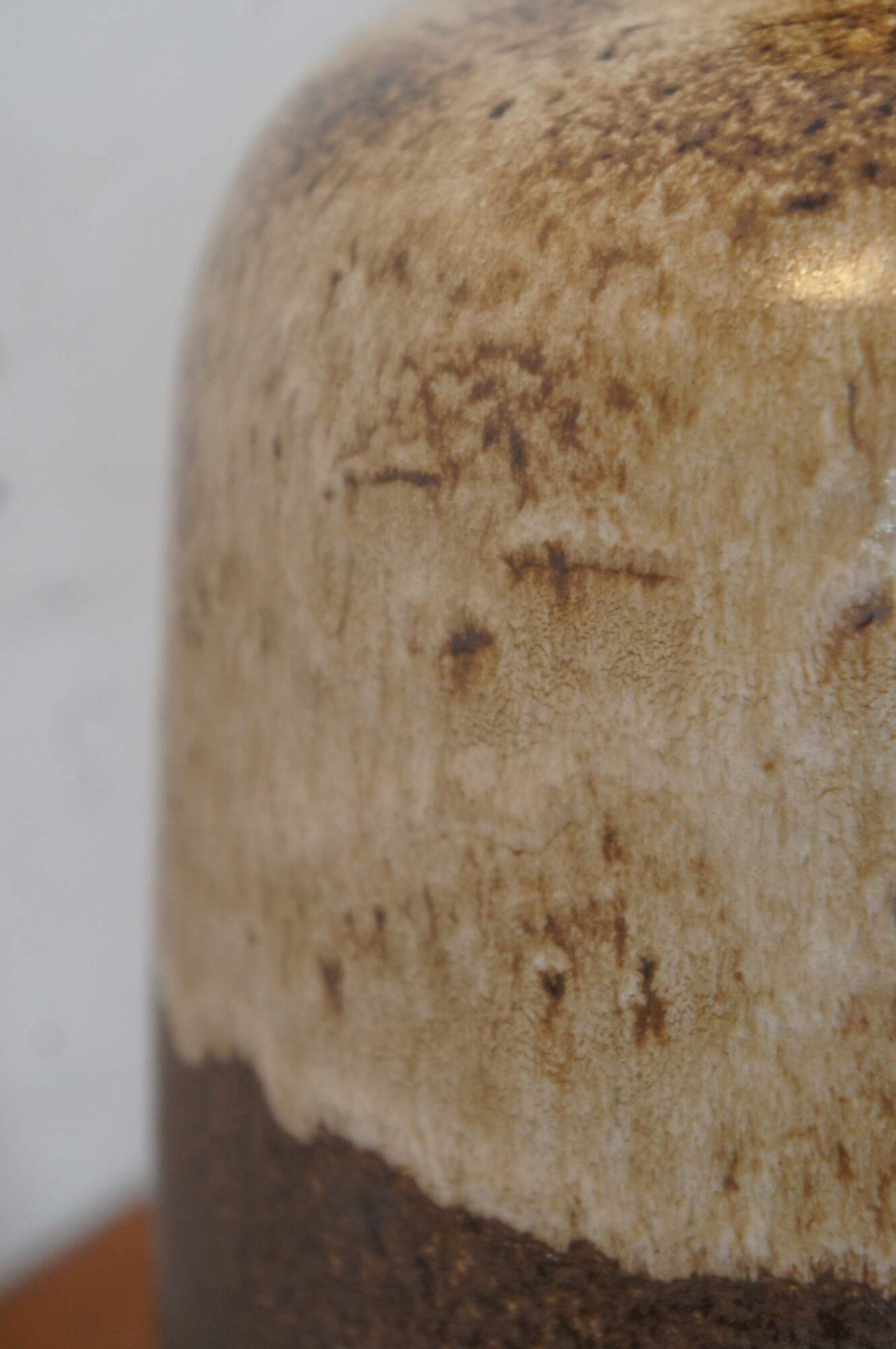 Mid 20th century Raymor two toned brown modern ceramic bud vase or weed pot, designed by Alvino Bagni for Raymore Pottery, circa 1950s-1960s, Italy. Original label on base, item number 4437 BAG.