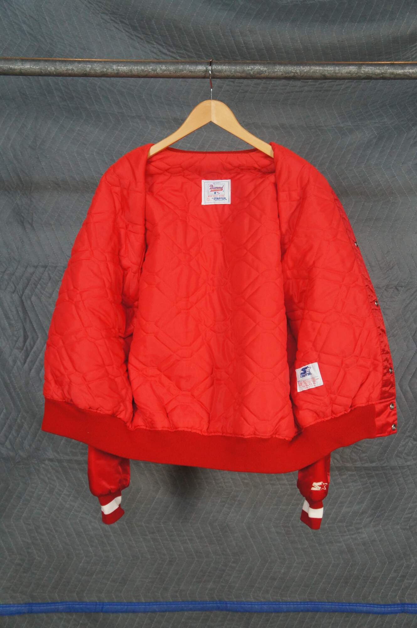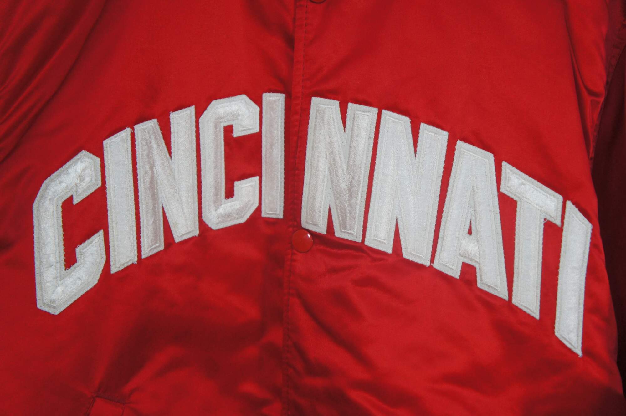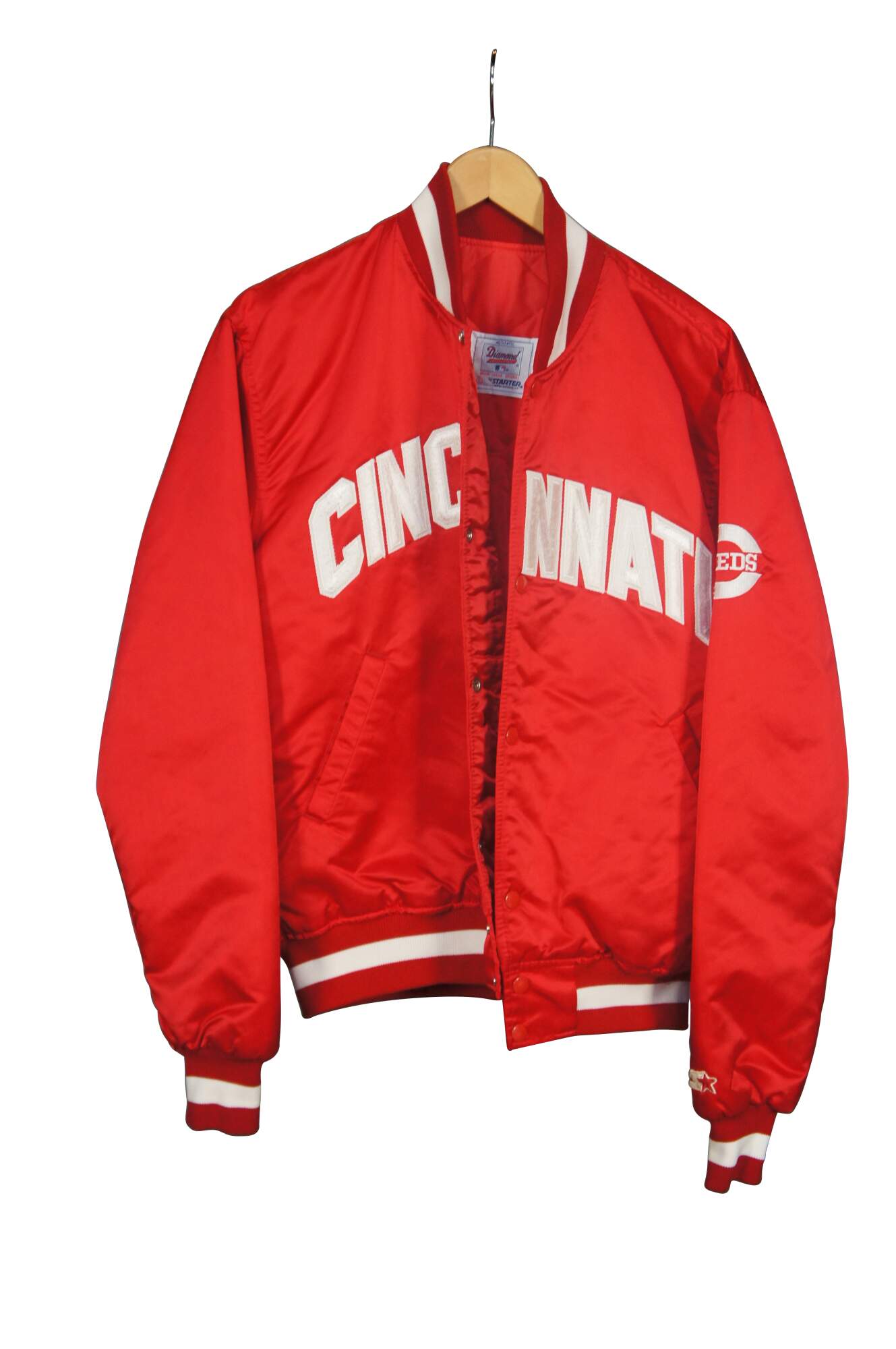 Rare vintage Authentic Diamond Collection Cincinnati Reds Major League Baseball Starter jacket. Made by Starter of New Haven in the 1990s, this iconic jacket was from the era of the Big Red Machine. It features snap closure and two side pockets. Size Large.