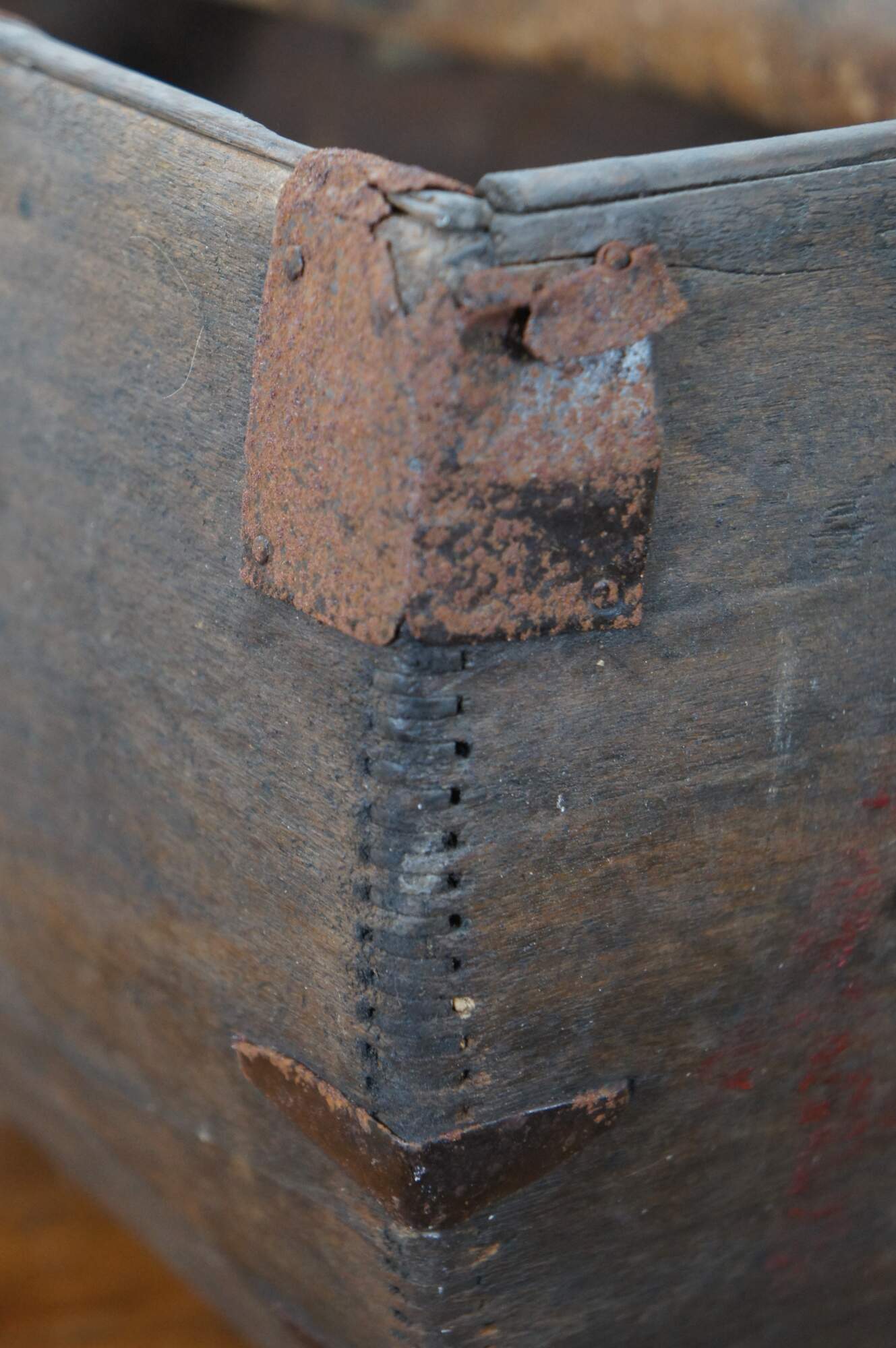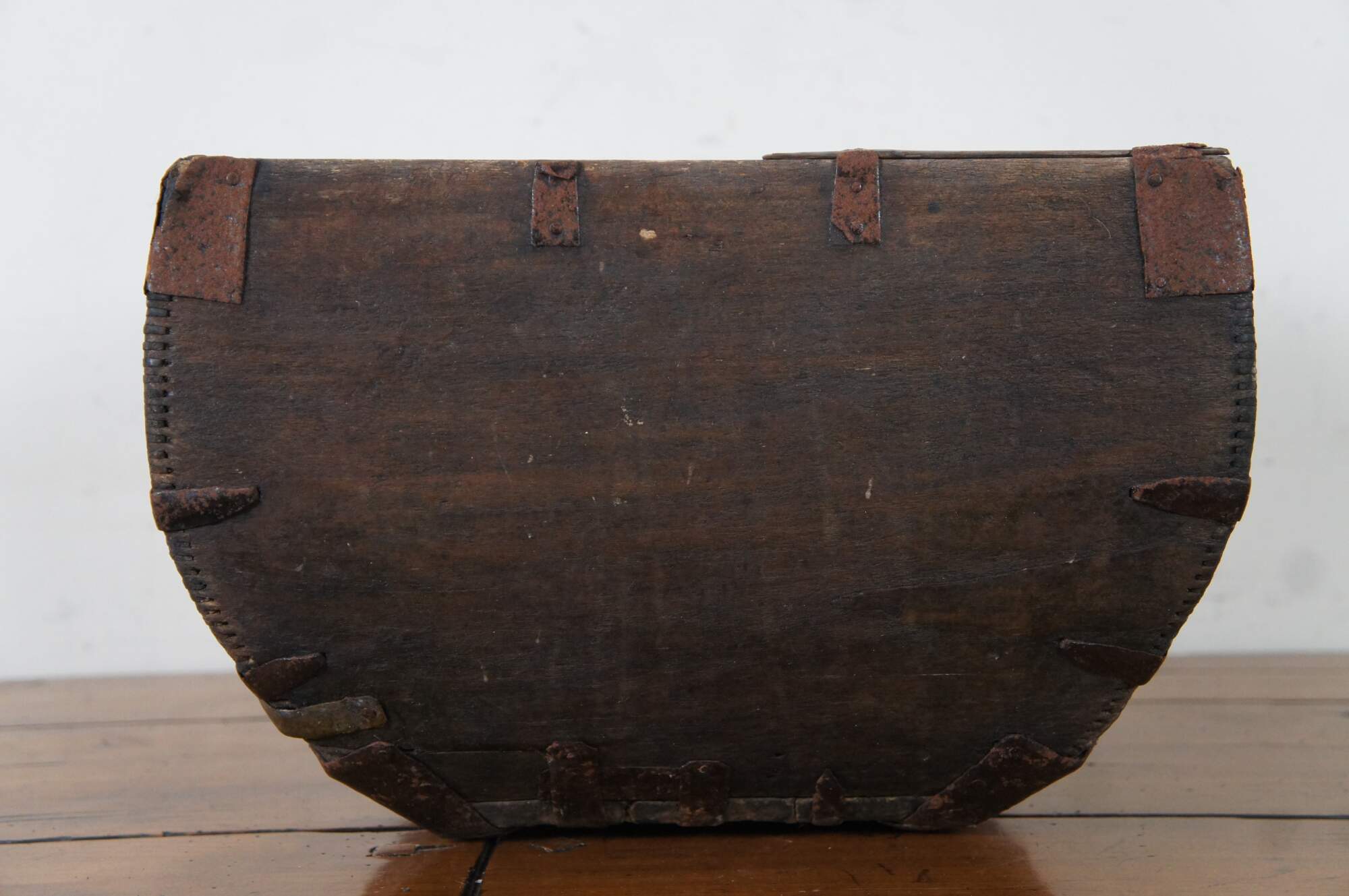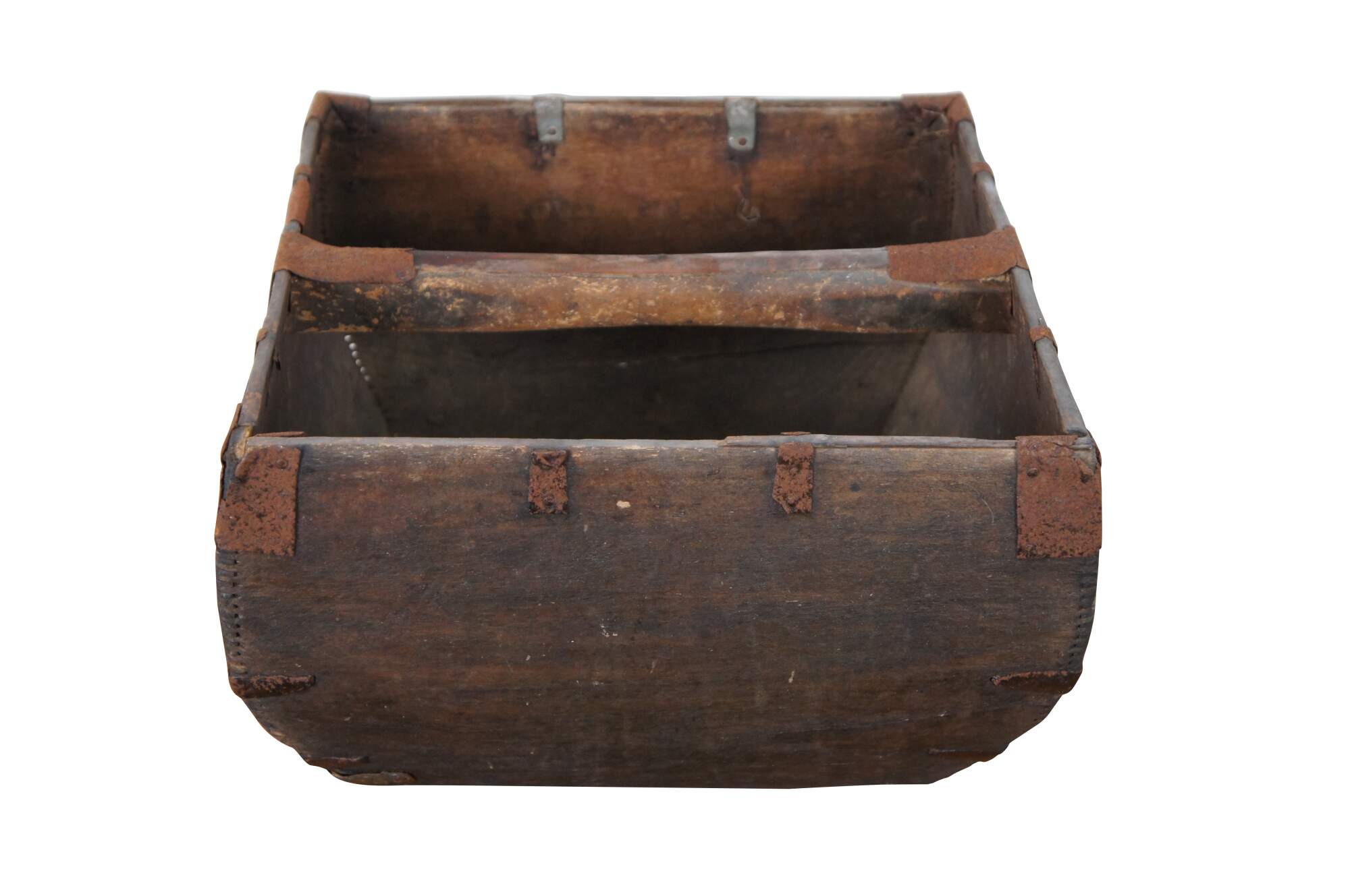 Antique wood and iron Chinese rice / grain harvesting basket / bucket with fixed center handle.