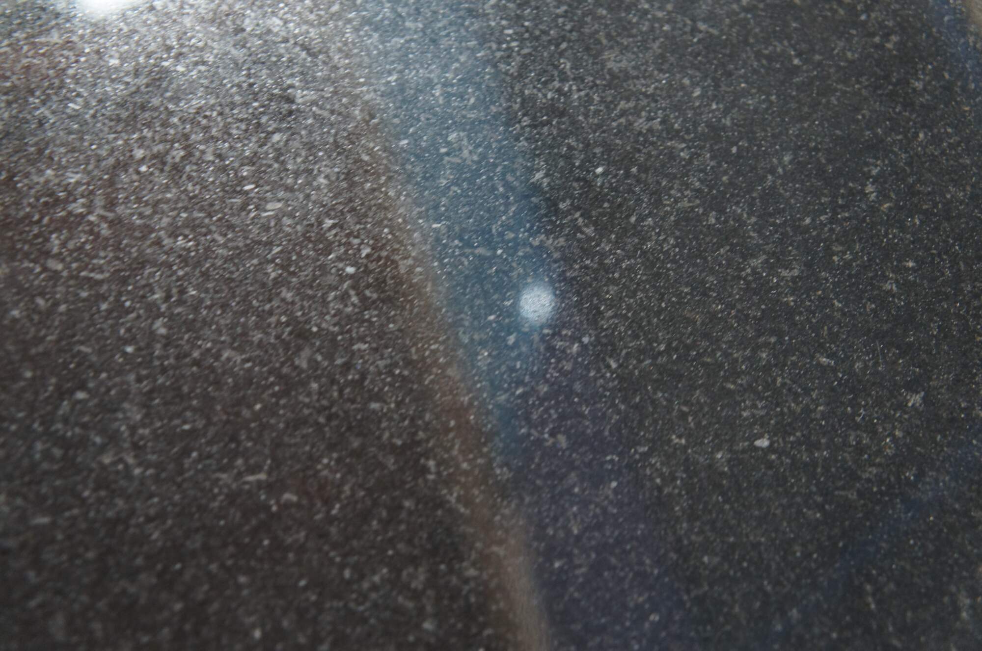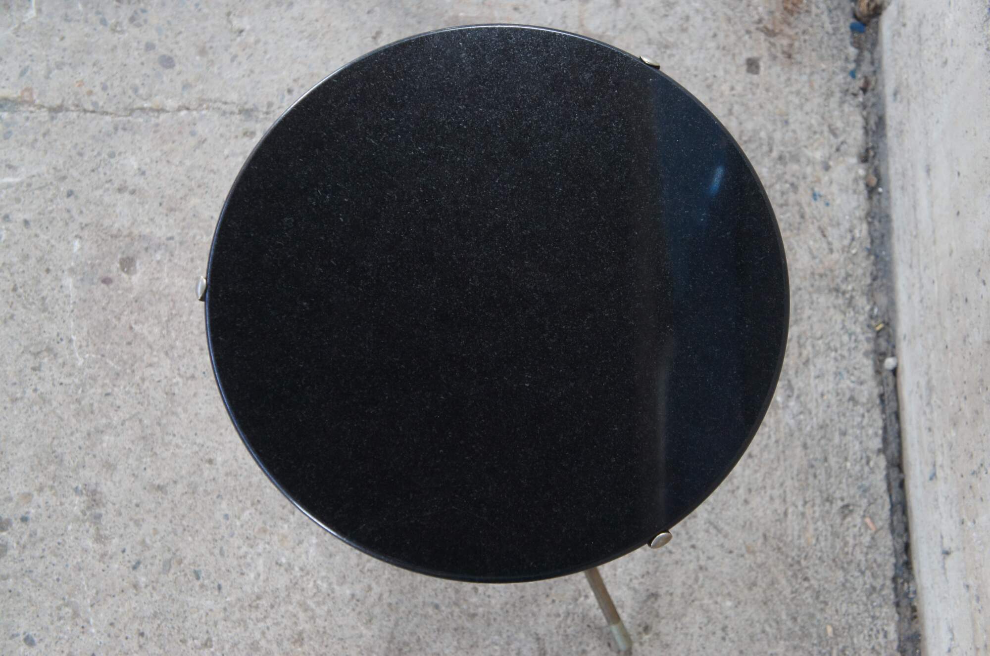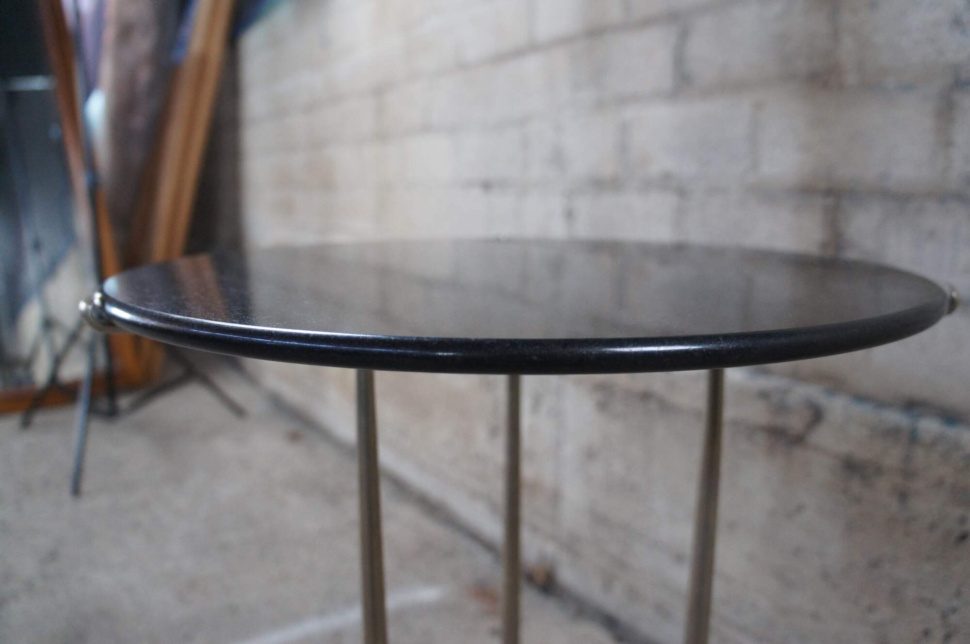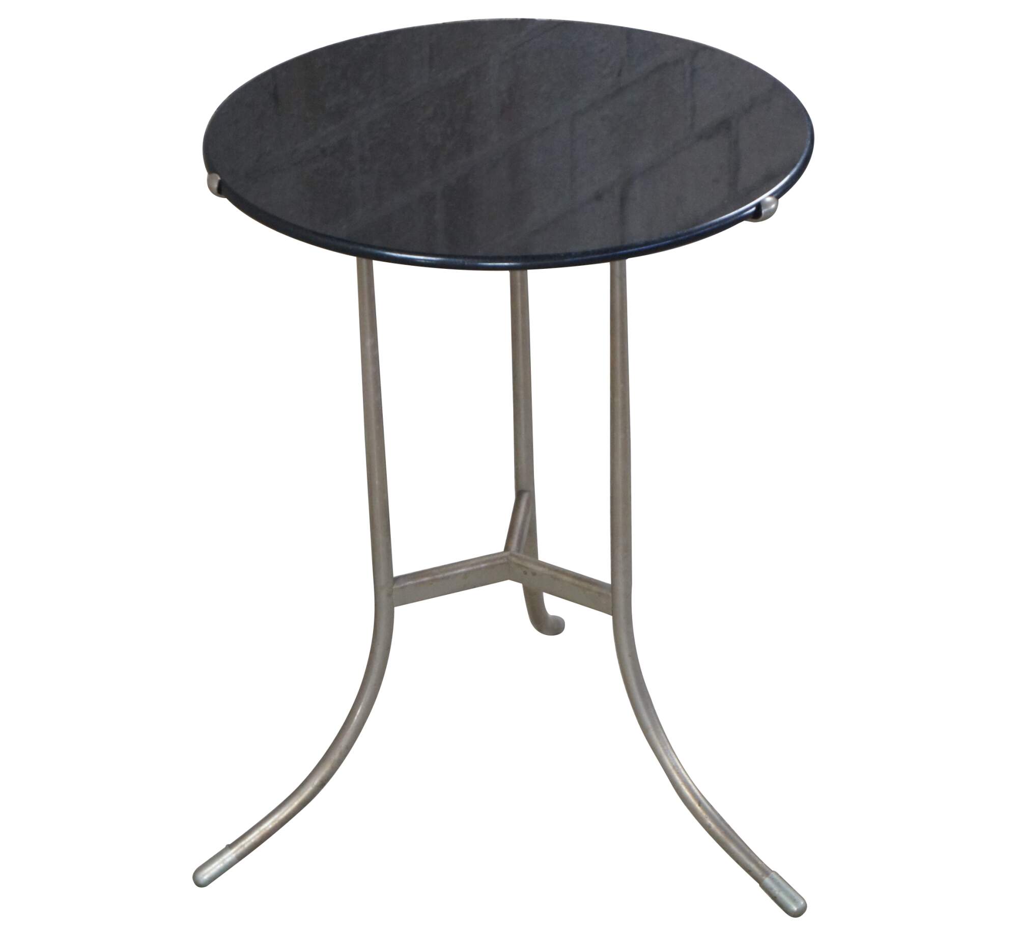 Mid century modern Cedric Hartman martini table. Made of metal / Nickel and black granite featuring round form with a three leg pedestal base. Signed on base. 990336.