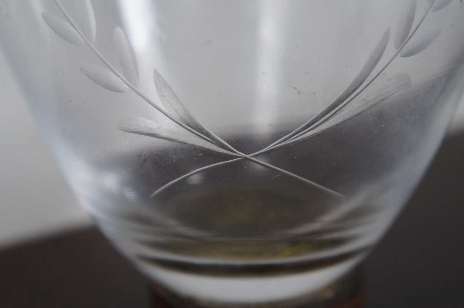 Vintage Jan Barboglio ethced glass bud vase with iron footed base.