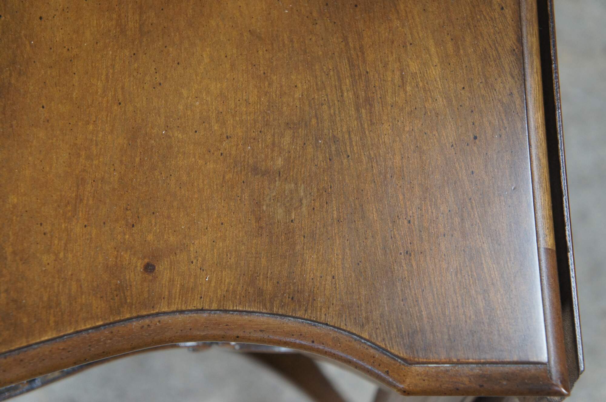 An impressive Baker Furniture Chippendale style mahogany pembroke table, circa 1970s. Featuring drop-leaf sides and a serpentine top with intricately carved open fretwork frieze. Supported by straight chamfered legs and joined by butterfly stretchers. Baker produced a very limited number of these tables as part of their historic Charlston collection. Supporting makers mark and limited edition badging underneath.