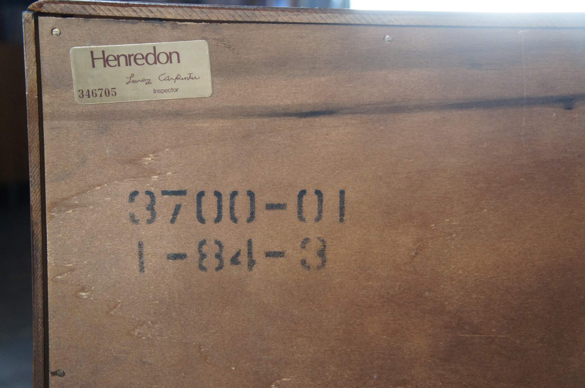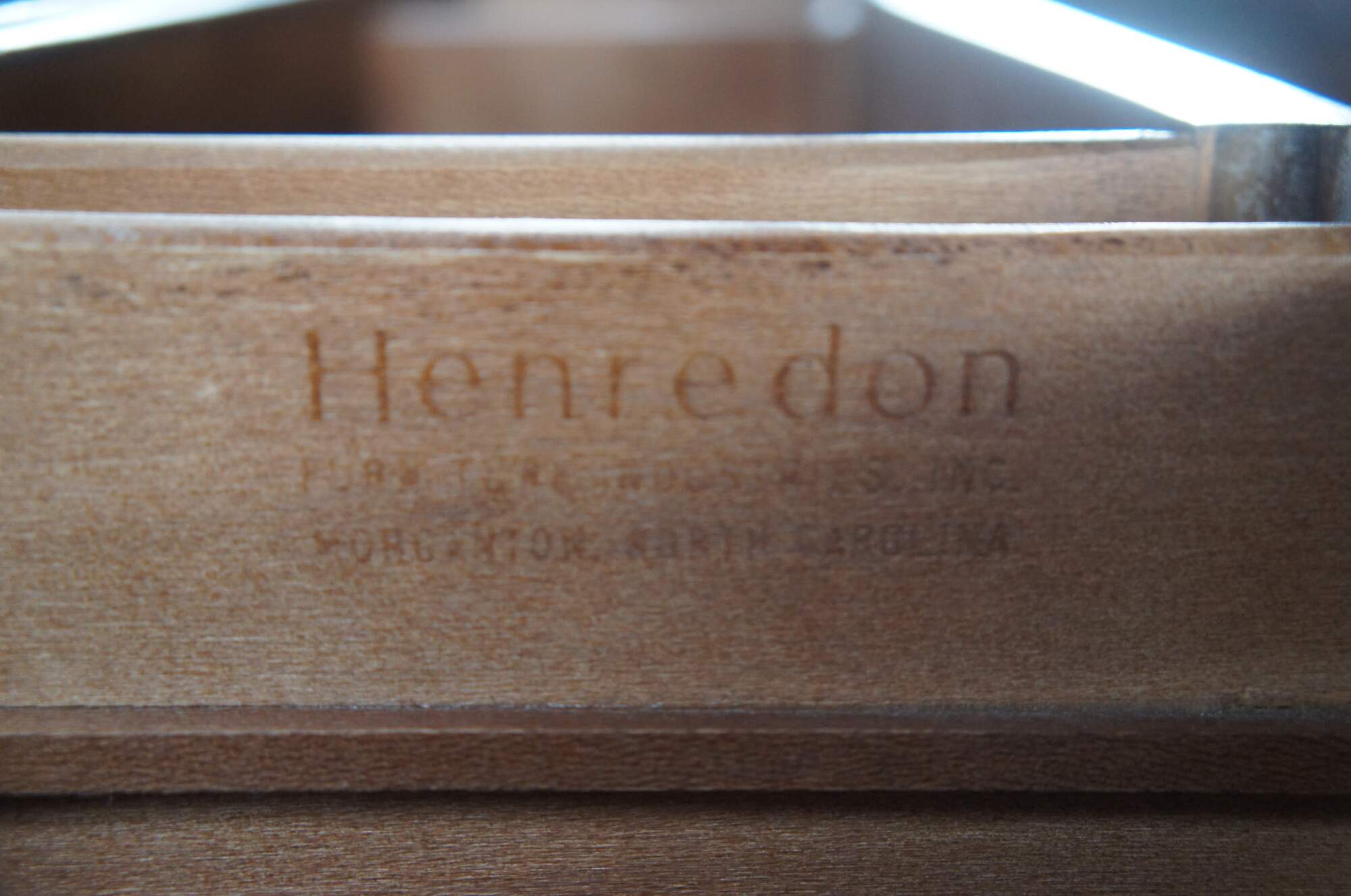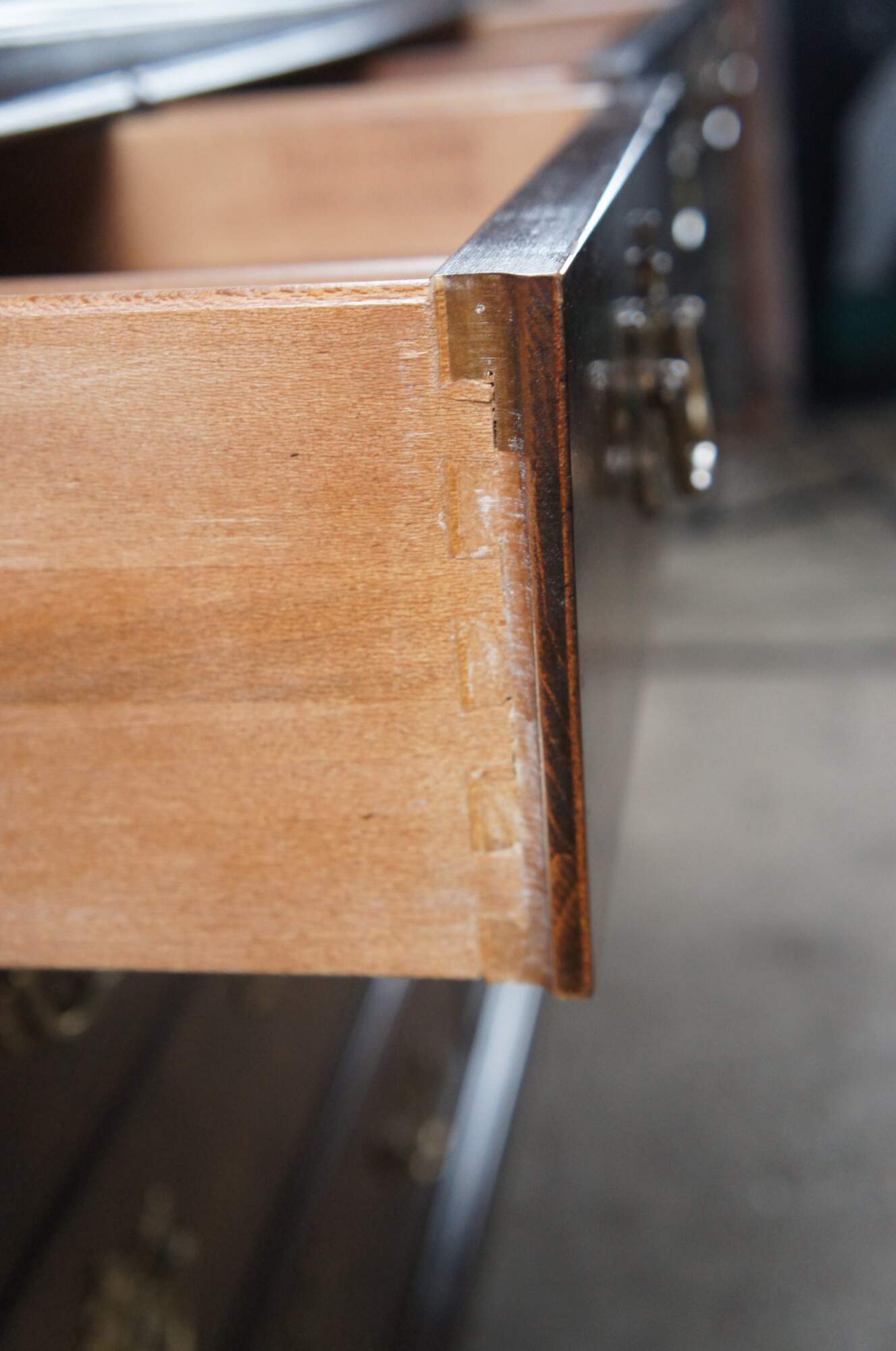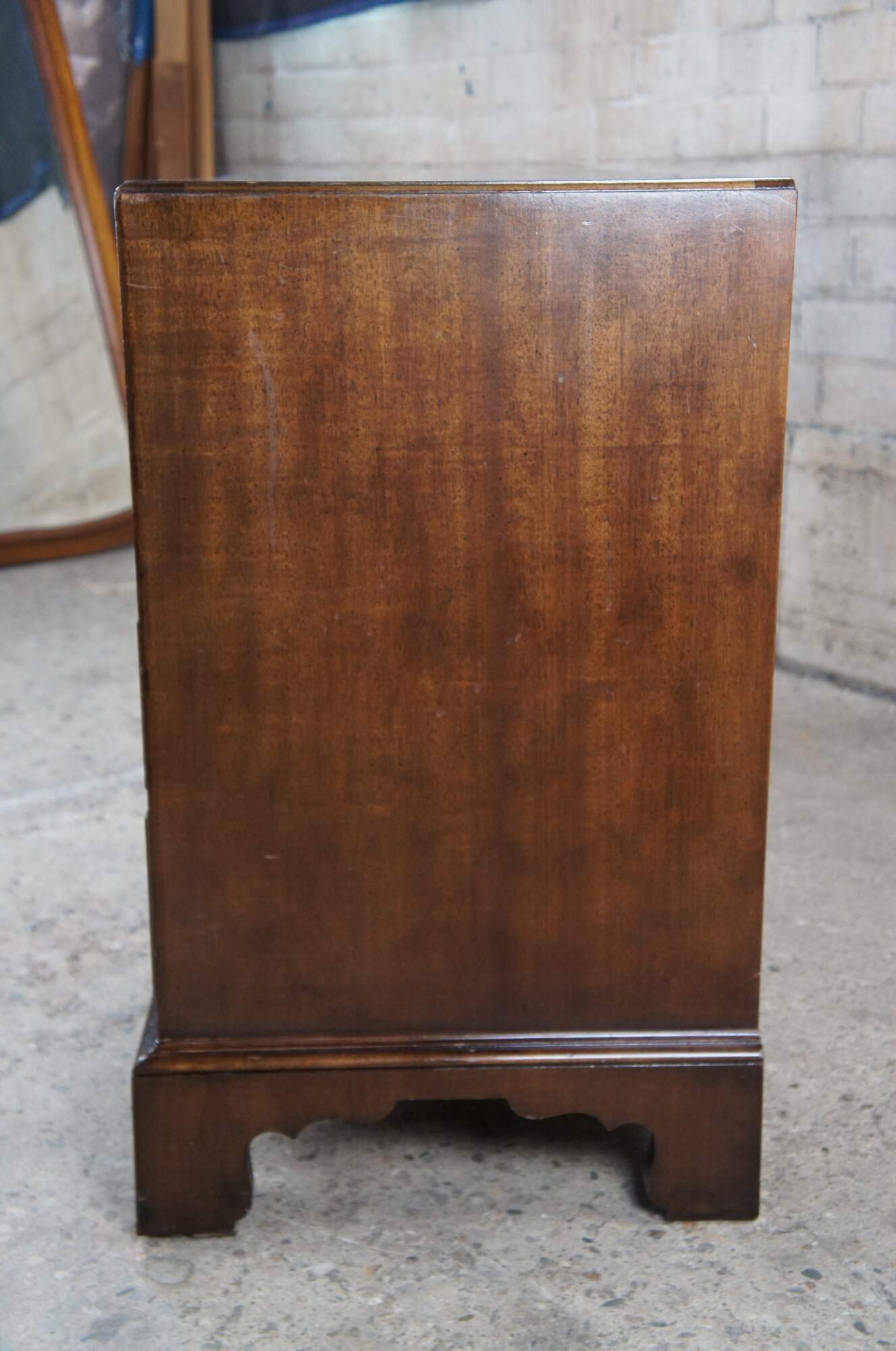 Vintage Henredon Chippendale and Georgian inspired double dresser 3400-01, circa 1984. Made from mahogany with 9 dovetailed drawers, pierced batwing bale hardware and faux escutcheon. The case is raised over bracket feet.