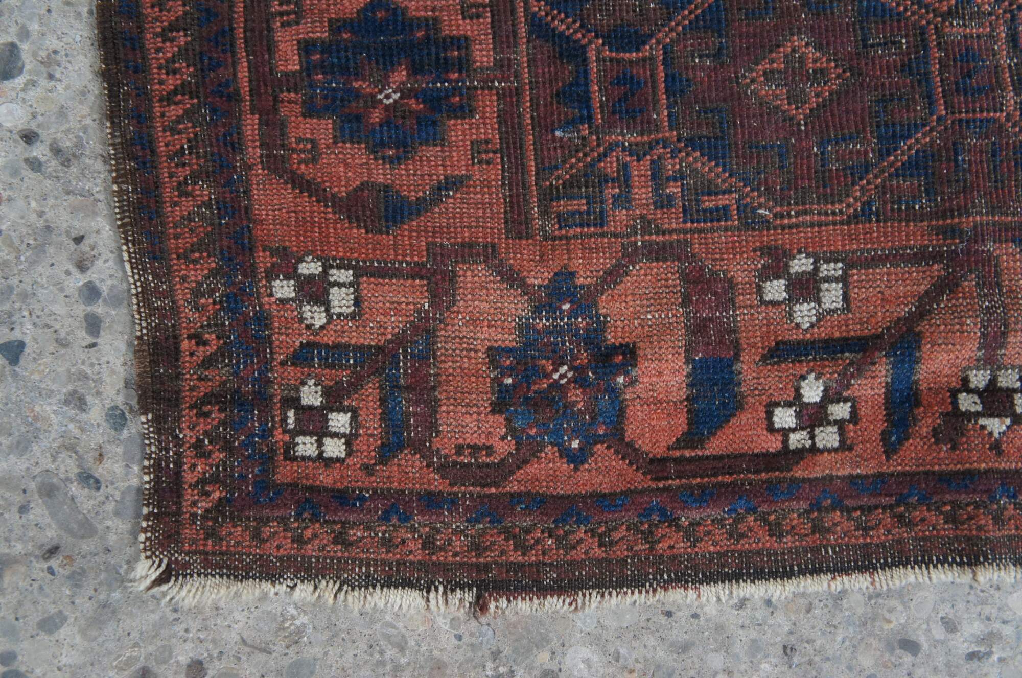 Red & Blue hand Woven wool prayer rug. Features floral accents and geometric medallions. 3 x 5