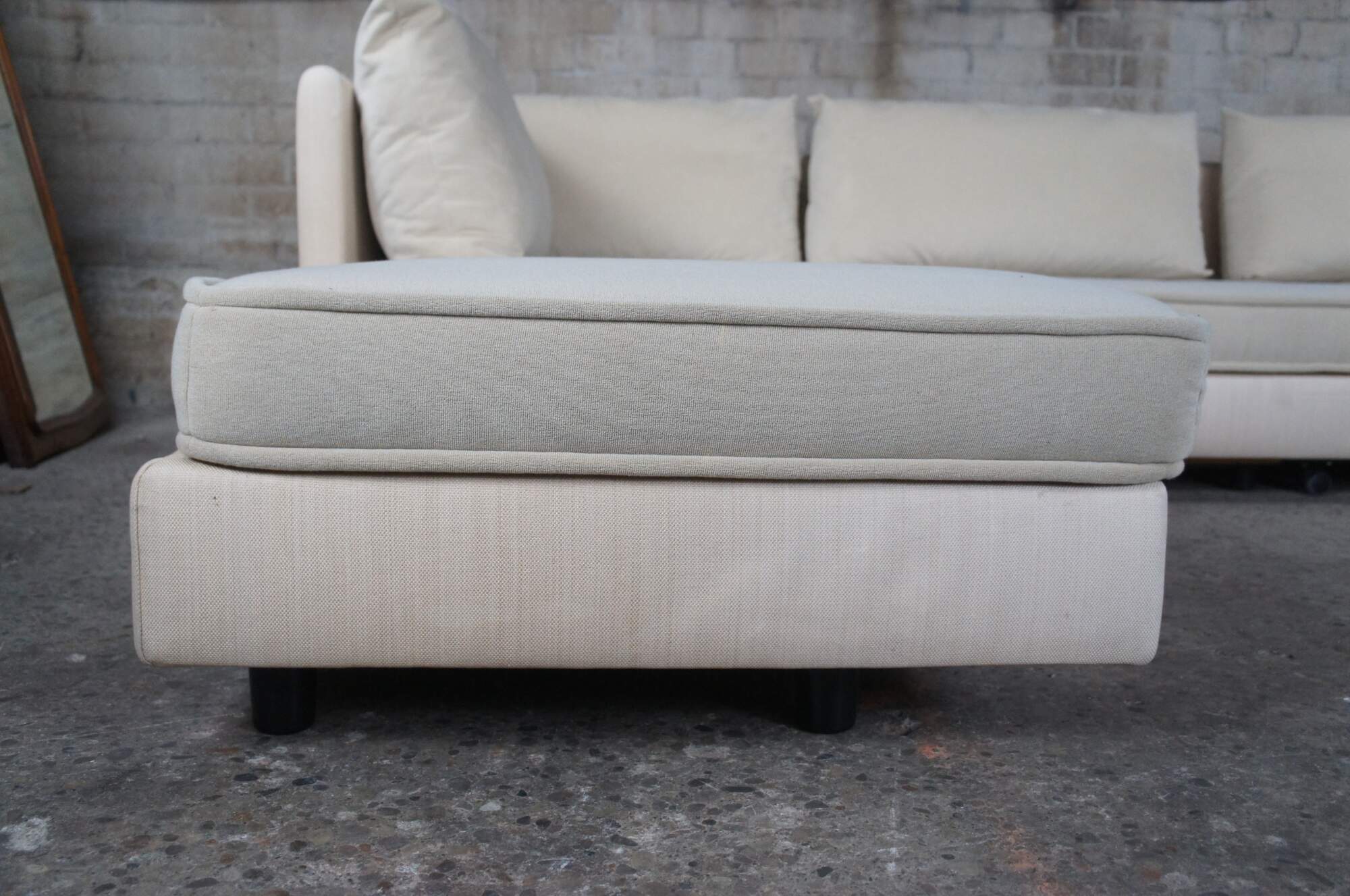 Ligne Roset Nomade II convertible sofa. Ligne Roset is a family business known for its unabashedly modern approach to design, an approach exemplified by this gorgeous sofa. Tastefully covered in a cotton-and-linen blend fabric. The sofa has a smooth feel and timeless details, The back side is positioned on a track allowing it to swivel out to create a queen bed or it can be used as two singles.