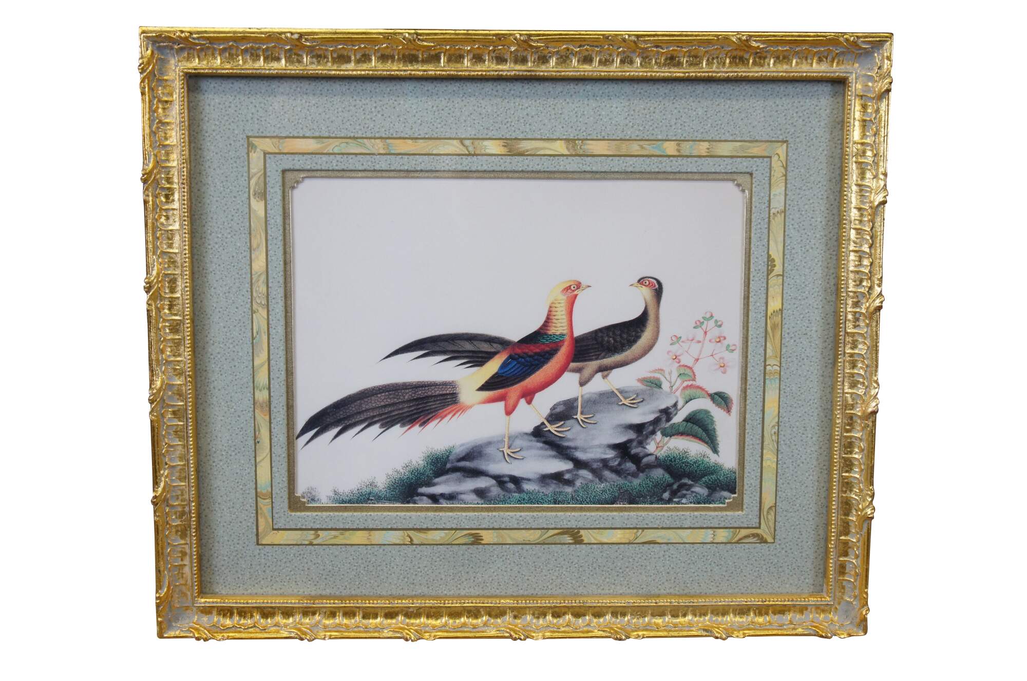 4 Vintage colorful bird portrait prints. Each is framed in gold. Marked Verena Design Inc along the back.