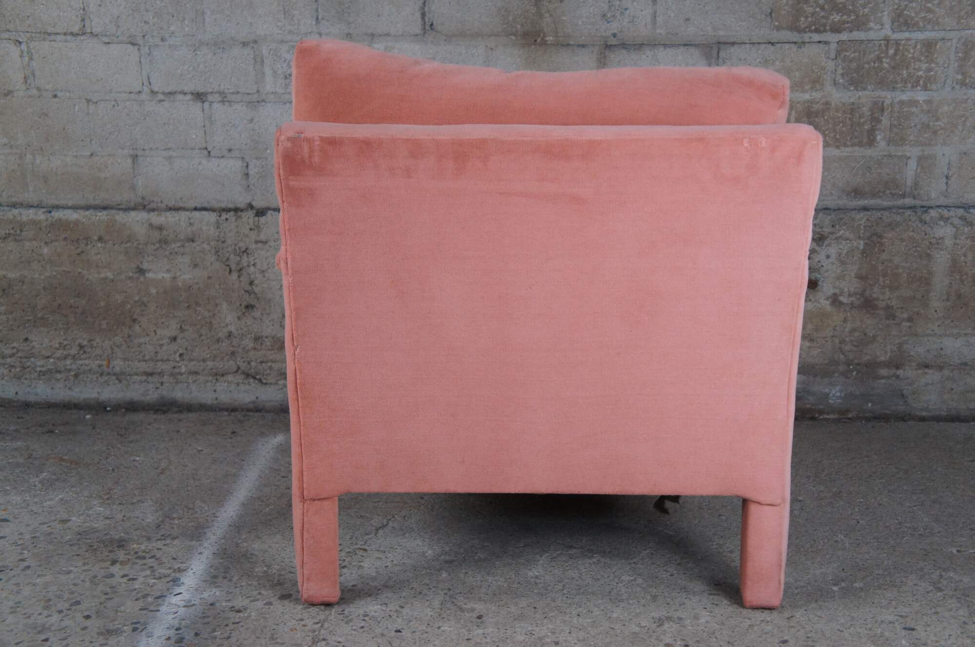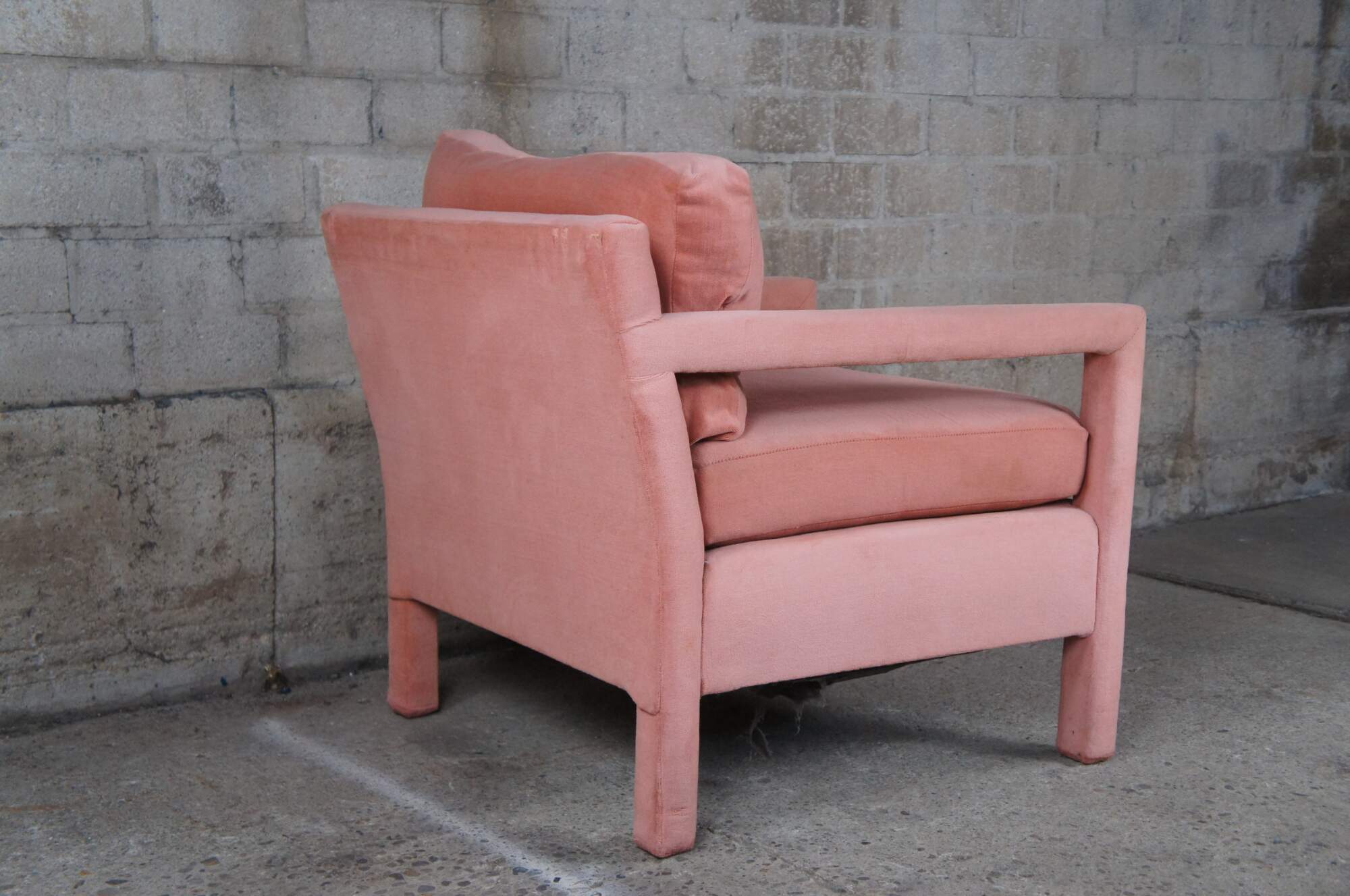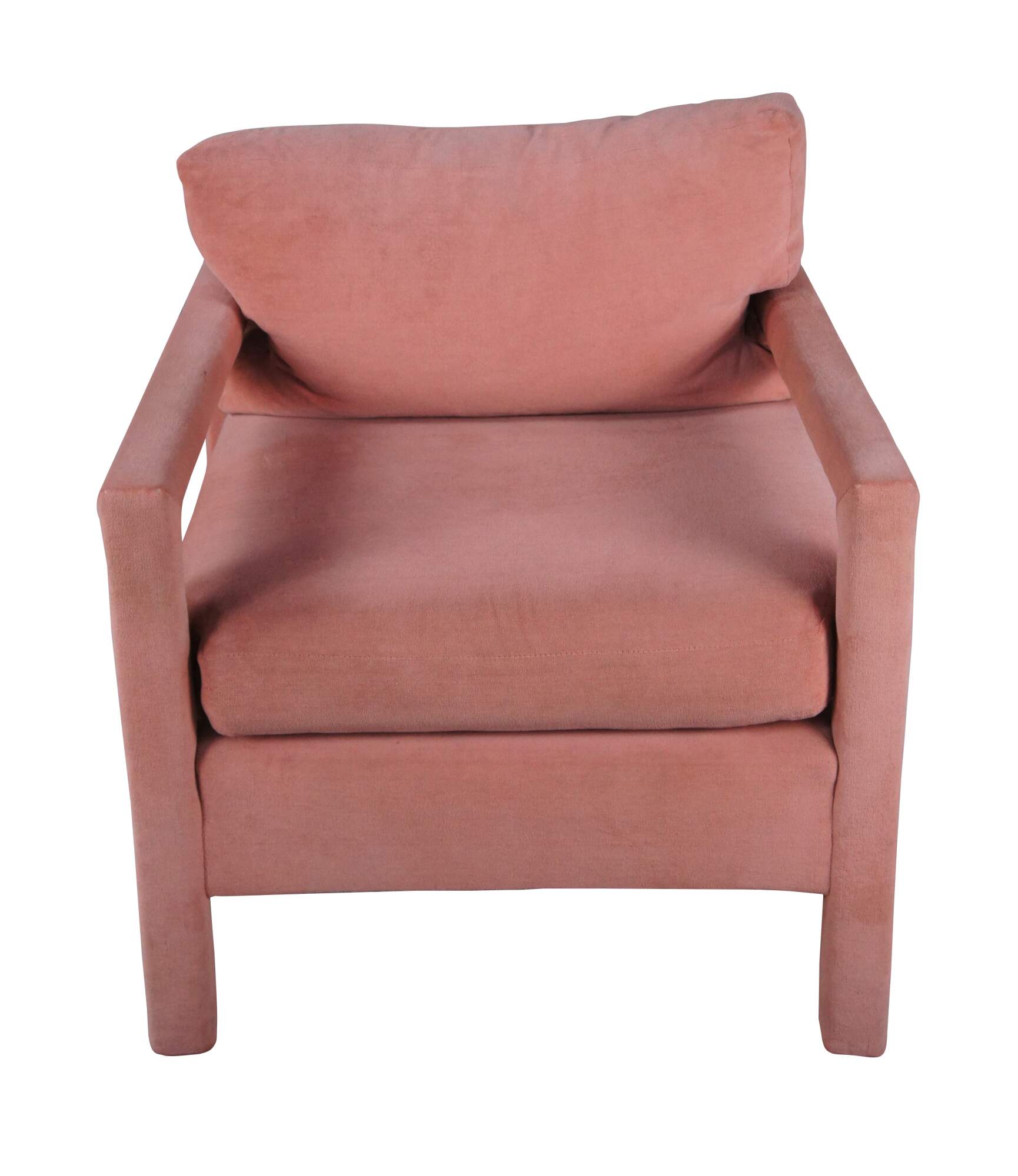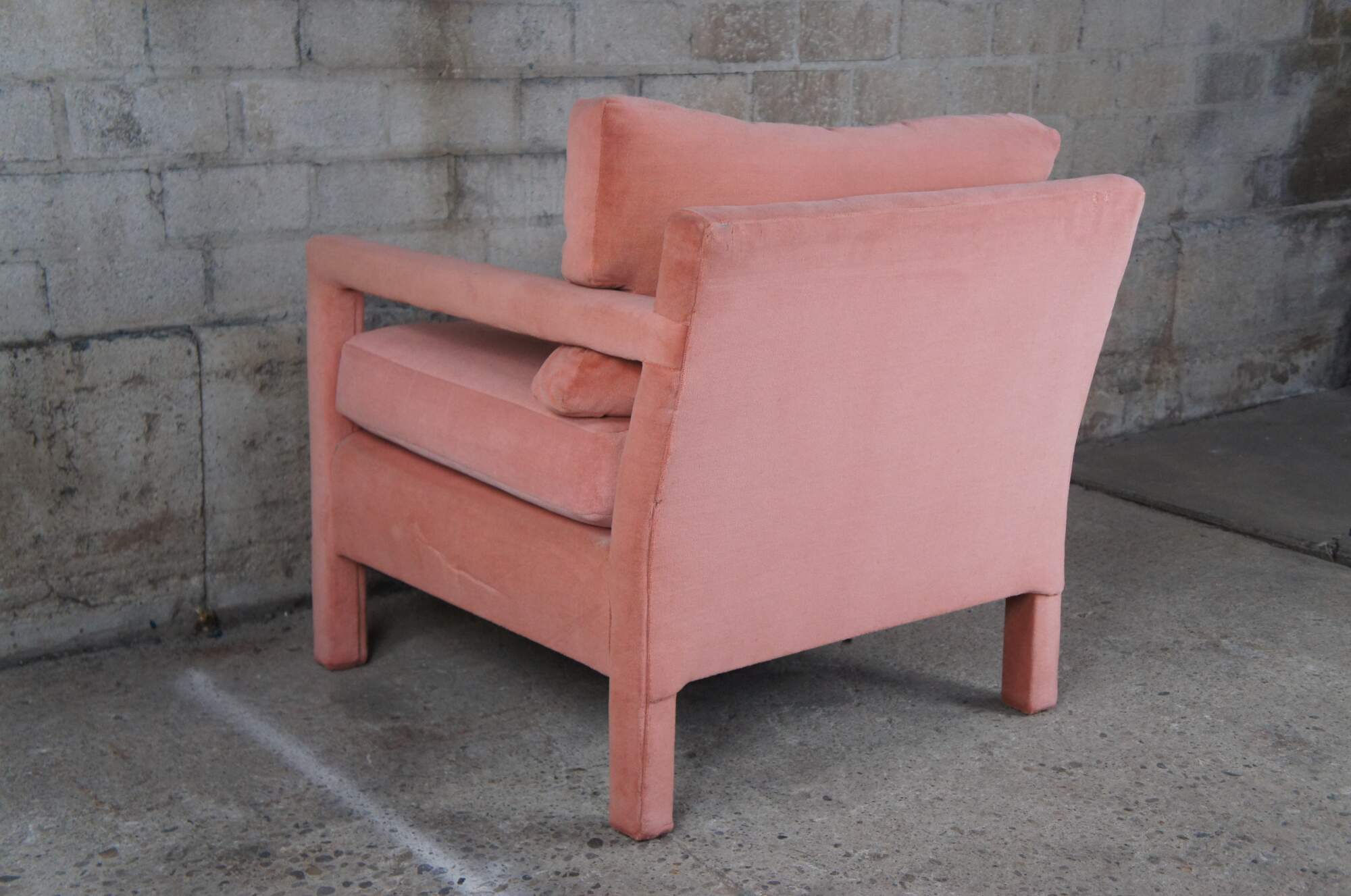 An eye catching Parsons style chair attributed to Milo Baughman for Thayer Coggins, circa 1970s. Features a cubed frame upholstered in a posh pink mohair.