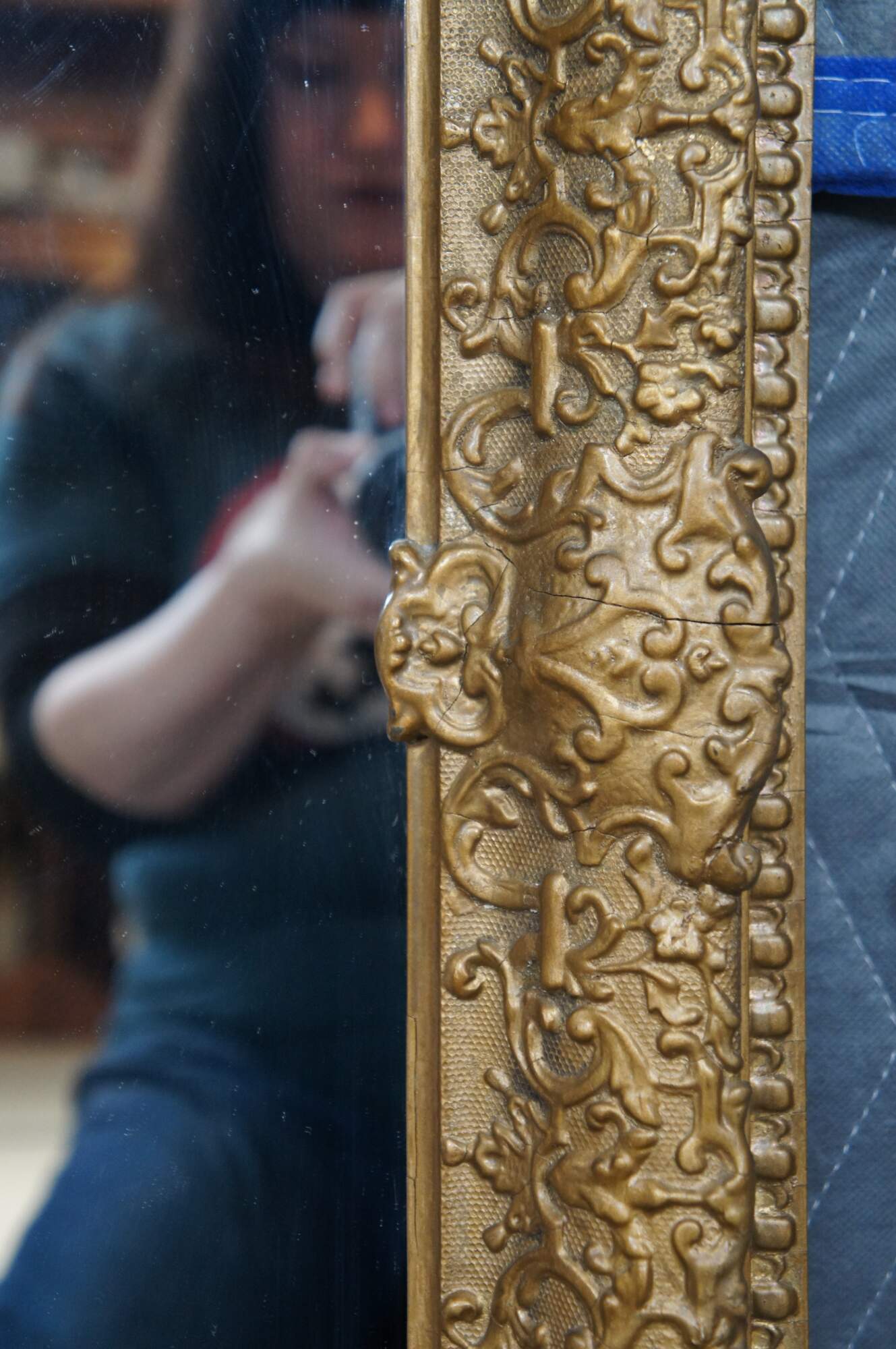 Good Overall - Cracks and chips to frame; patch silver loss to mirror