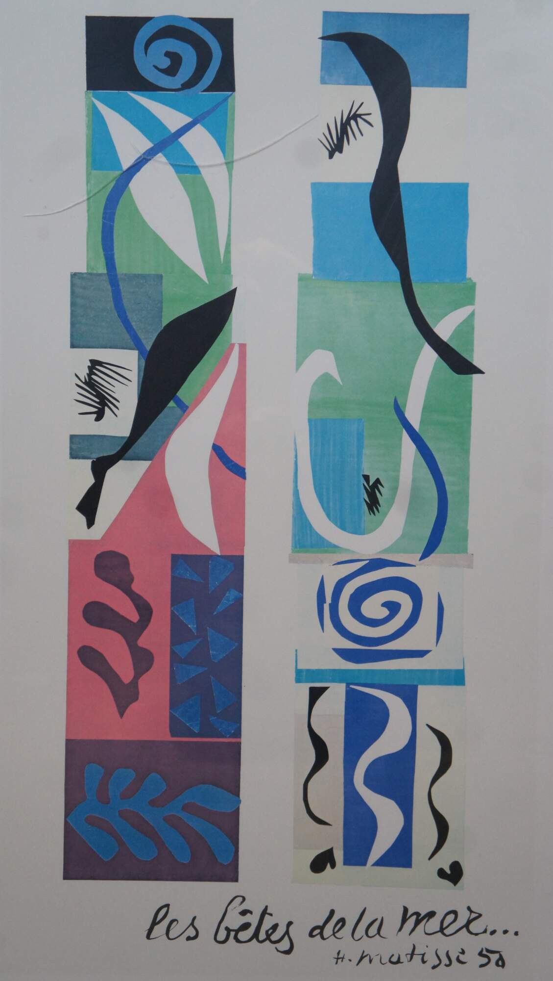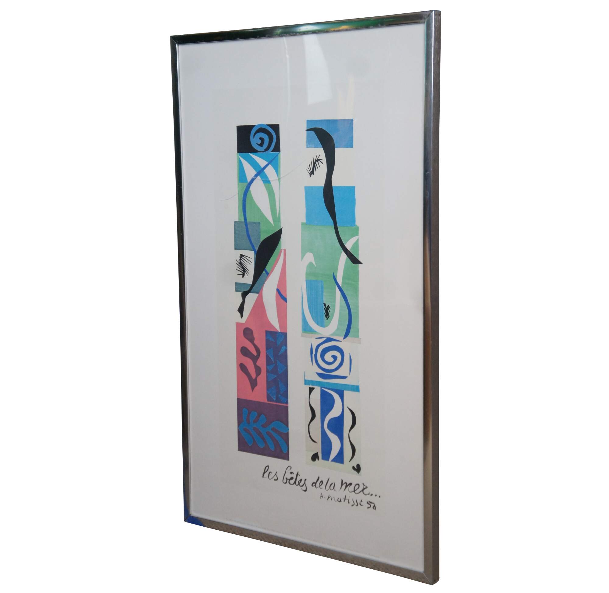 Vintage framed print of Henri Matisse’s “Beasts of the Sea” (1950), housed at the National Gallery of Art, Washington, D.C.
