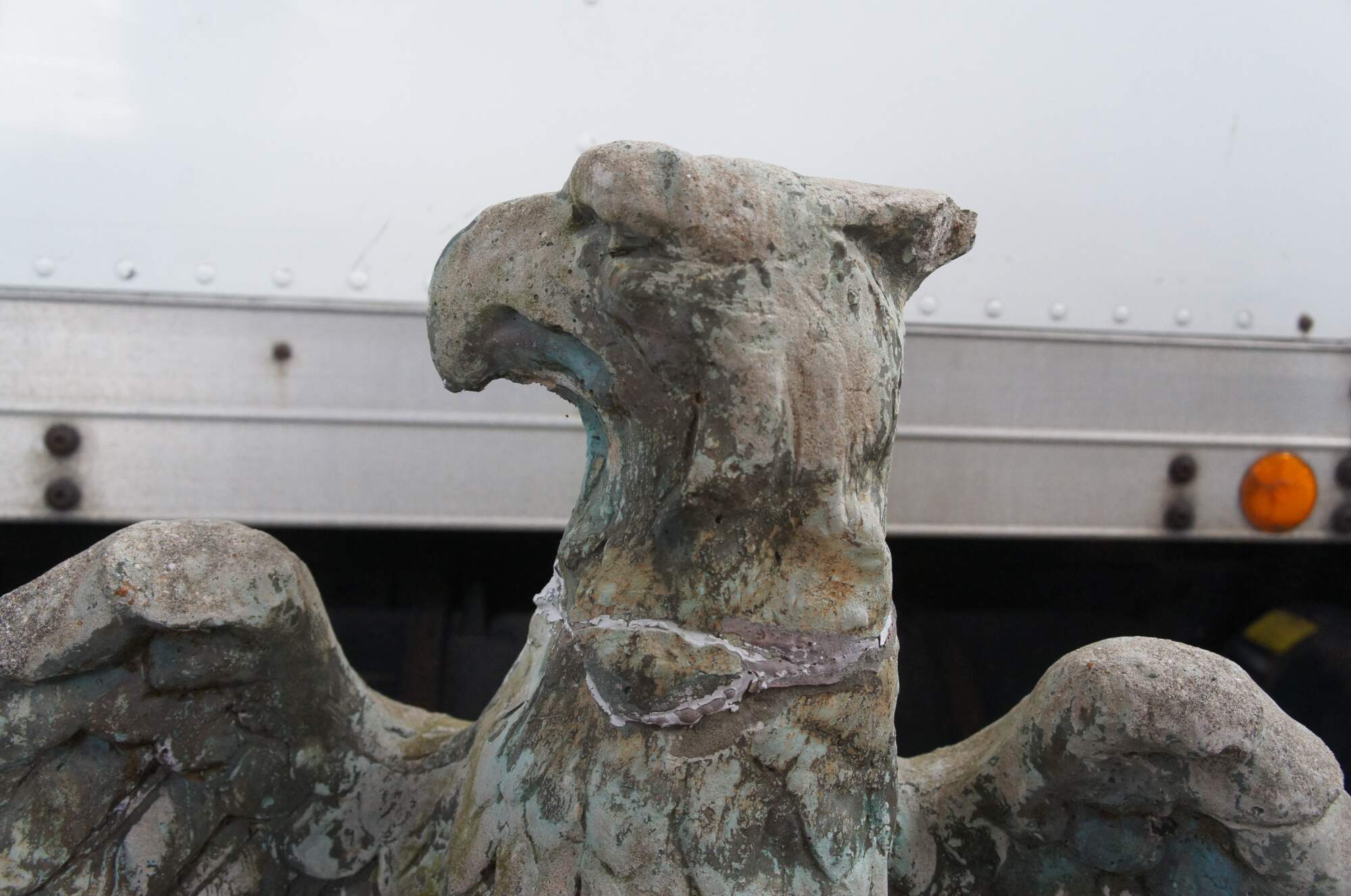 Good Overall; The eagles have had past repairs to the necks and wings. There are also chips to the wings and a chip to the back of the head one one.