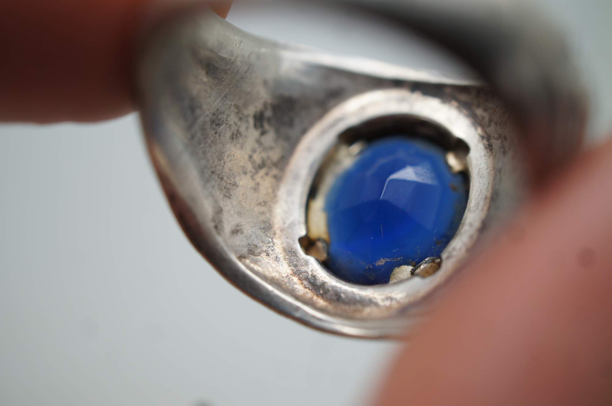 Good Overall - Some tarnish; couple scrapes to stone. Chip along edge of silver