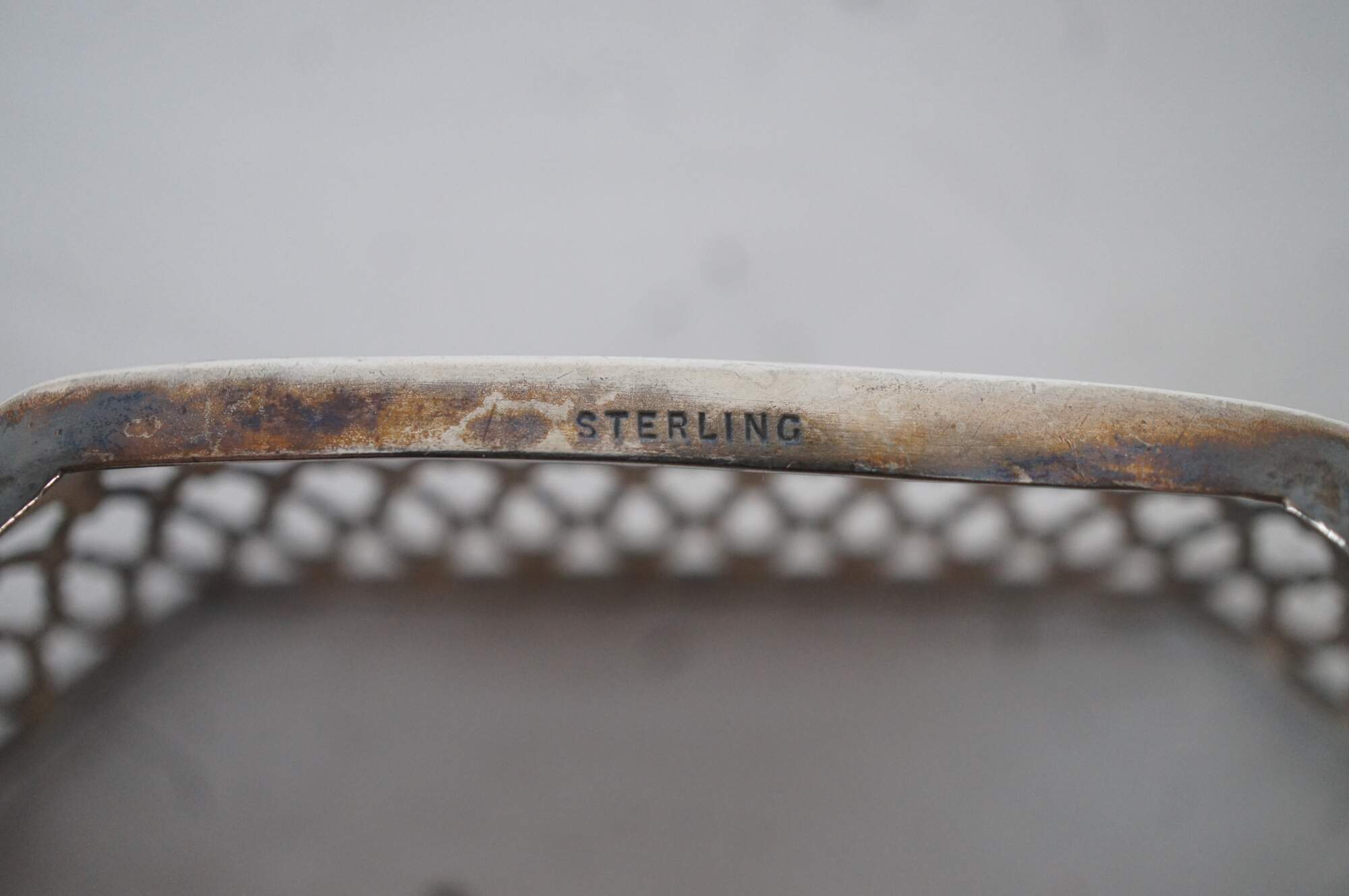 Good Overall - Light tarnish; flea bite chips/light scrapes to glass; one large interior crack on one glass