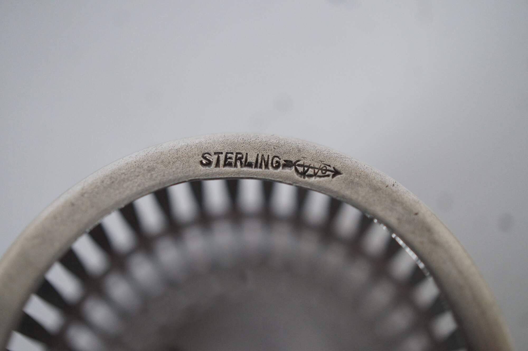 Antique Webster pierced sterling silver overlay for a condiment cup or toothpick holder. No glass insert.