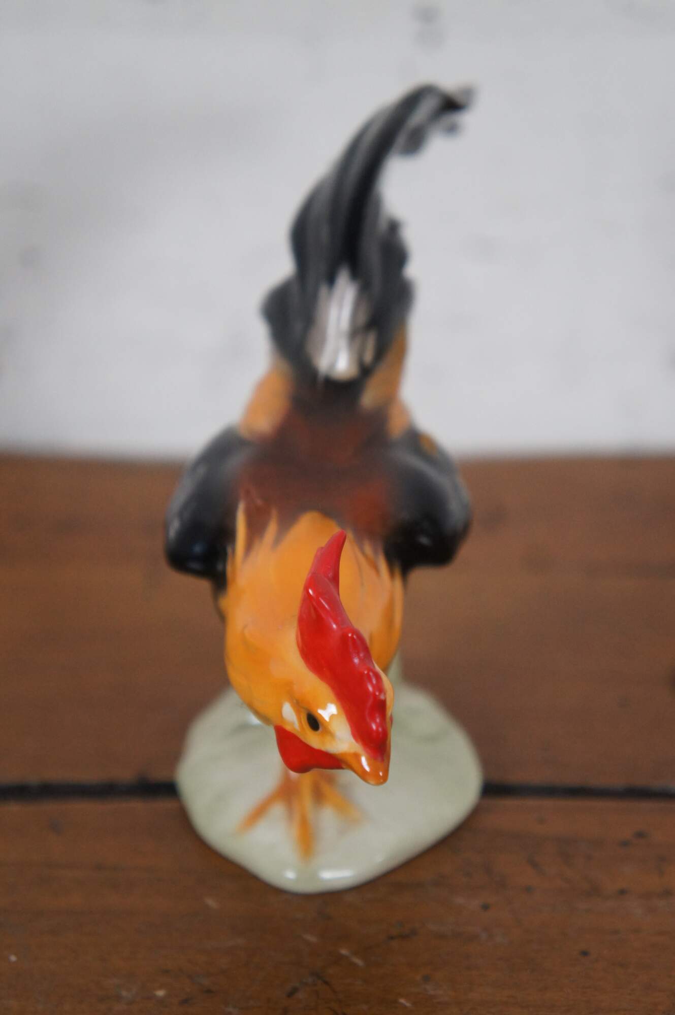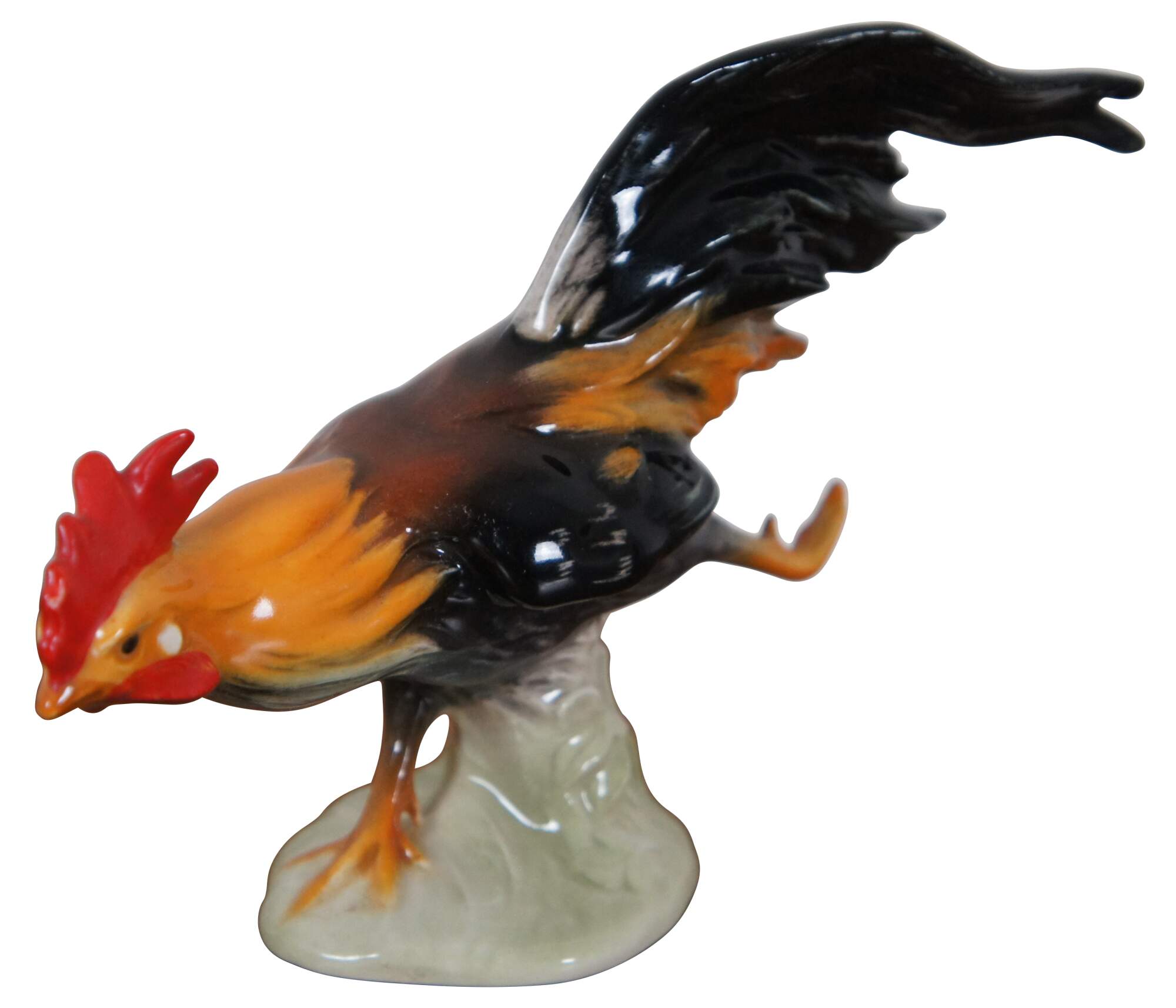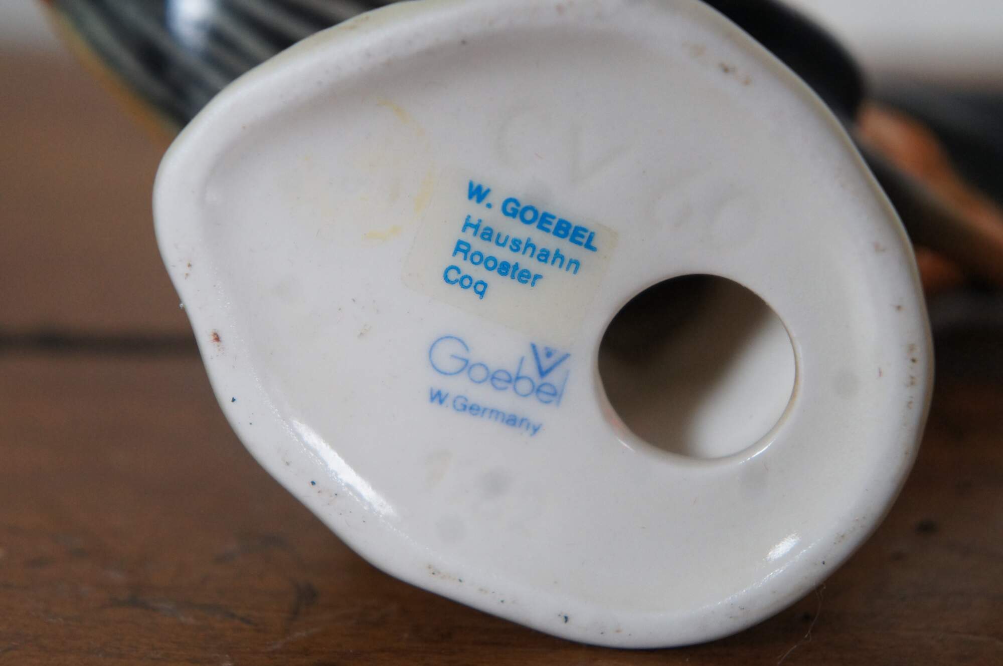 Vintage 1970s Goebel porcelain figurine of a running rooster / gockel. Sticker label on base reads W. Goebel - Haushahn - Rooster - Coq. Incised with product number CV 60. Stamped with the TMK-5 Last Bee Mark, circa 1972-1979.