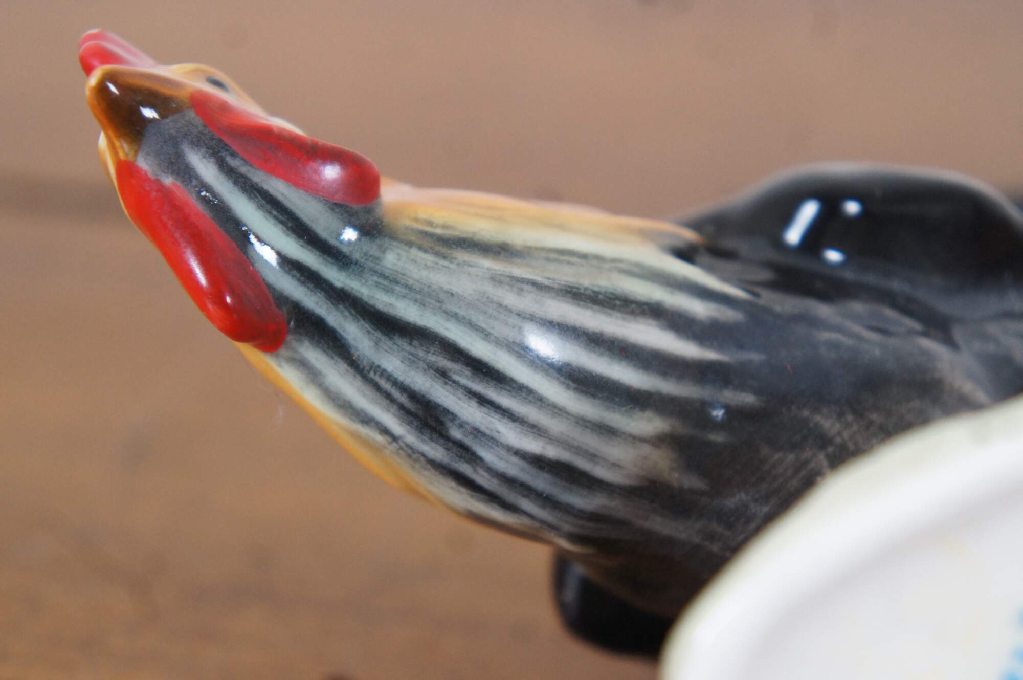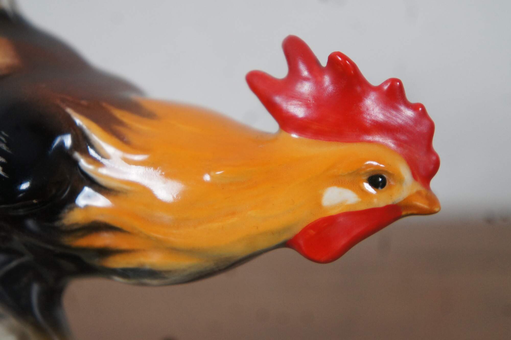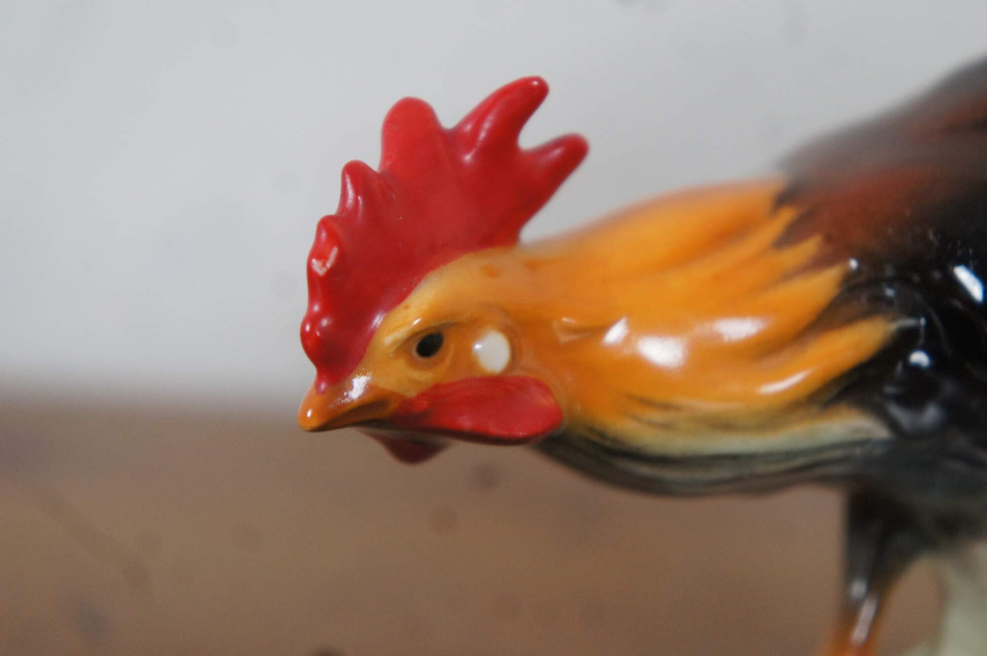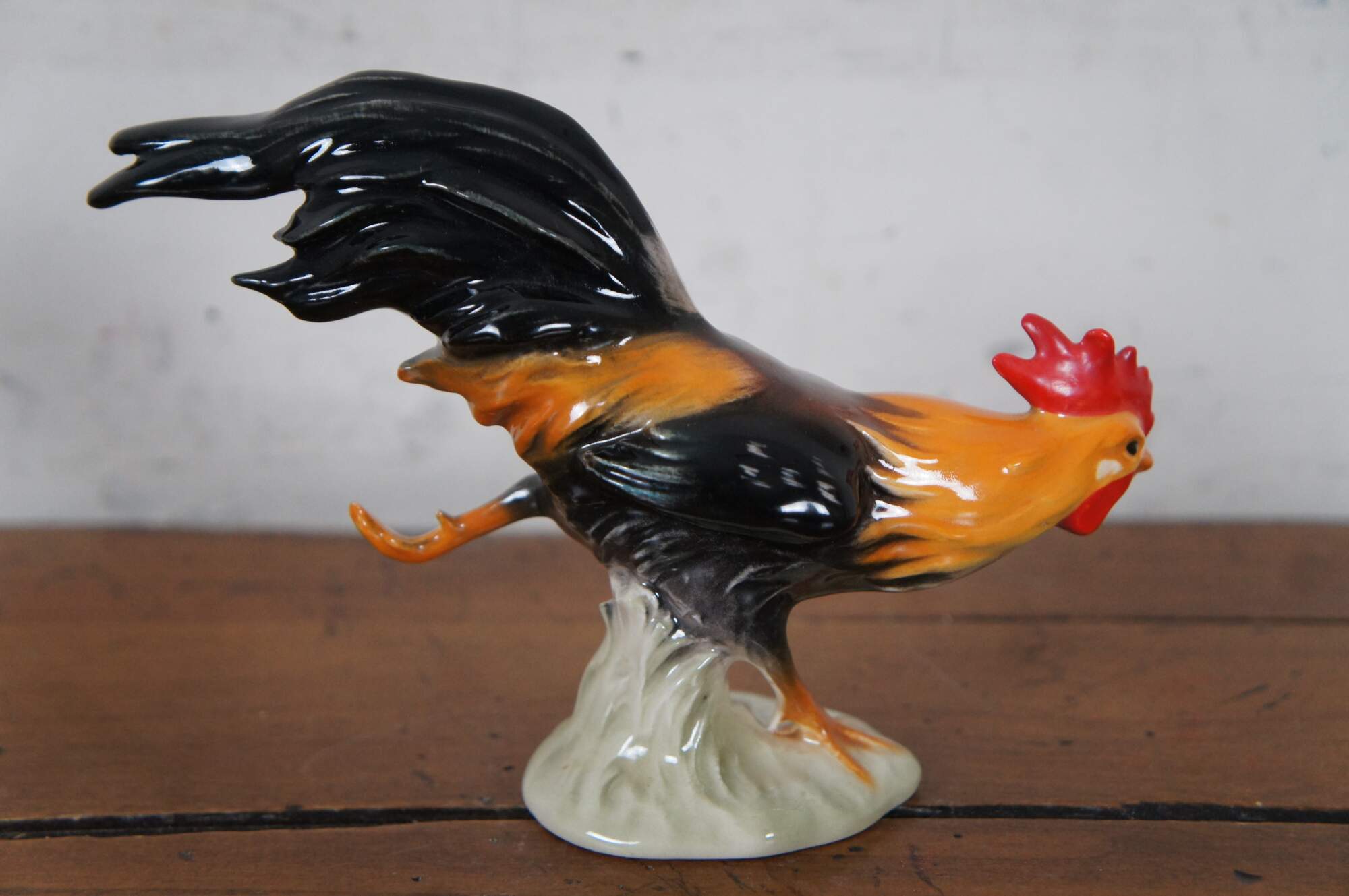 Vintage 1970s Goebel porcelain figurine of a running rooster / gockel. Sticker label on base reads W. Goebel - Haushahn - Rooster - Coq. Incised with product number CV 60. Stamped with the TMK-5 Last Bee Mark, circa 1972-1979.