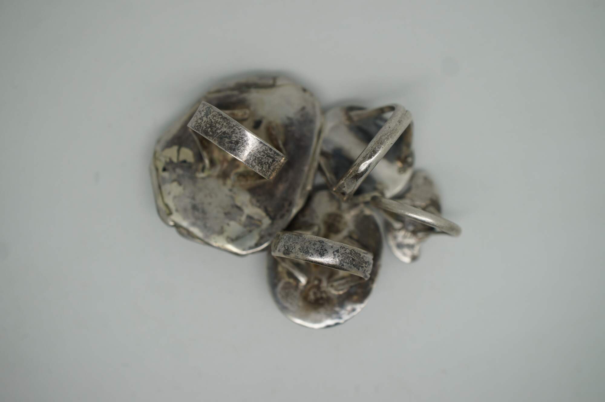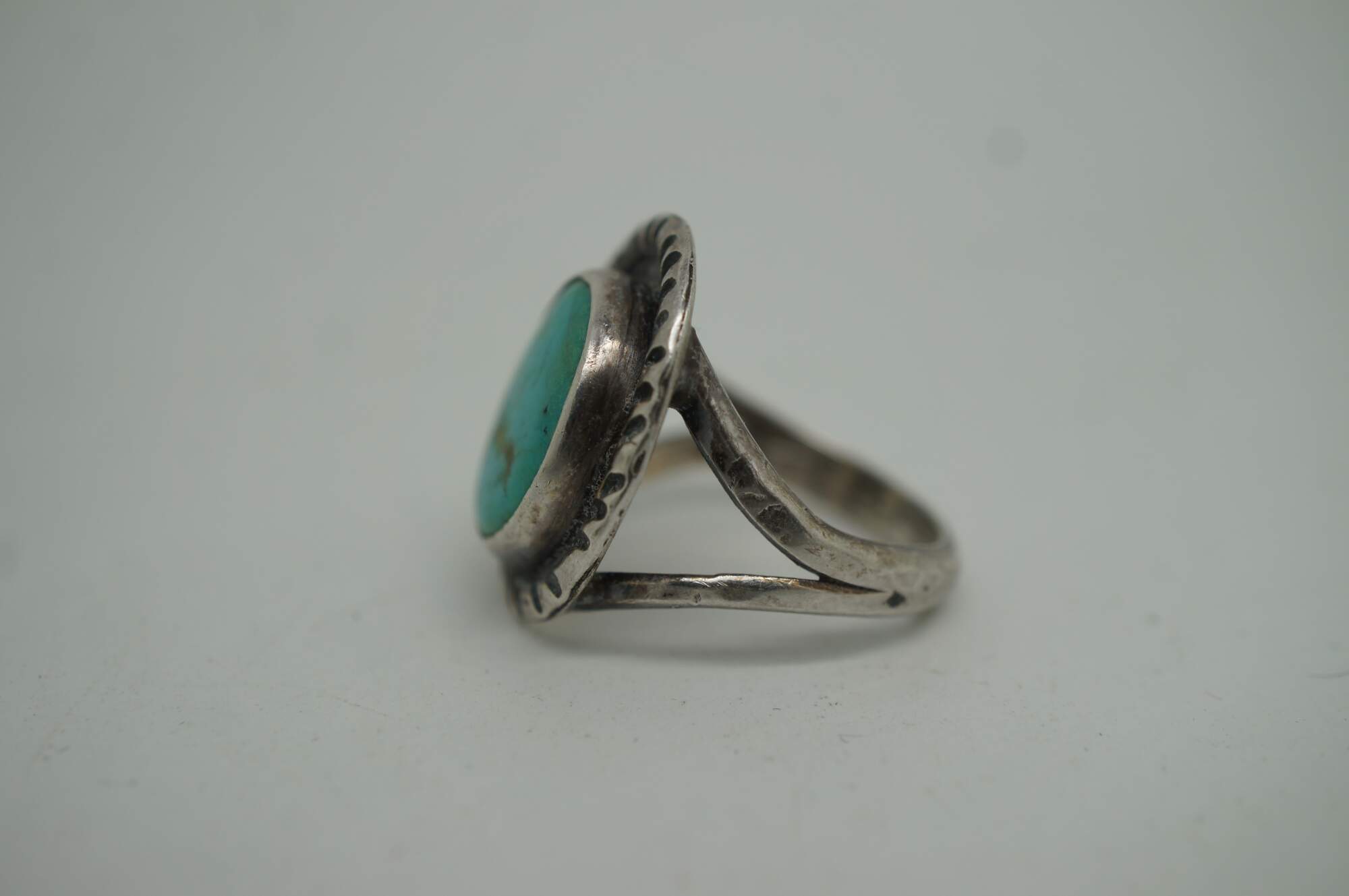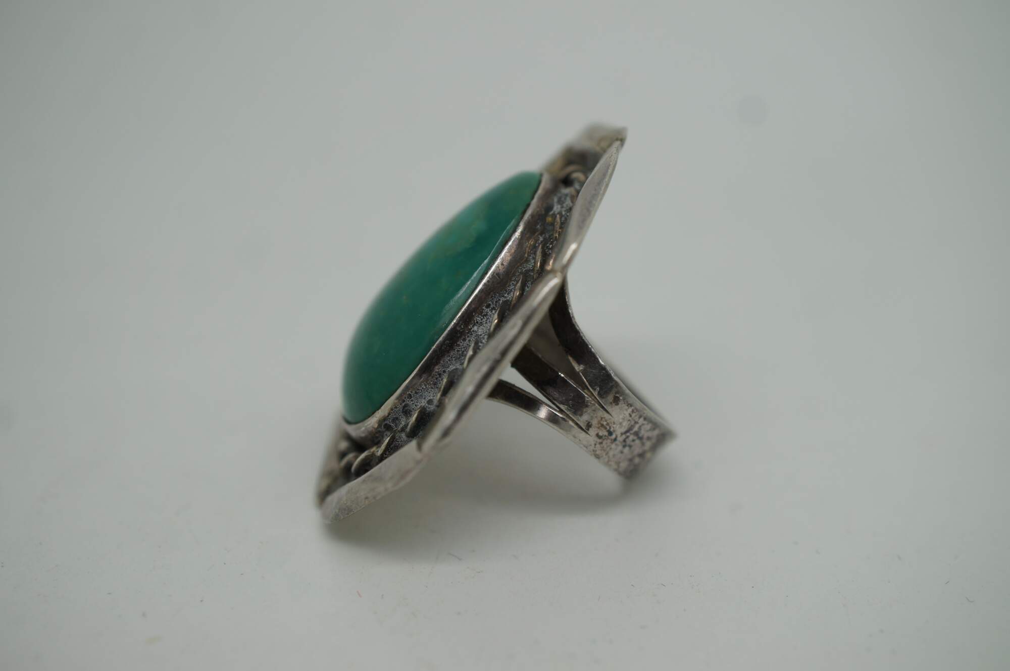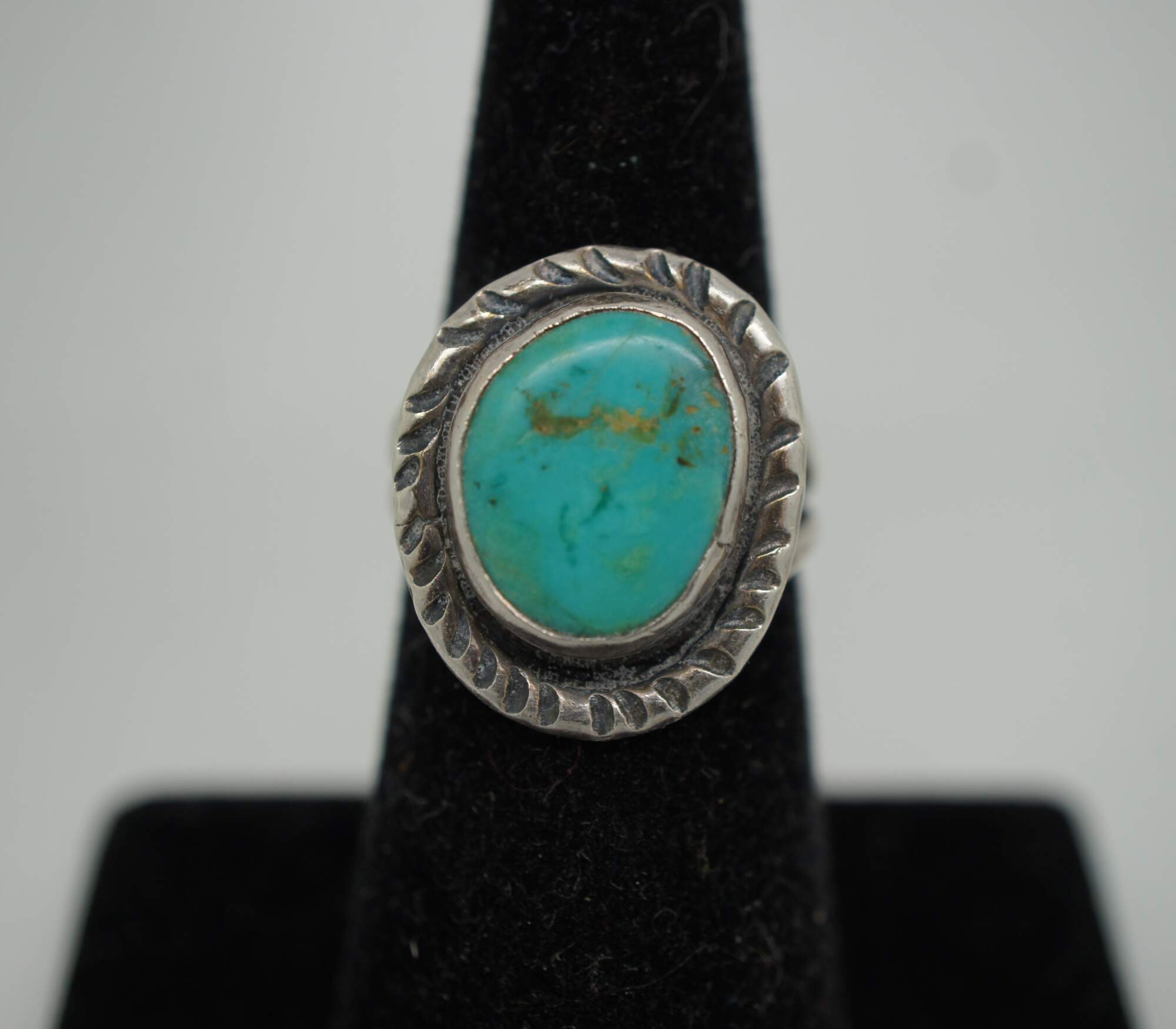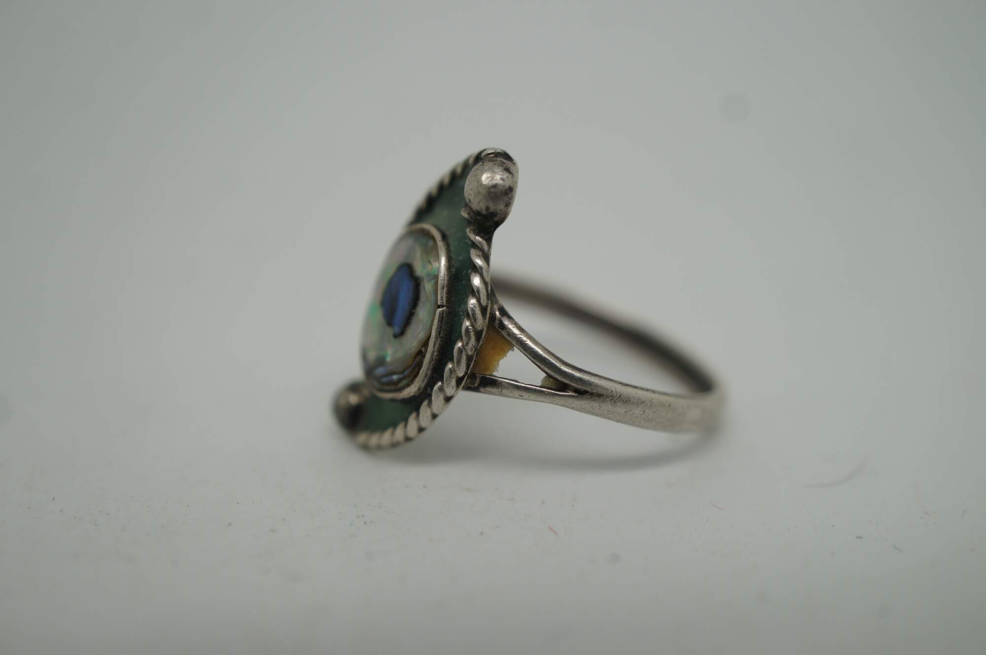 Vintage Southwestern / Native American style sterling silver cocktail rings set with turquoise and abalone shell and rope twist design.