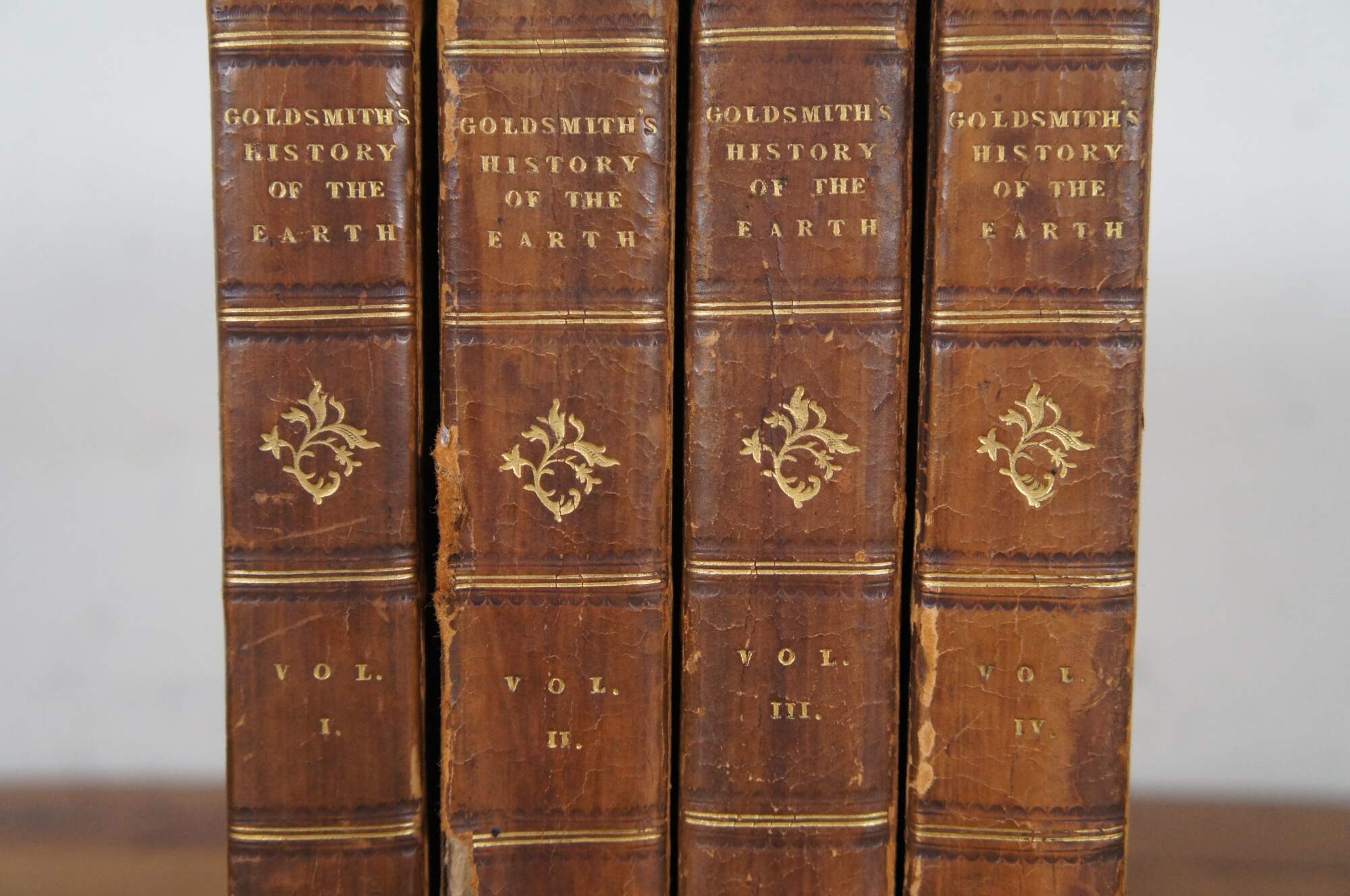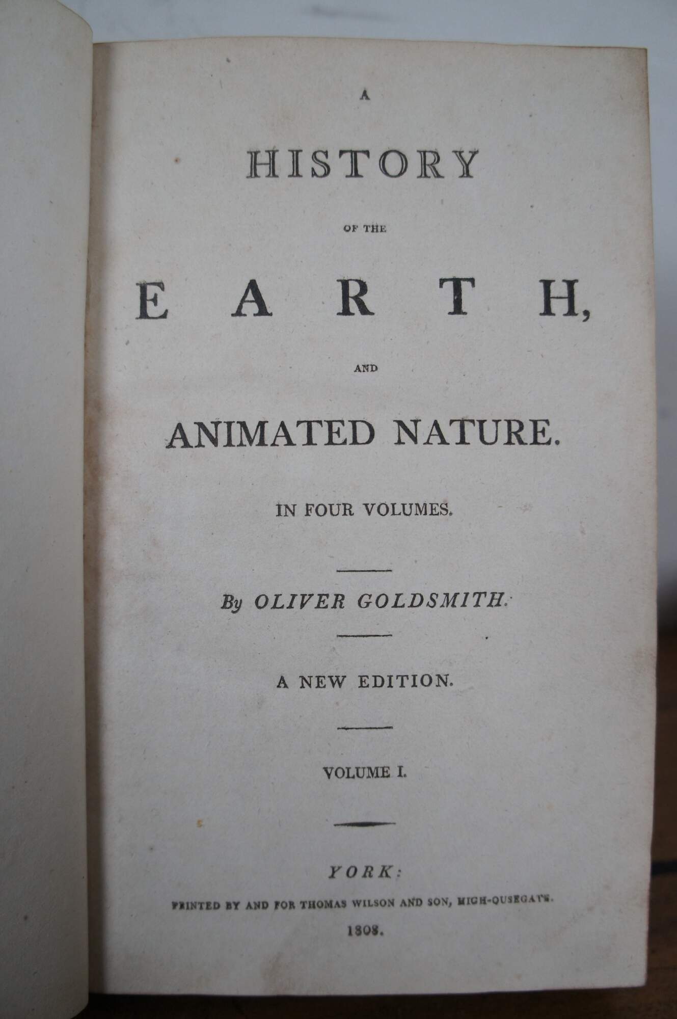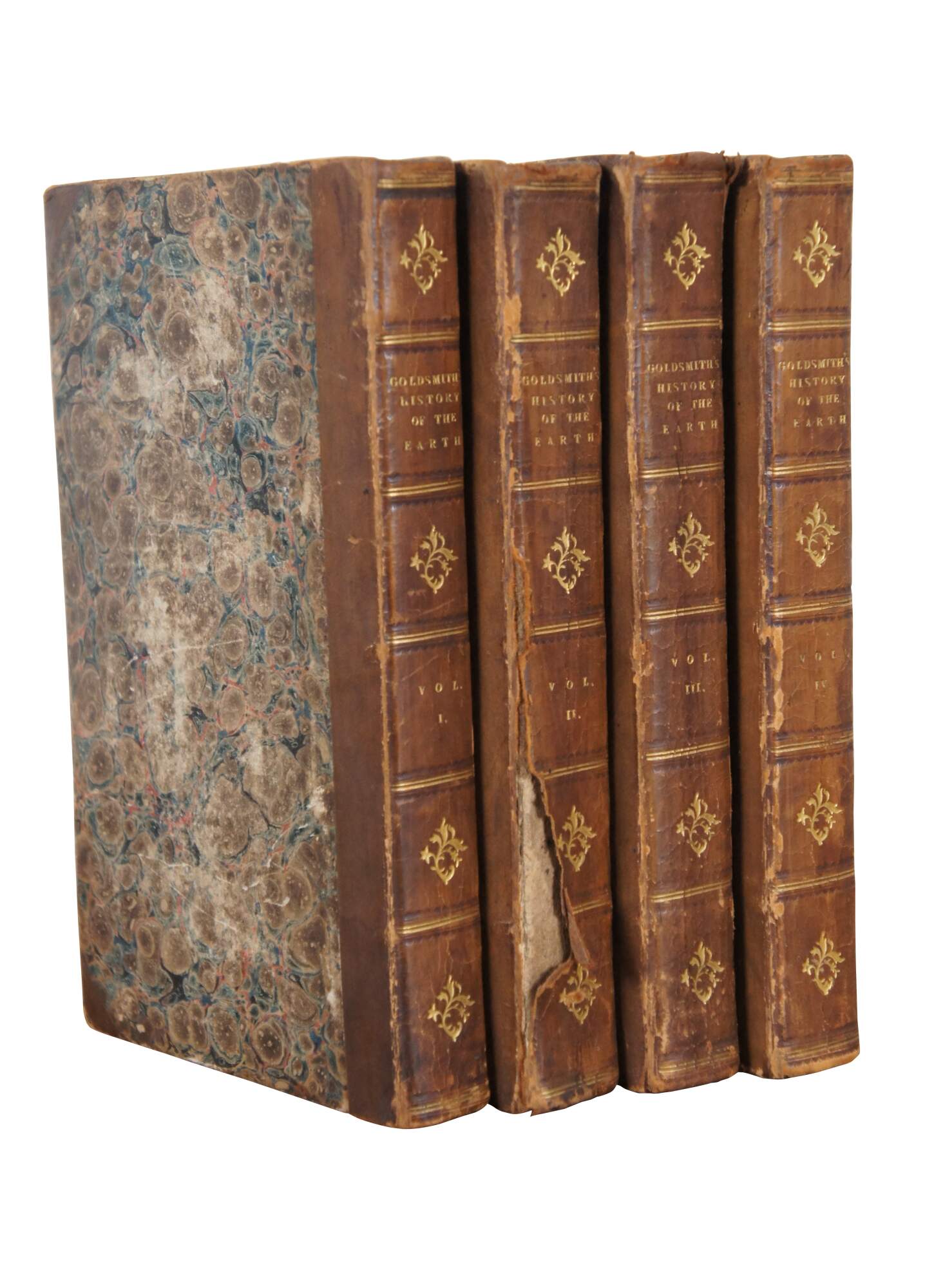 Early 19th century four volume hard cover book set – marbled board covers with leather spine. A History of the Earth and Animated Nature – In Four Volumes – by Oliver Goldsmith – A New Edition – Volumes I-IV – York, Printed by and for Thomas Wilson and Son - 1808