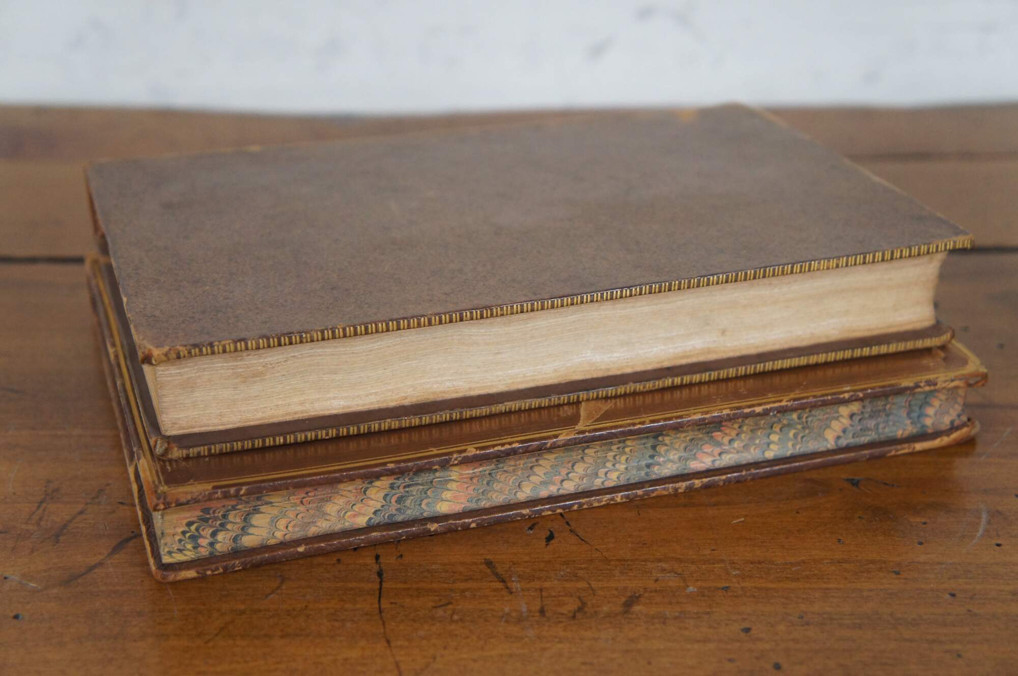 Set of two early 19th century leather bound hard cover books, one with marbled page edges.