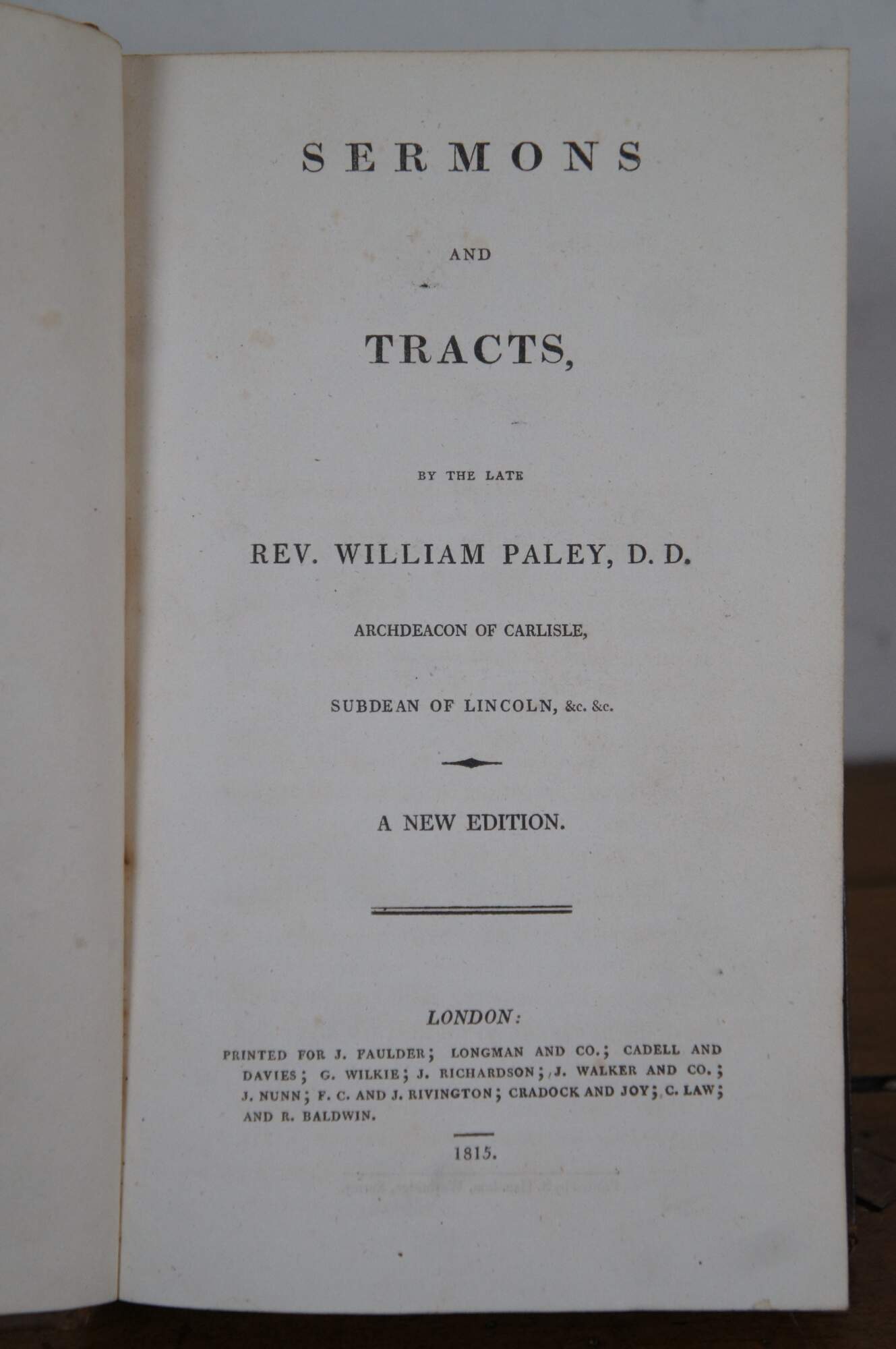 - 1815 – Sermons and Tracts – by The Late Rev. William Paley, D.D. Archdecon of Carlisle, Subdean of Lincoln, etc. - A New Edition – London, Printed for J. Faulder; etc – Printed by S. Hamilton, Weybridge, Surrey.