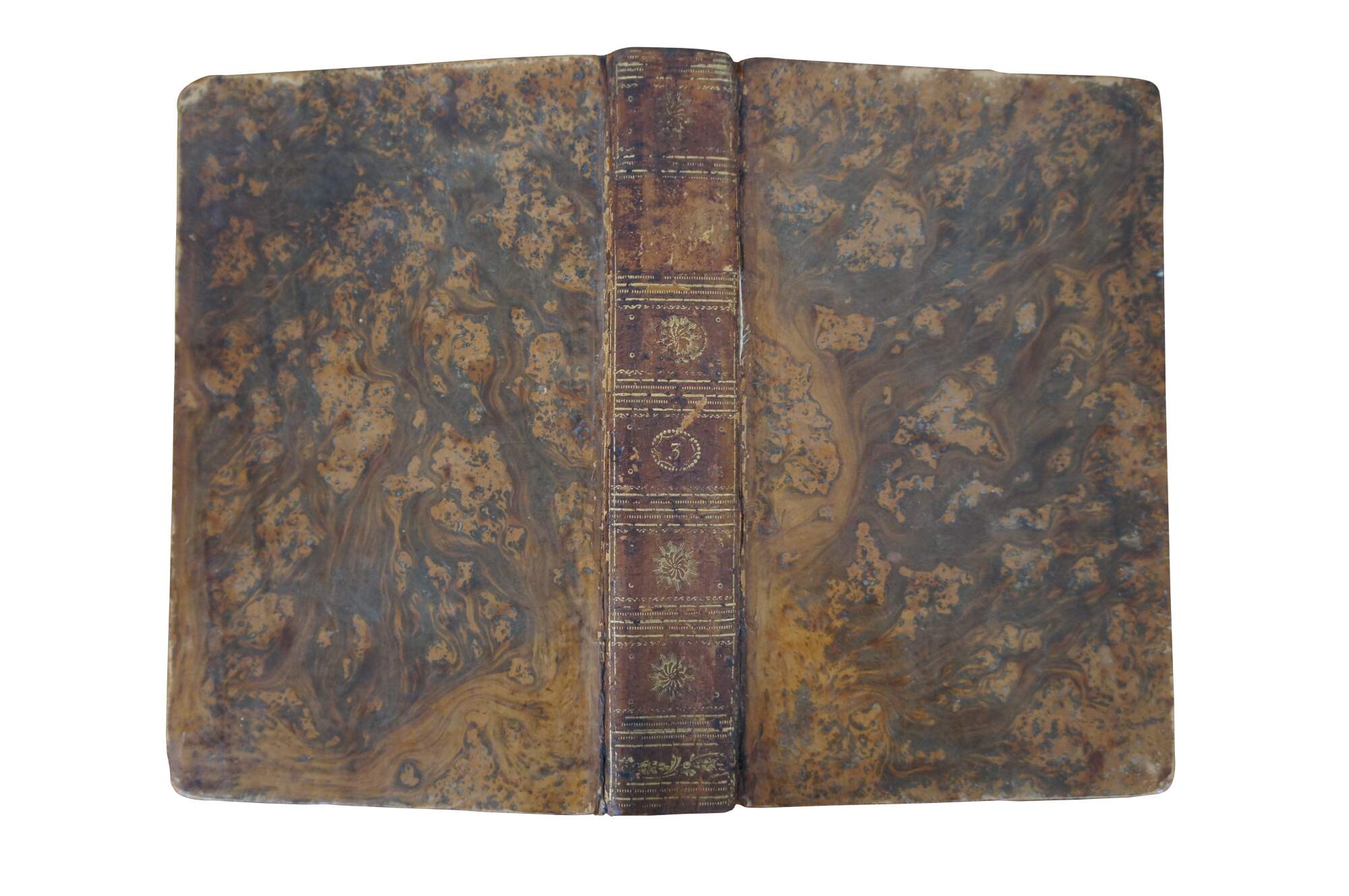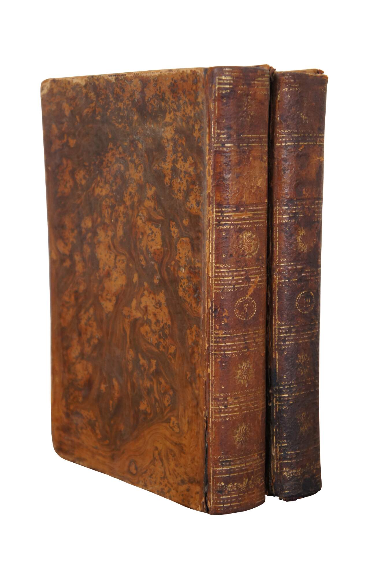Pair of late 18th century hard cover leather bound volumes with marbled cloth boards. Orignally a fifteen volume set.