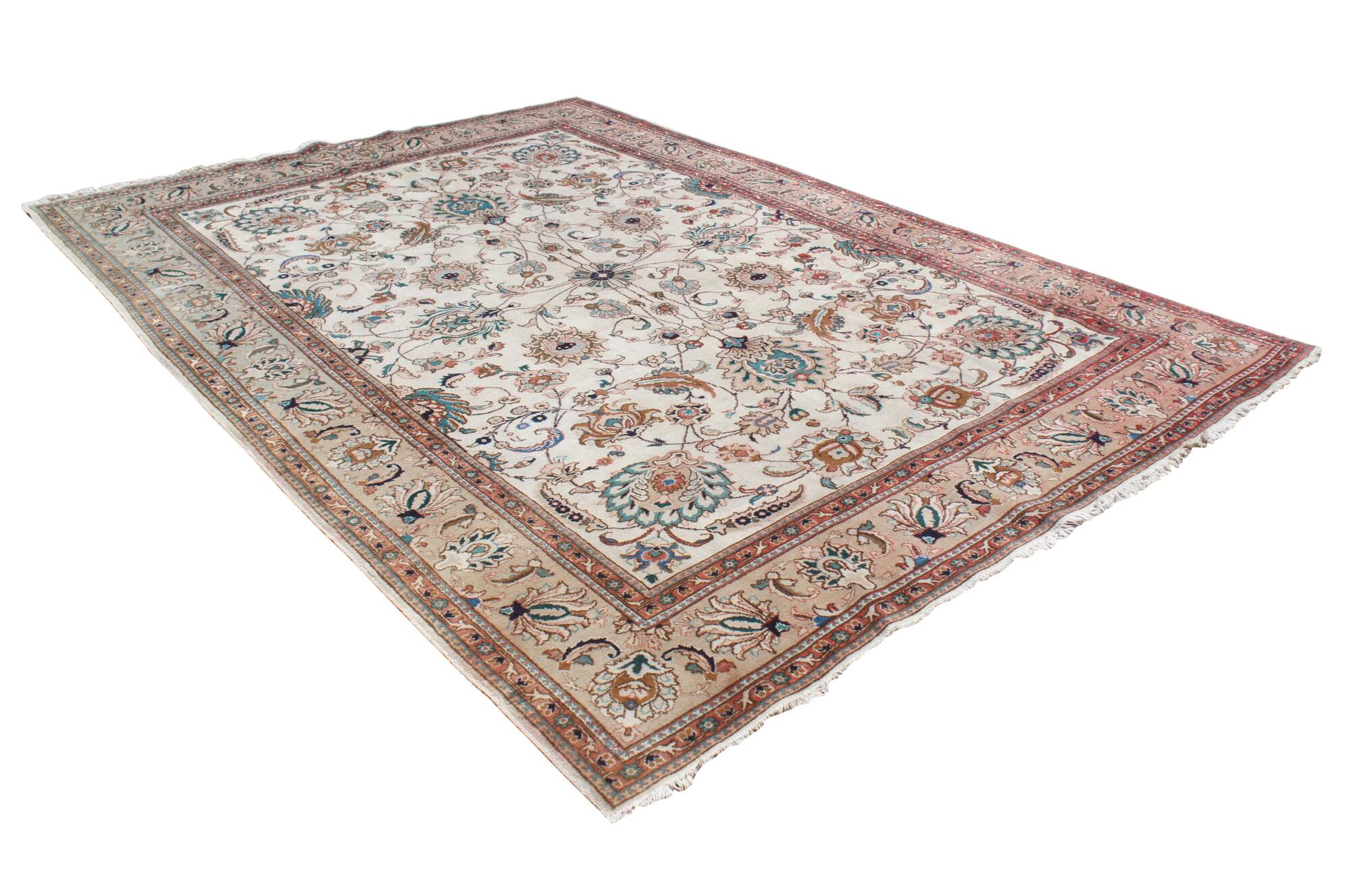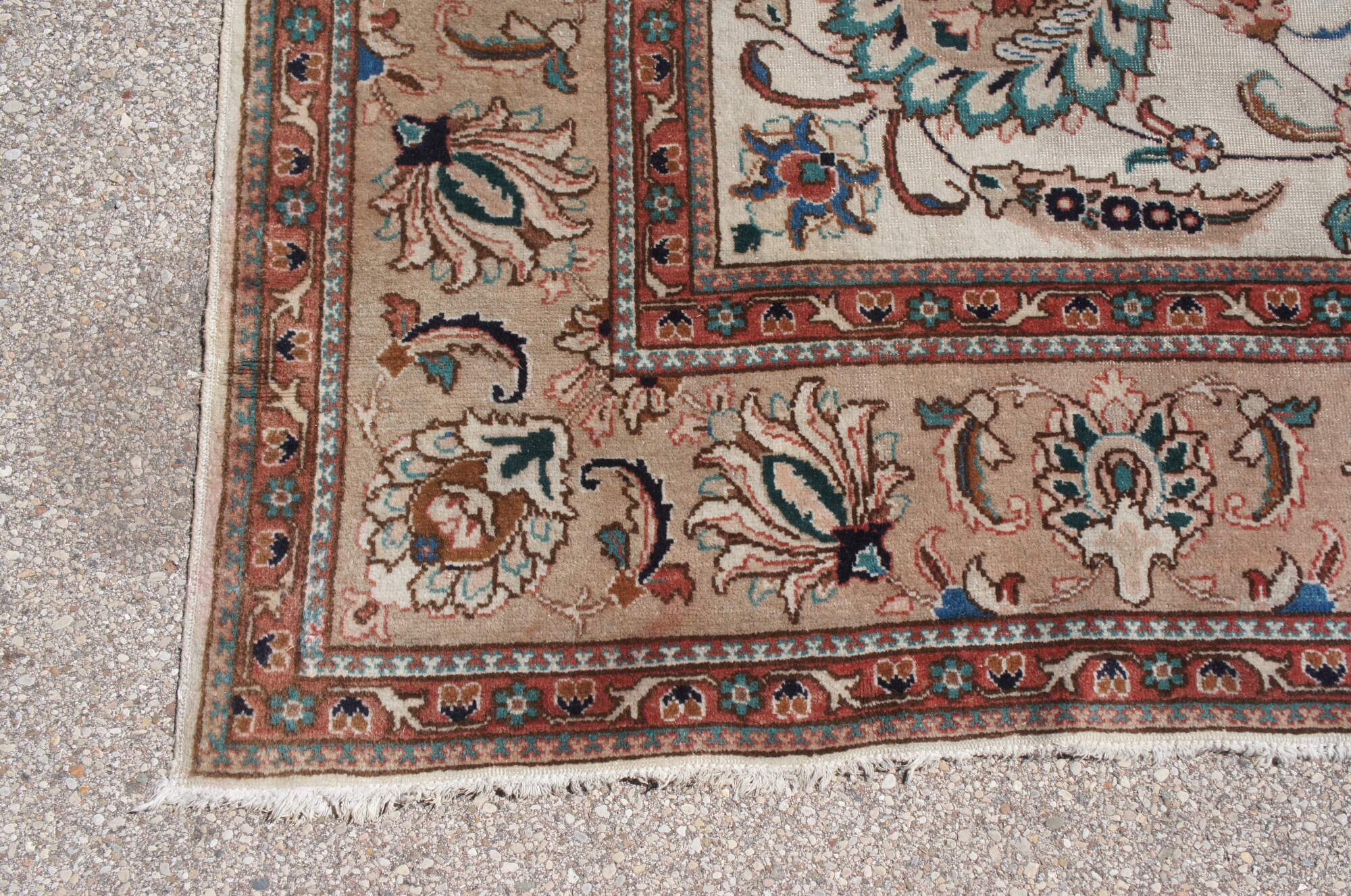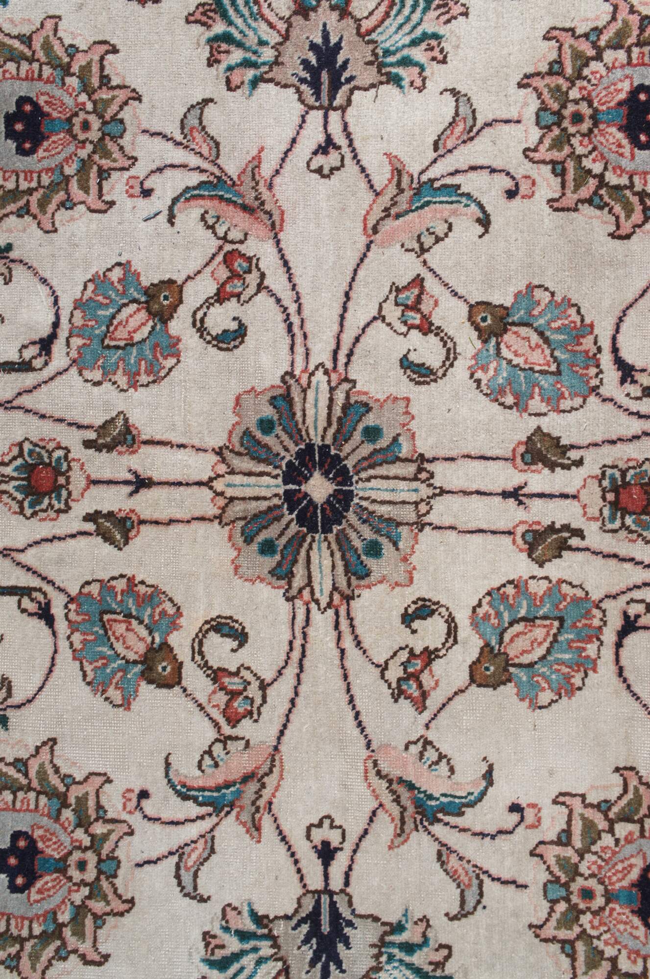 Mid-20th century floral all over area rug. Hand knoteed from 100% wool with beautiful designs. Signed along the border. 144 knots per square inch