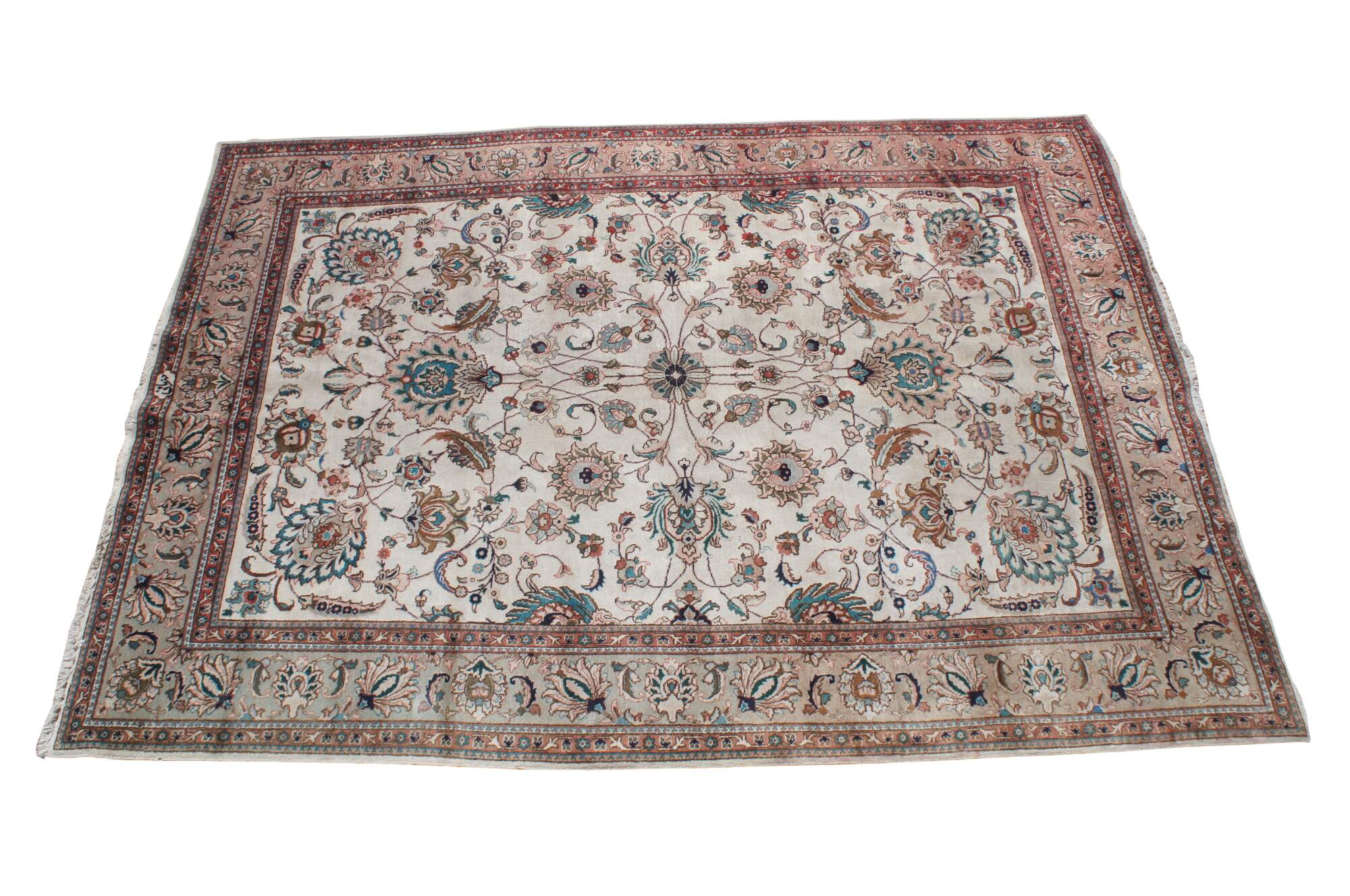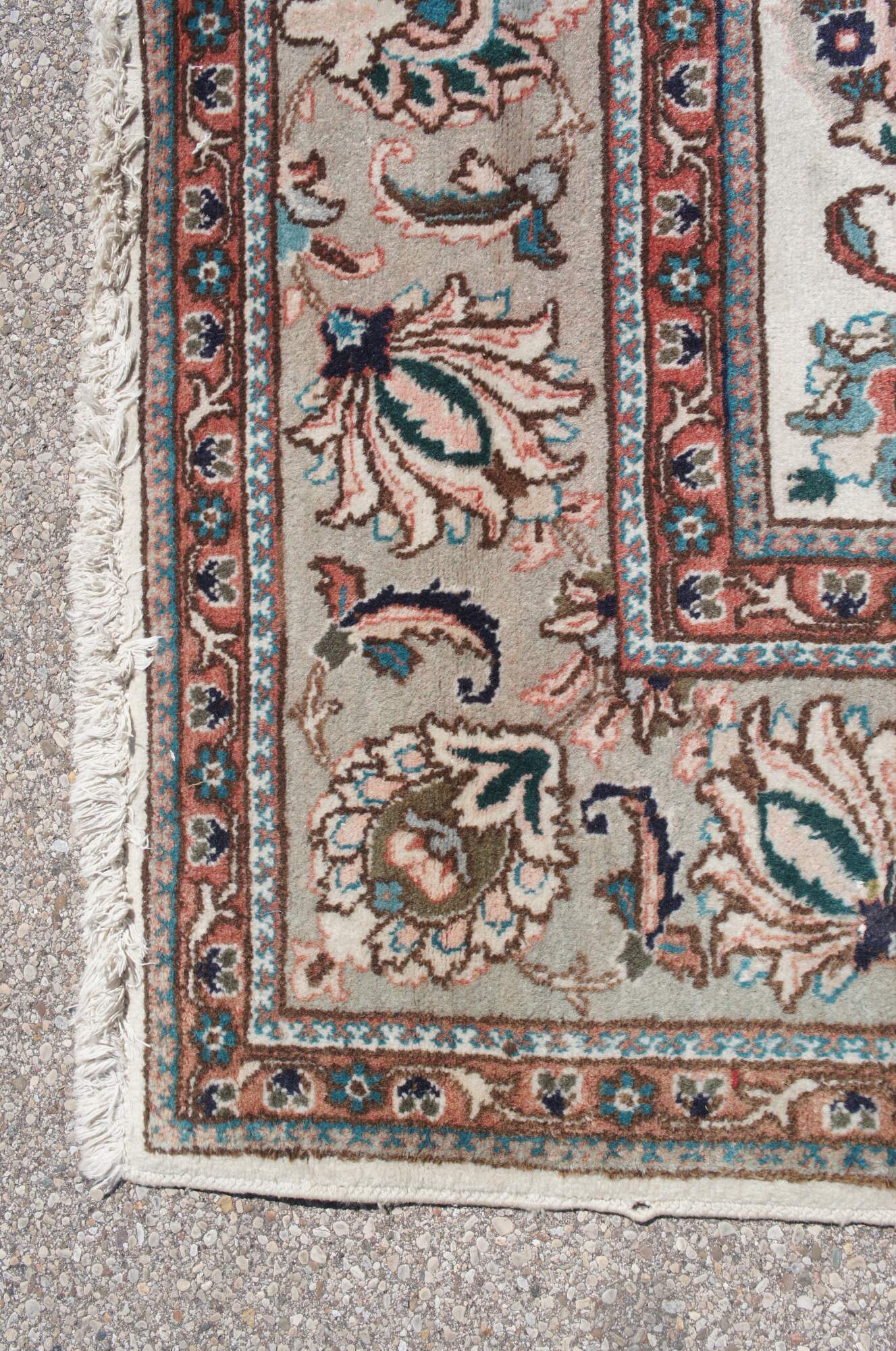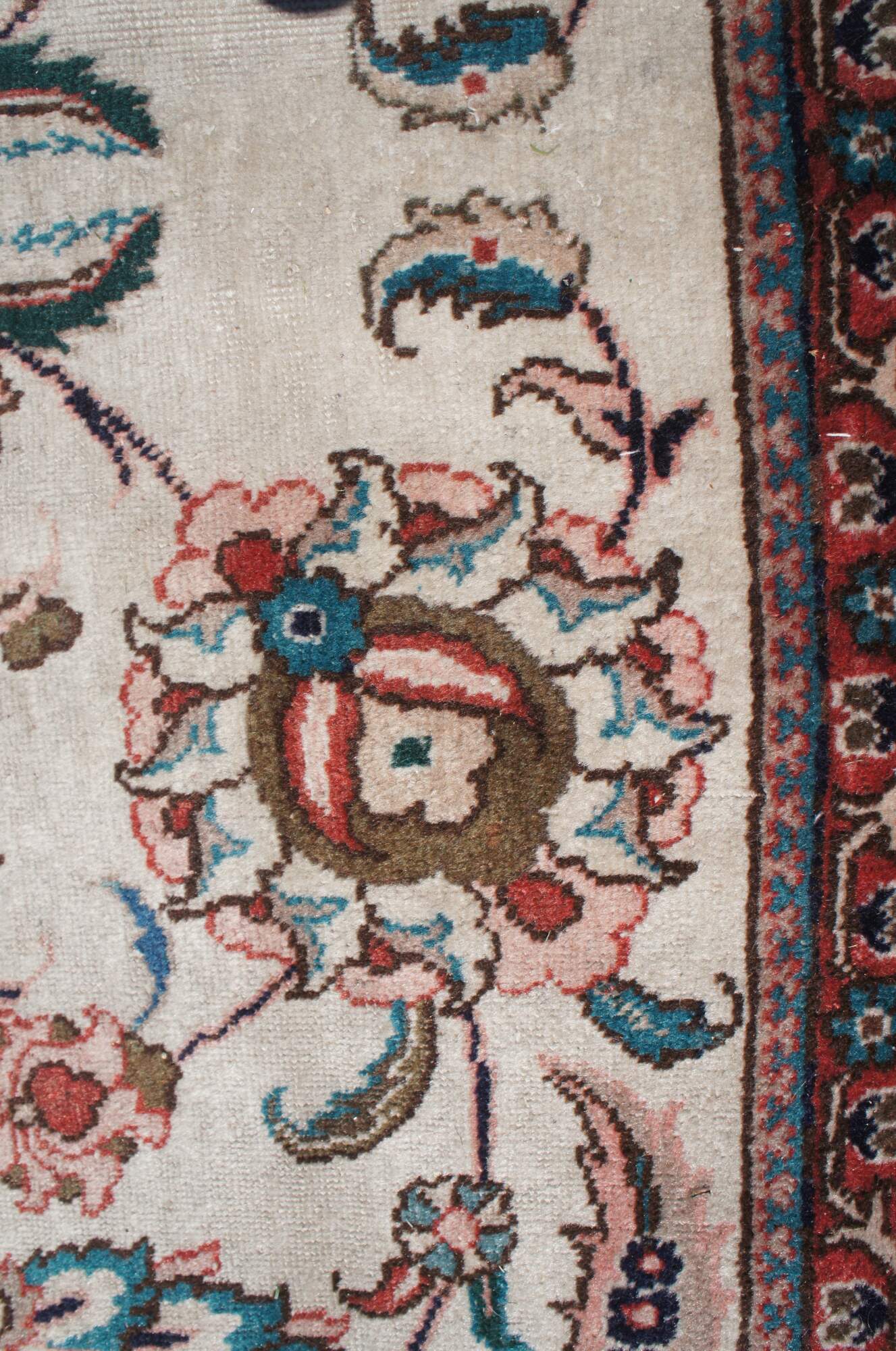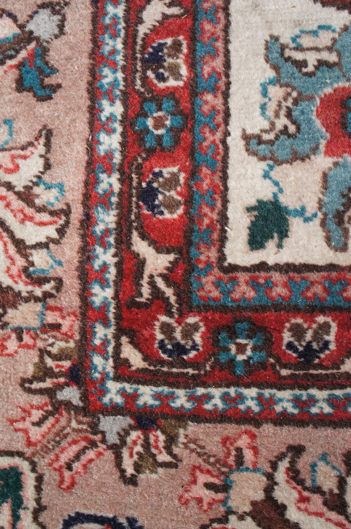 Mid-20th century floral all over area rug. Hand knoteed from 100% wool with beautiful designs. Signed along the border. 144 knots per square inch